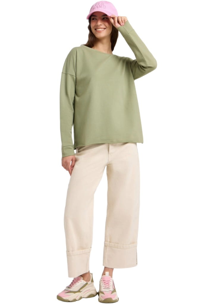Das "Riane" Damen Sweatshirt von Elbsand begeistert mit einem lockeren Schnitt und angenehmen Material. Der feminine U-Bootausschnitt unterstreicht die entspannte Silhouette, während überschnittene Schultern einen lässigen Charakter verleihen.