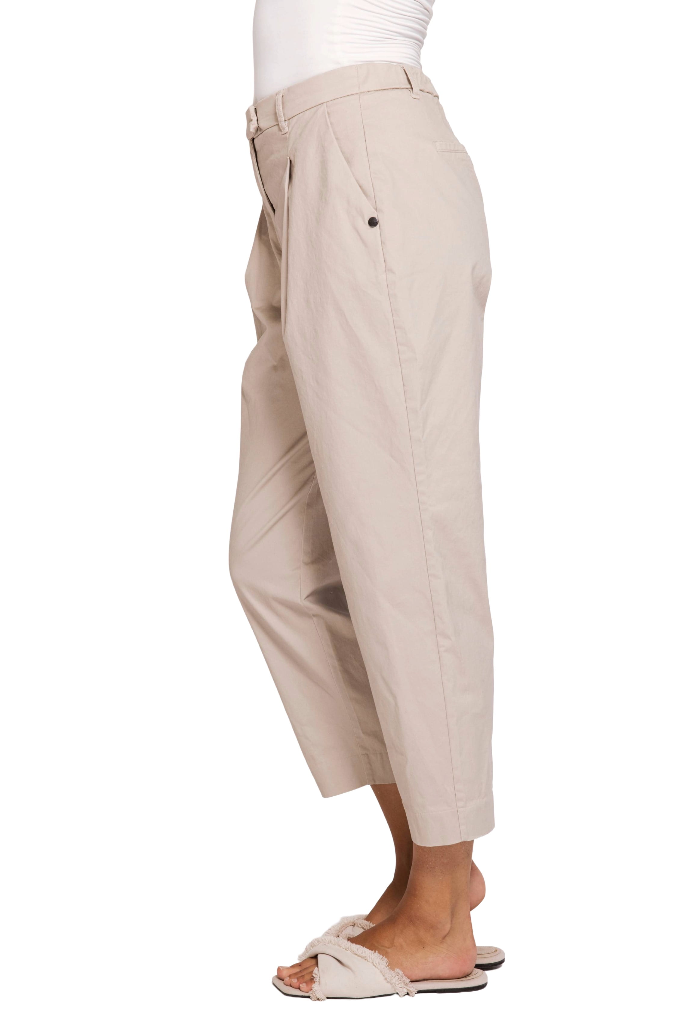 Der Mom-Fit sorgt für eine entspanntes Tragegefühl, während die 7/8 Länge dem Look eine zeitlose Leichtigkeit verleiht. Markante Bundfalten unterstreichen den stilvollen Look der Hose.