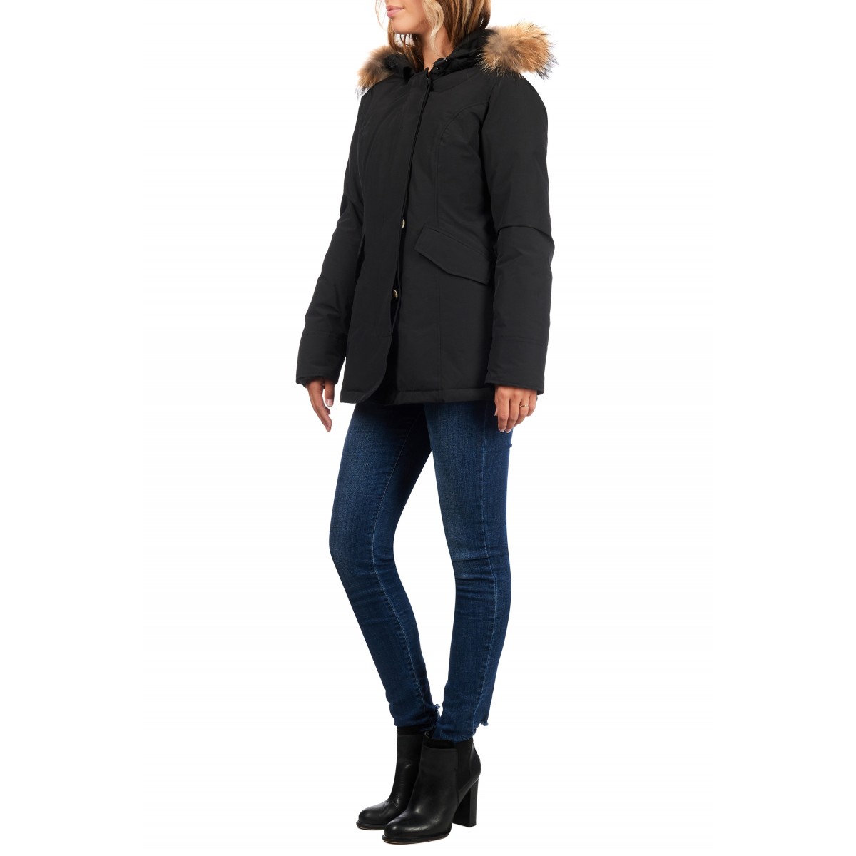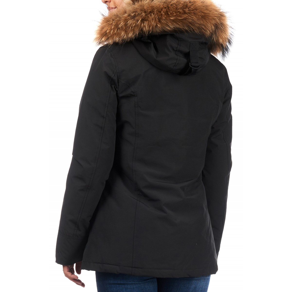 | Details & Futter: | wattiert gefüttert, Kunst Daunen, mit Kapuze, Echtfellkragen |