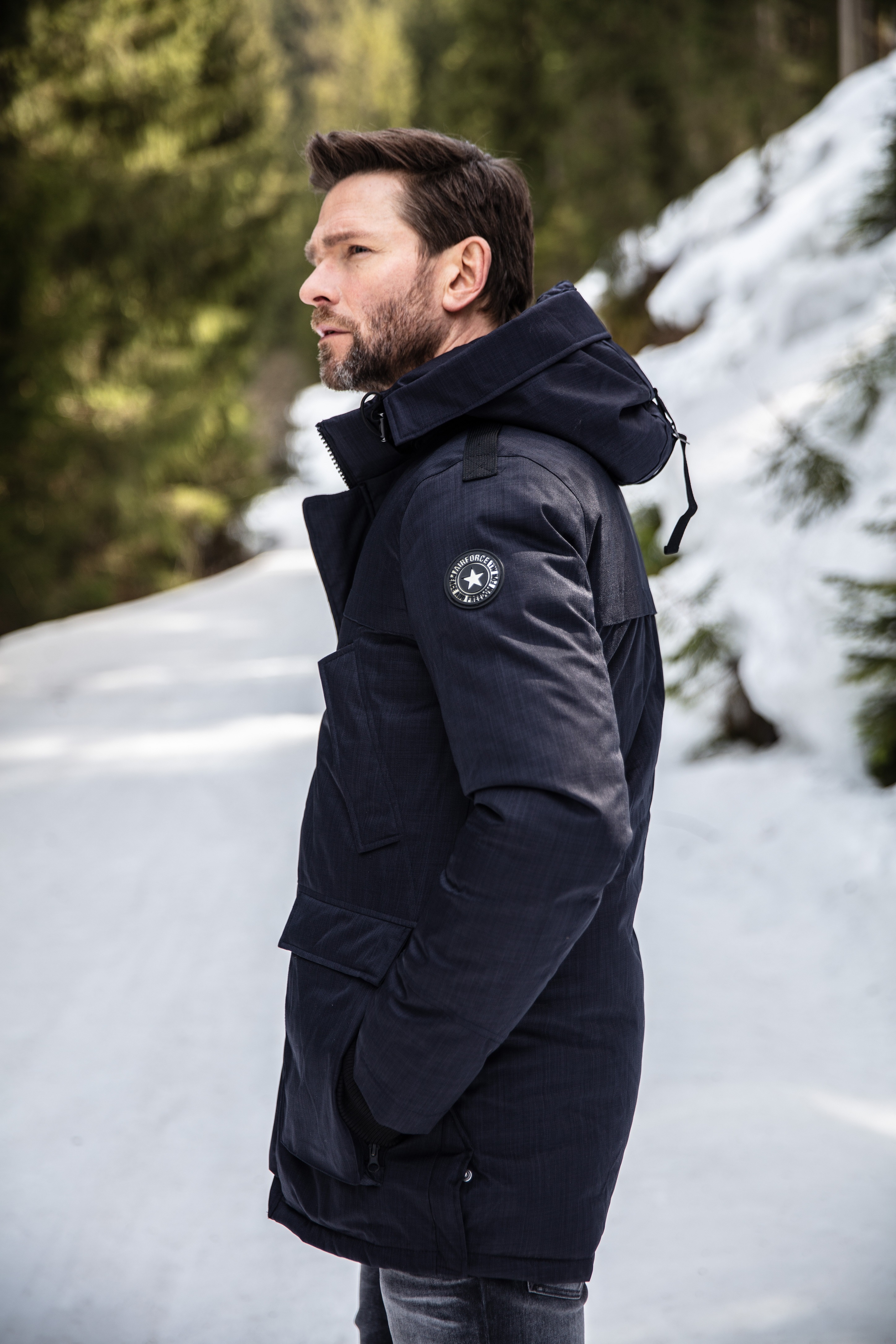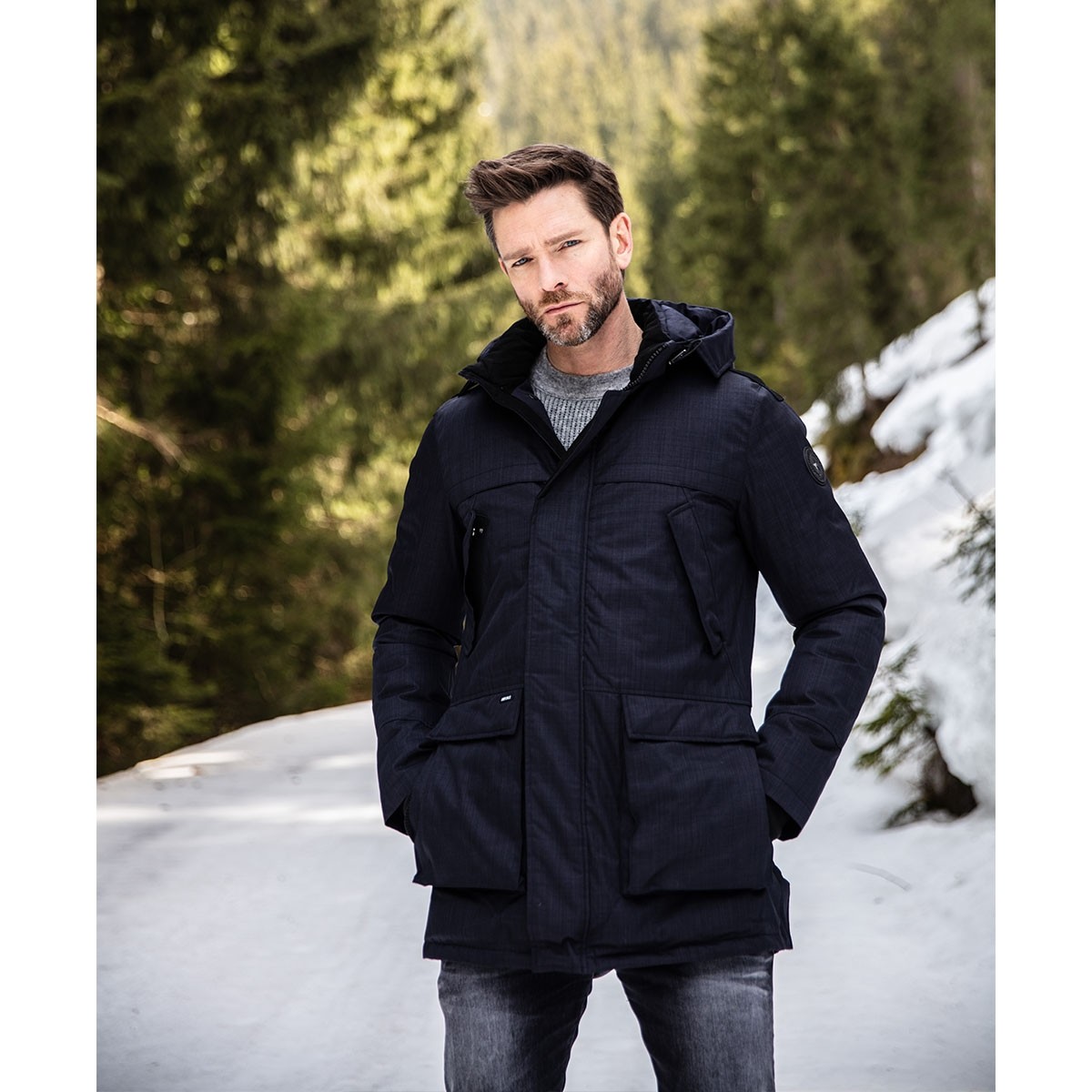 Der Slimfit Parka Herringbone mit natur farbenem Fell, hat eine Oberfläche mit Funktion im Fischgräten Muster und ist besonders gut für kältere Tage geeignet. Durch die wind- und wasserabweisende Funktion und den Watte Paddies mit Kunstdaunen ist es ein treuer Winterparka. Die Kaputze können über einen Reißverschluß abgenommen werden. Zwei Brusttaschen und zwei Vordertaschen sorgen für Stauraum.
