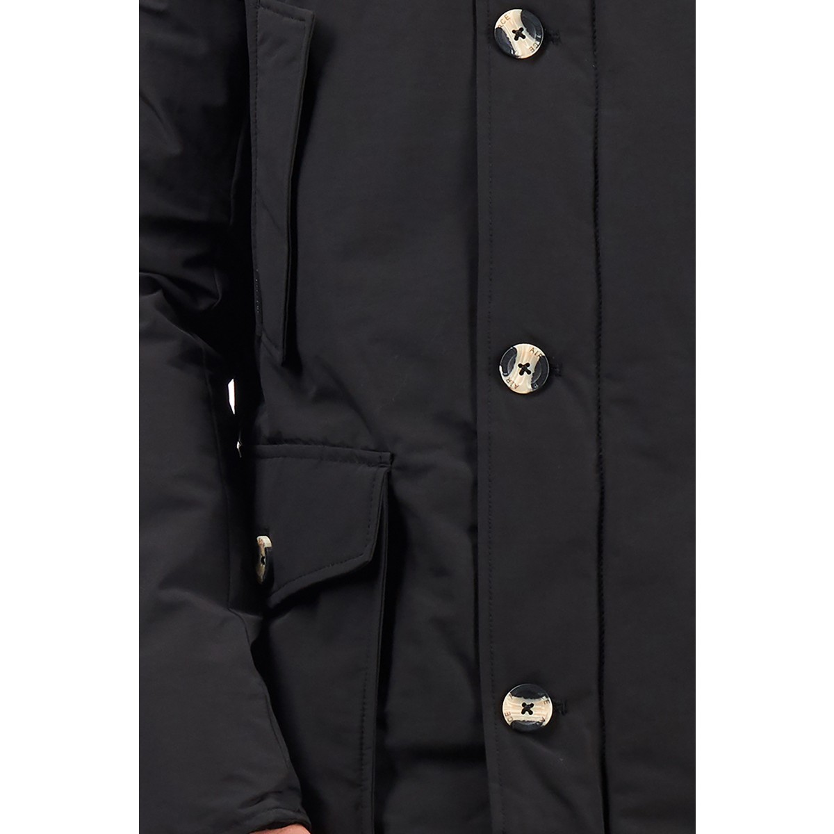 | Details & Futter: | wattiert gefüttert, Kunst Daunen, mit Kapuze, Echtfellkragen |