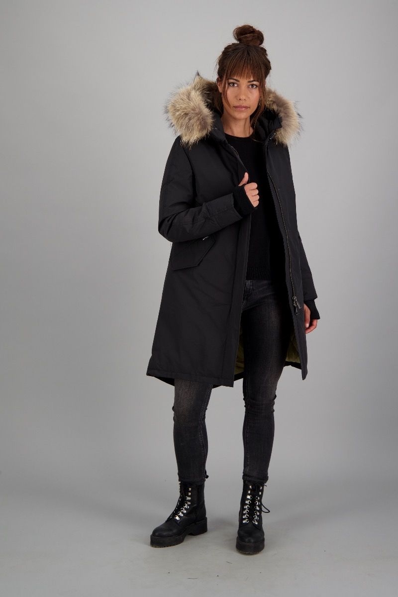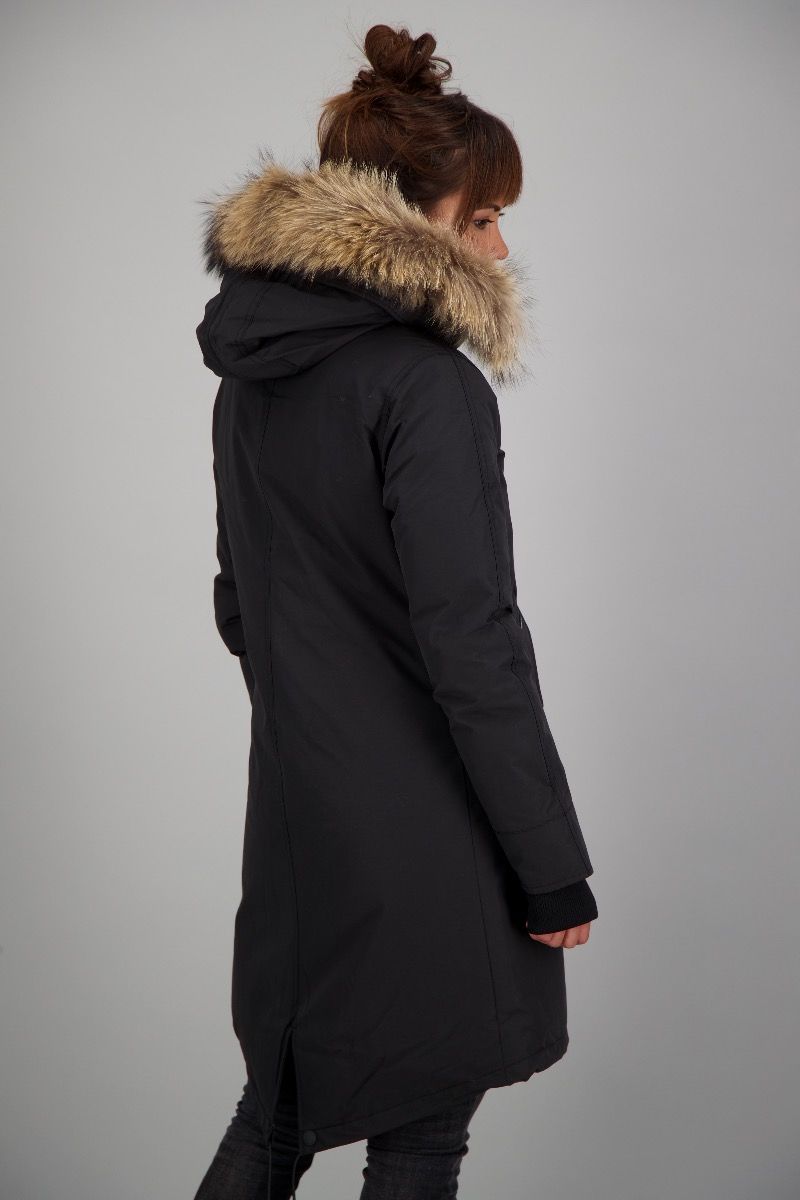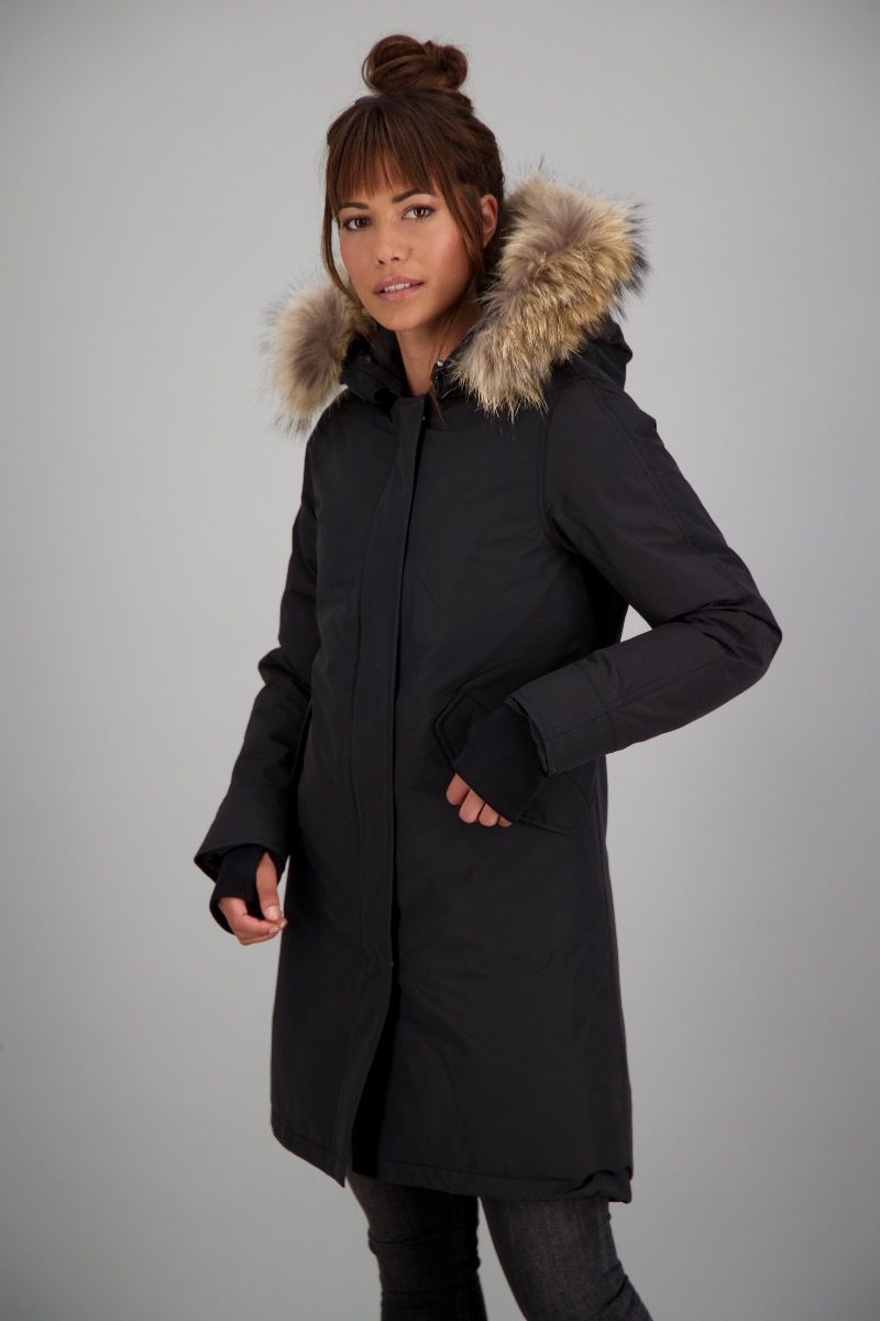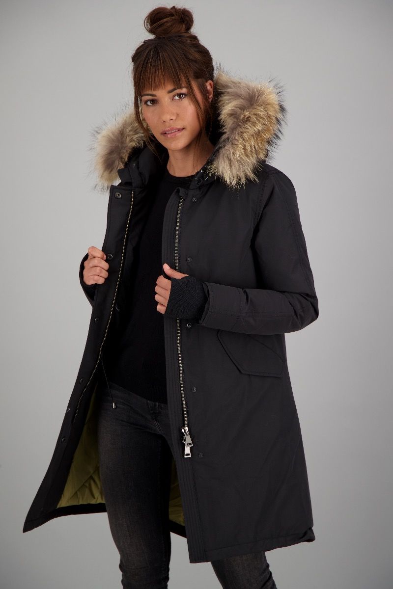 | Details & Futter: | wattiert gefüttert, Kunst Daunen, mit Kapuze, Echtfellkragen |