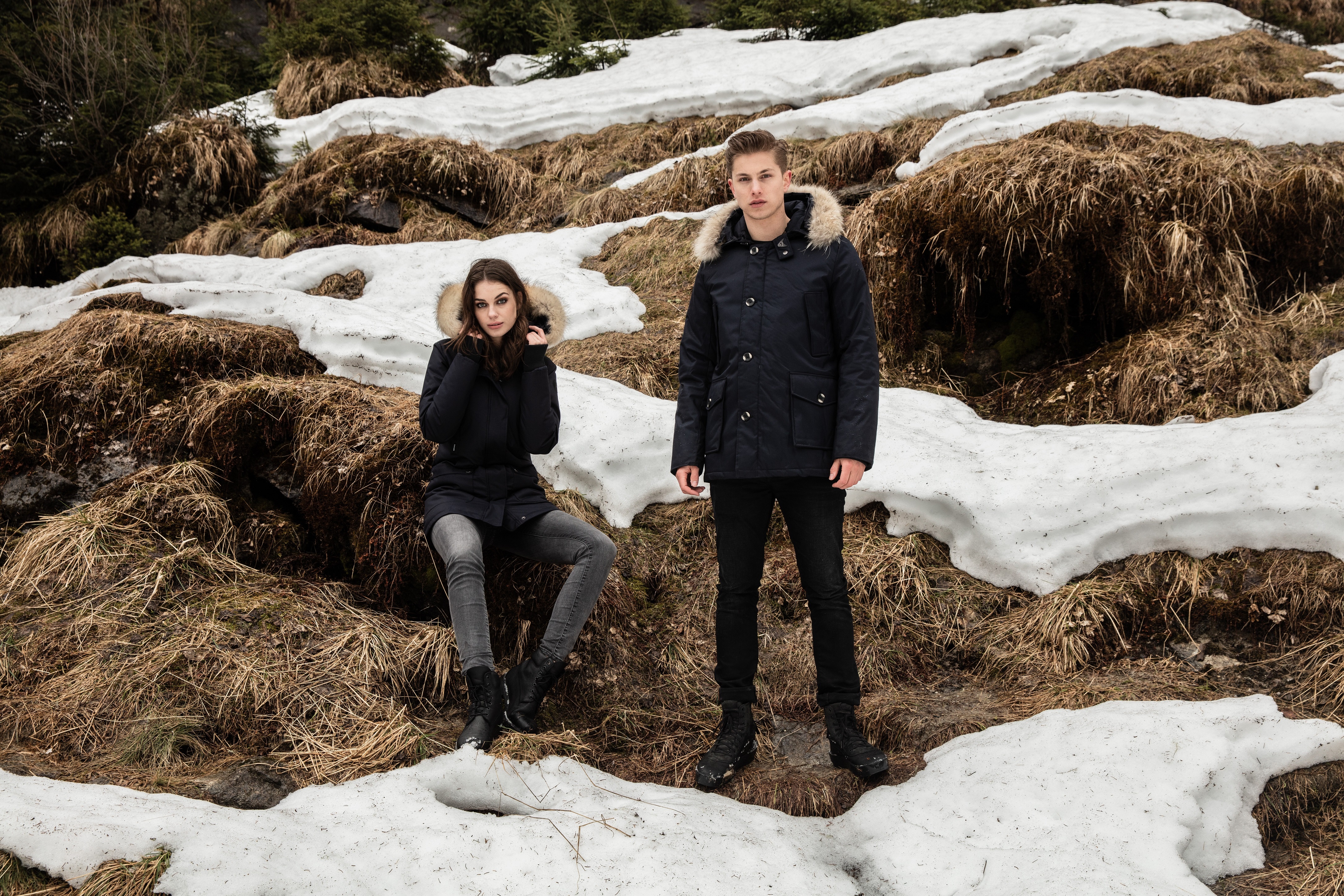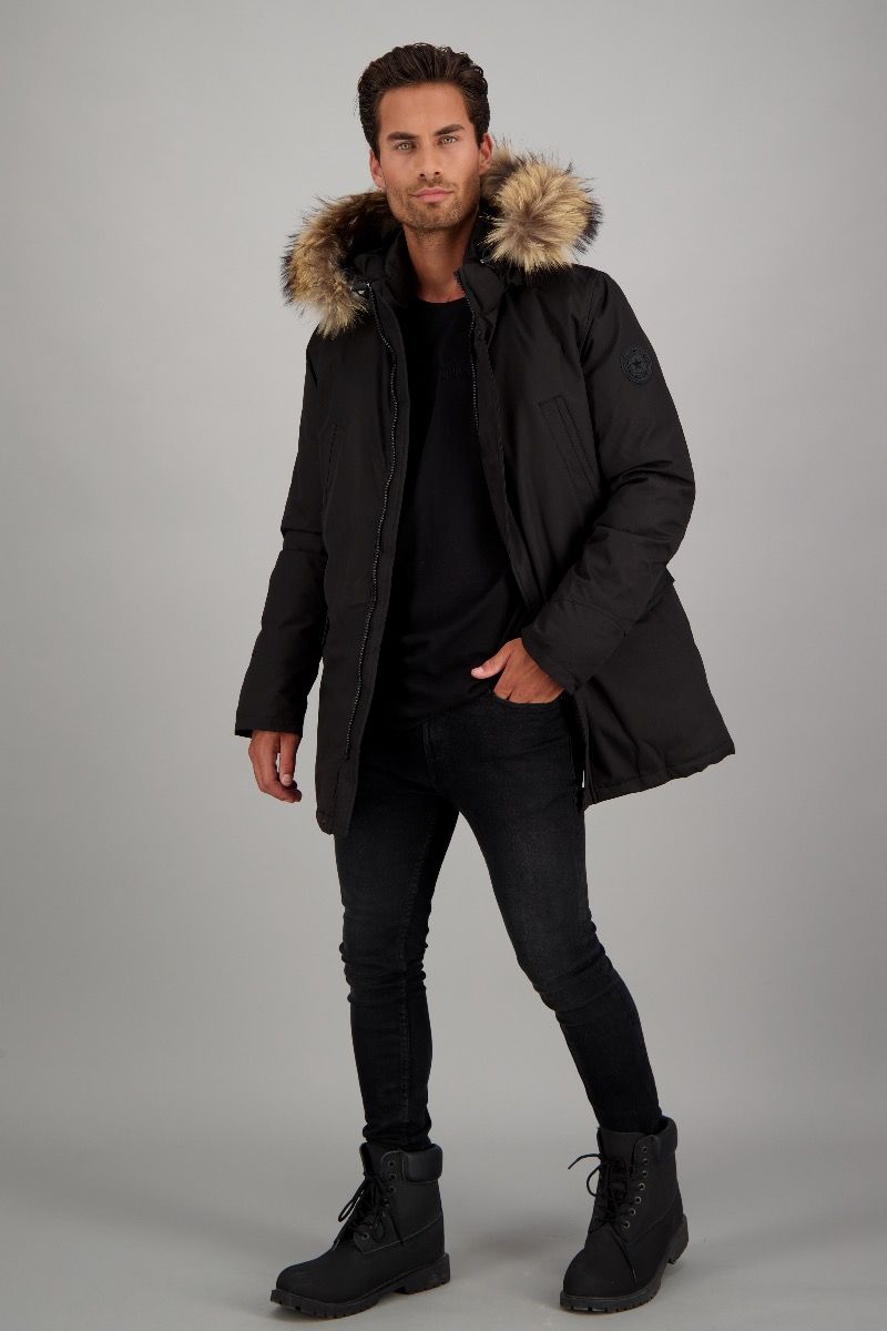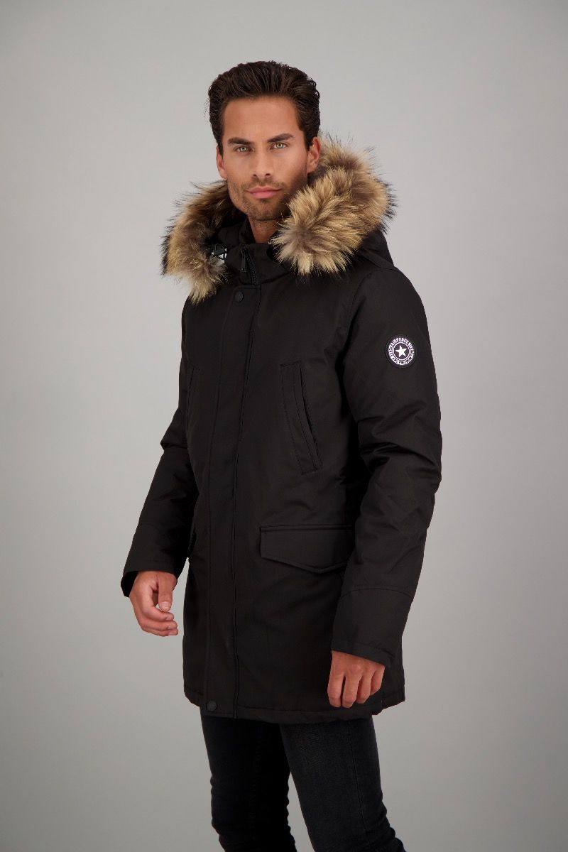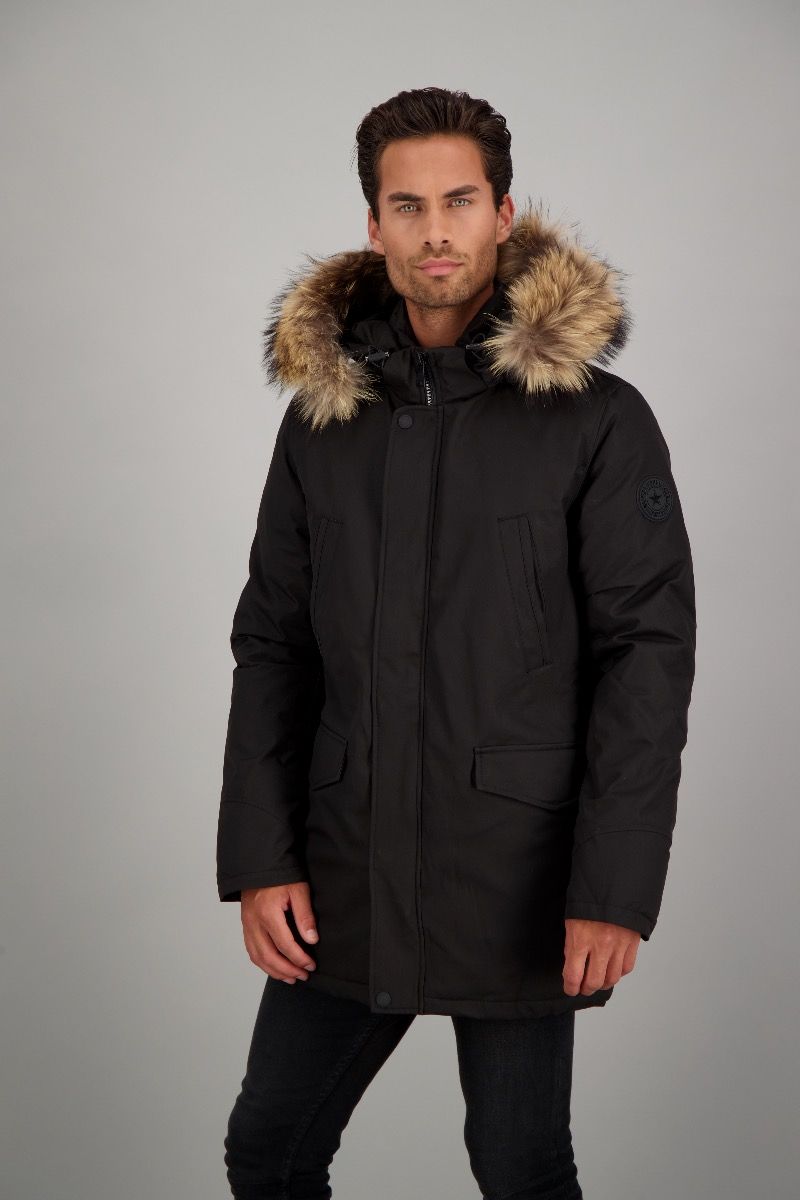 Der Slimfit Parka Herringbone mit natur farbenem Fell, hat eine Oberfläche mit Funktion im Fischgräten Muster und ist besonders gut für kältere Tage geeignet. Durch die wind- und wasserabweisende Funktion und den Watte Paddies mit Kunstdaunen ist es ein treuer Winterparka. Der Echtfell Kragen und die Kaputze können über einen Reißverschluß abgenommen werden. Zwei Brusttaschen und zwei Vordertaschen sorgen für Stauraum.