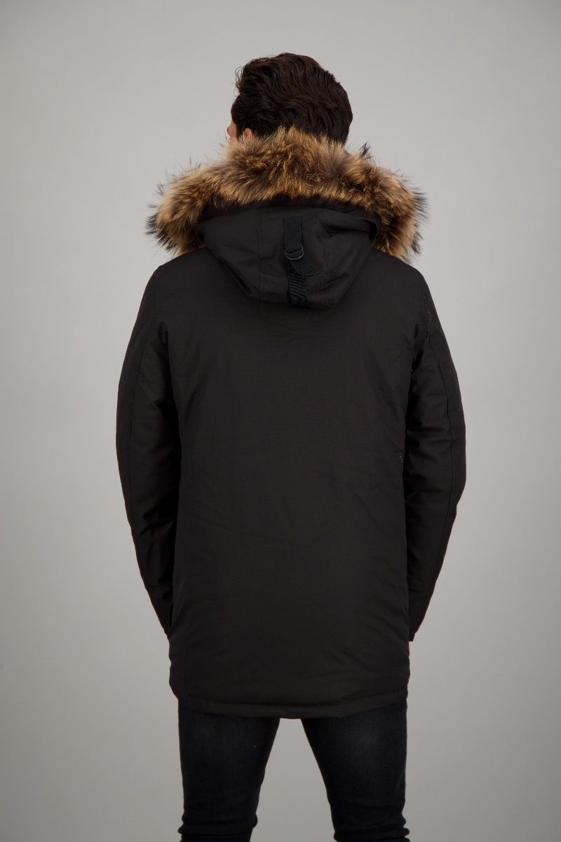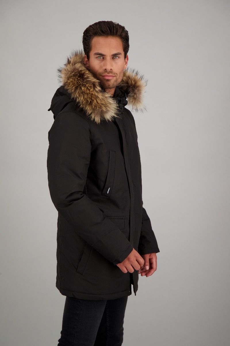 | Details & Futter: | wattiert gefüttert, Kunst Daunen, mit Kapuze, Echtfellkragen |