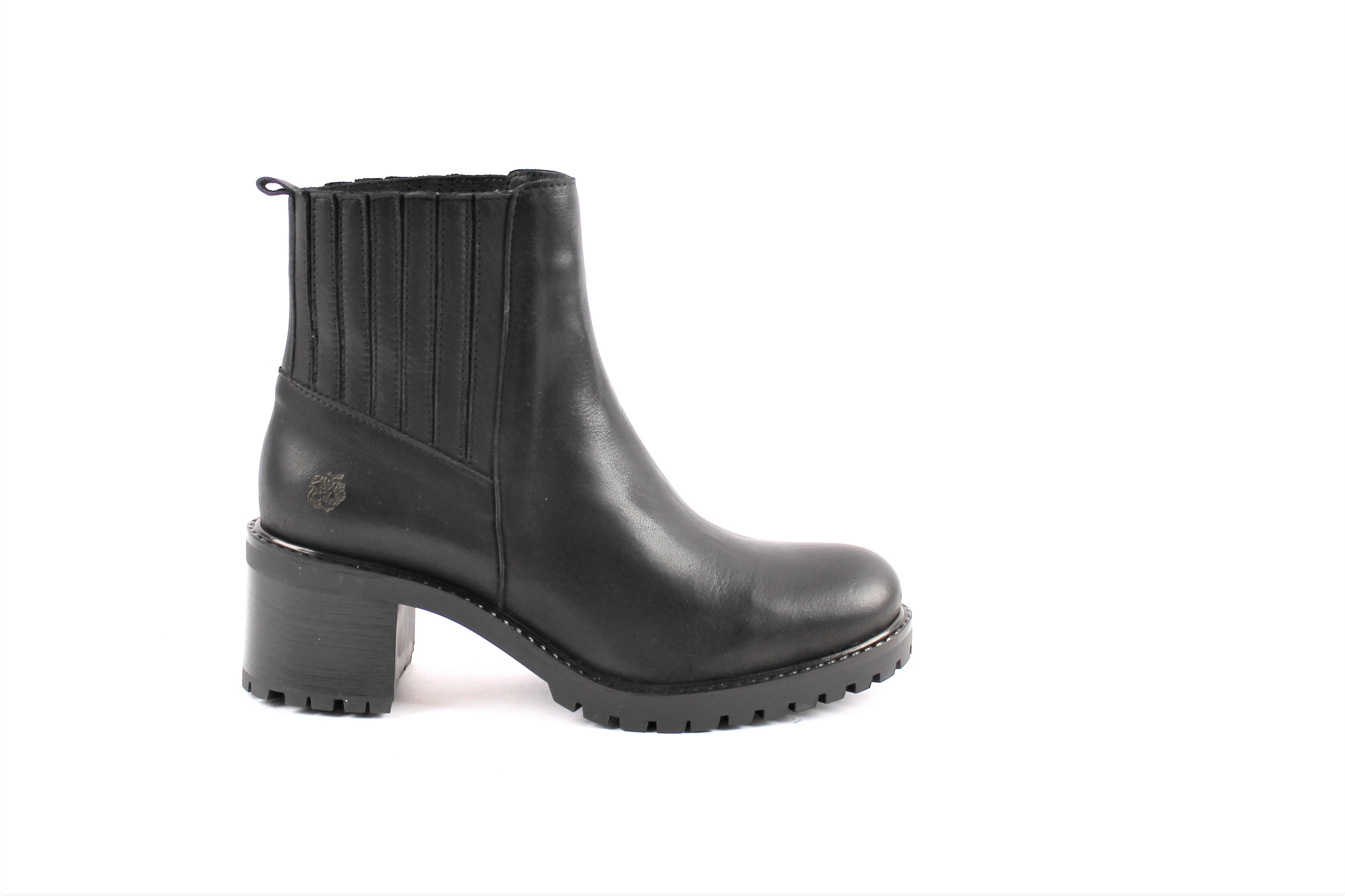 Alicia von Apple of Eden ist eine Stiefelette zum einschlupfen. Aus hochwertigem Leder wurde sie in Portugal gefertigt. Die höhe des Absatzes beträgt ca. 4 cm.