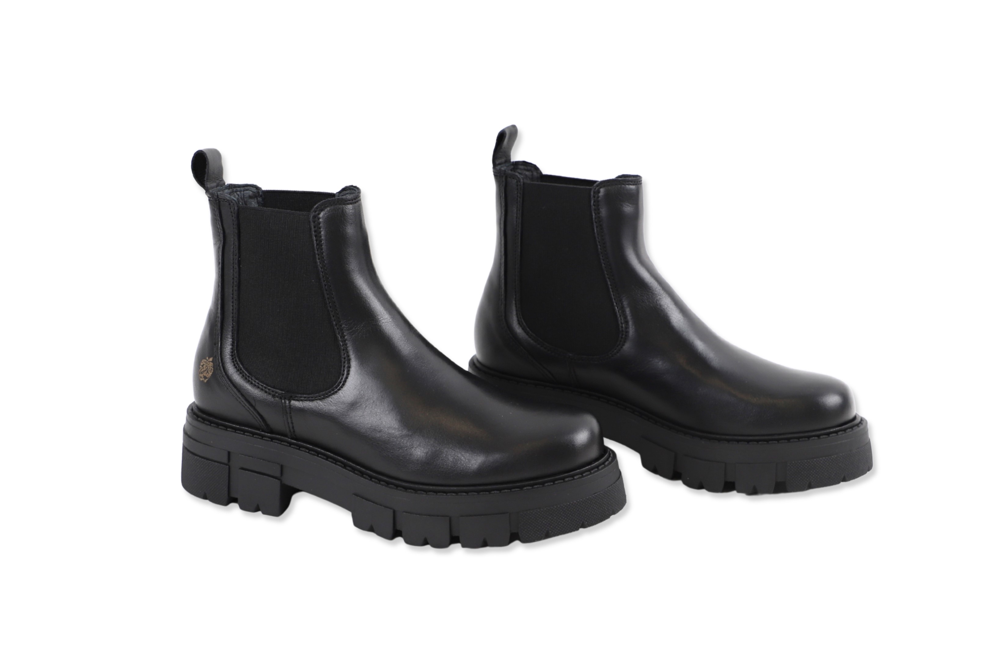 Der "California" Damen Chelsea Boot von Apple of Eden vereint zeitloses Design mit moderner Chunky-Optik. Gefertigt aus hochwertigem Leder mit dezenter Logo Applikation an der Ferse, überzeugt der Schuh mit markanter Plateausohle und Blockabsatz.