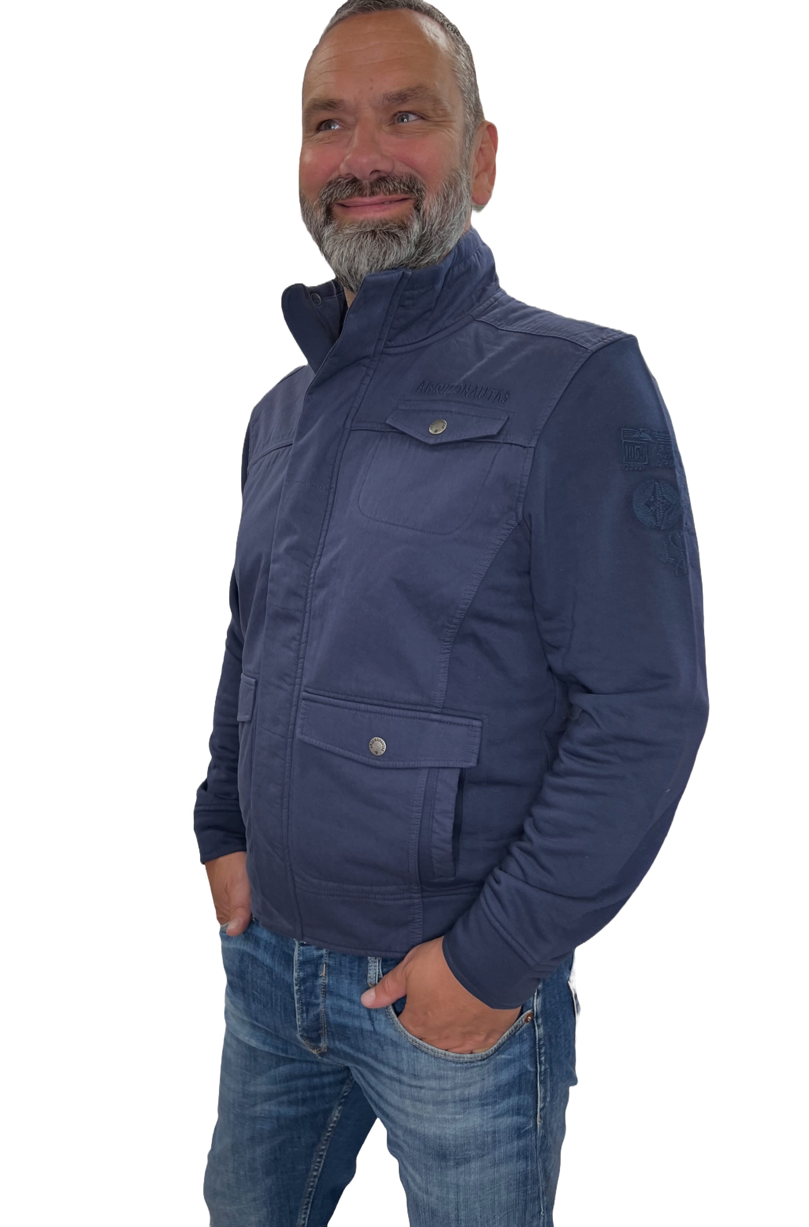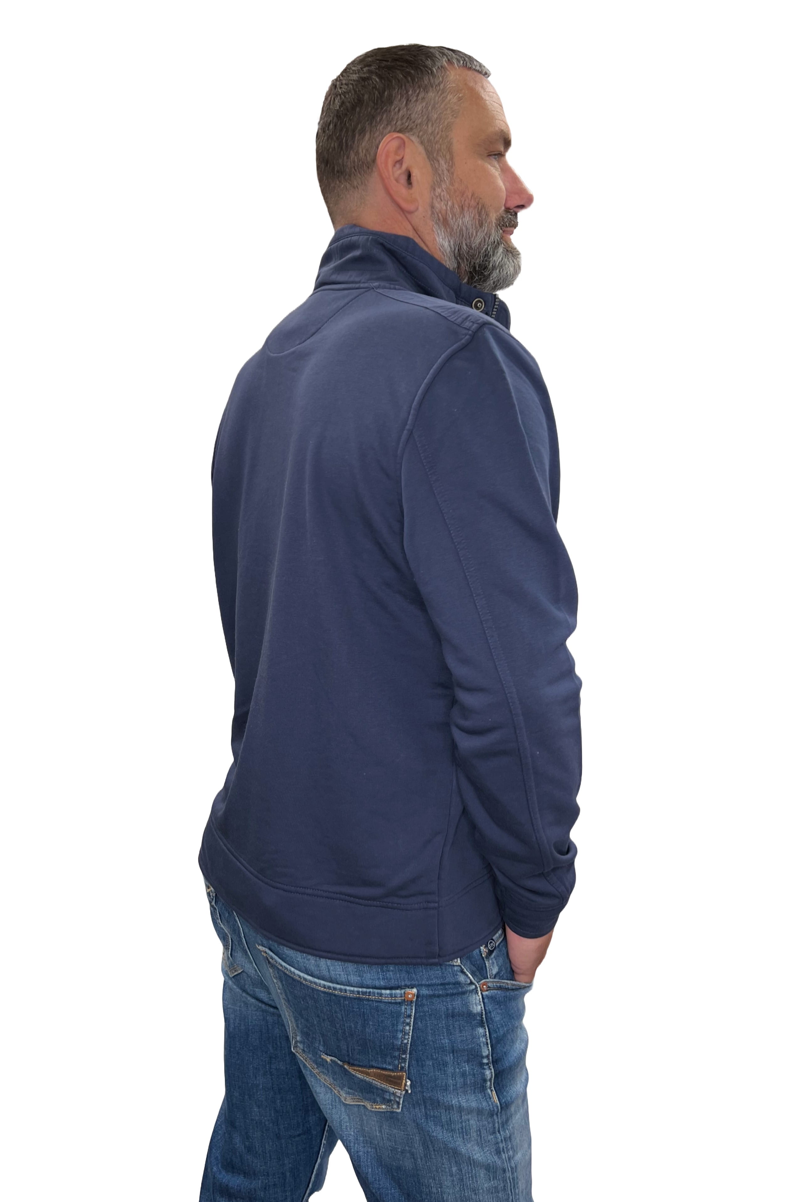 Legere Herren Sweatjacke von Arqueonautas mit hoch geschnittenem Kragen.
