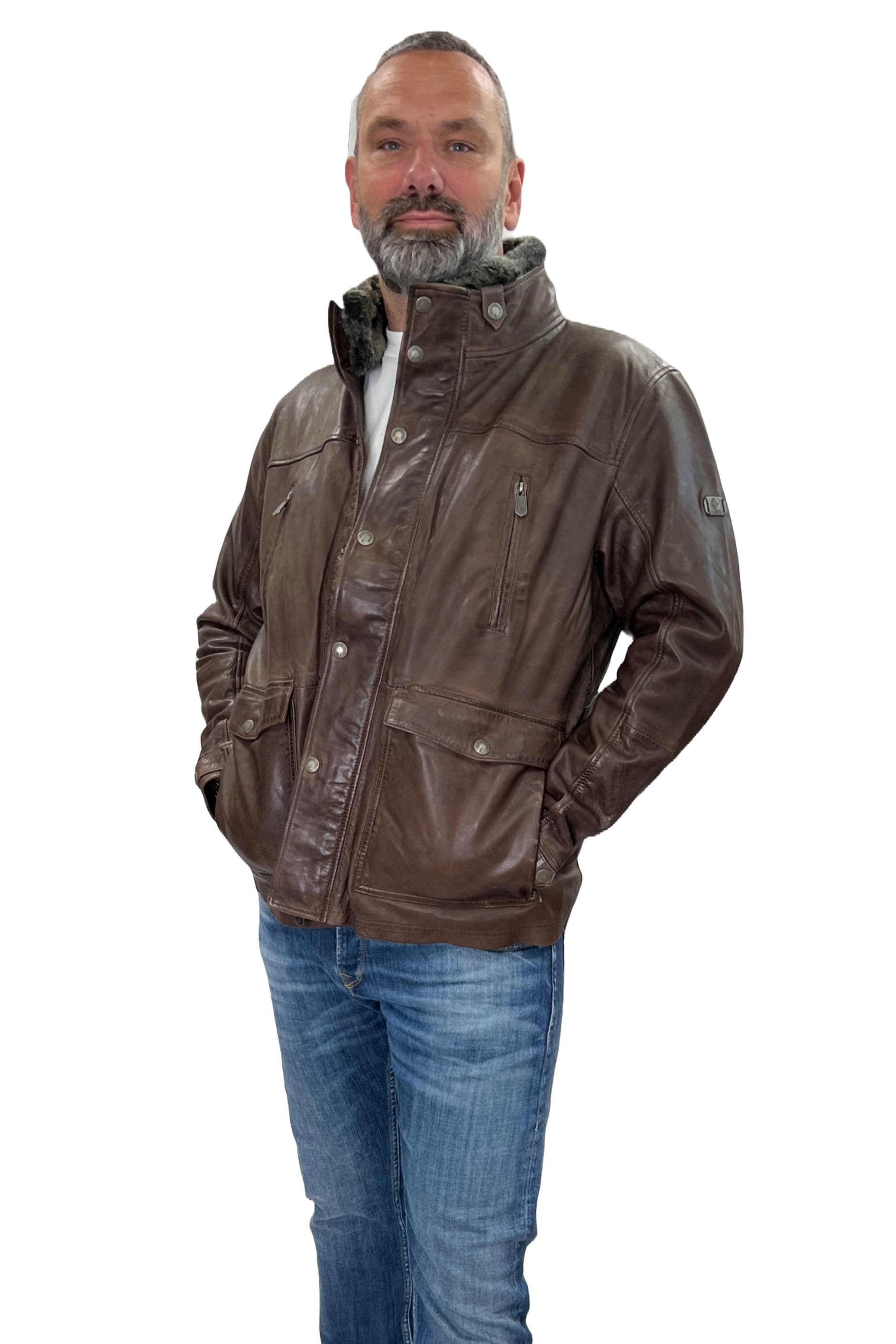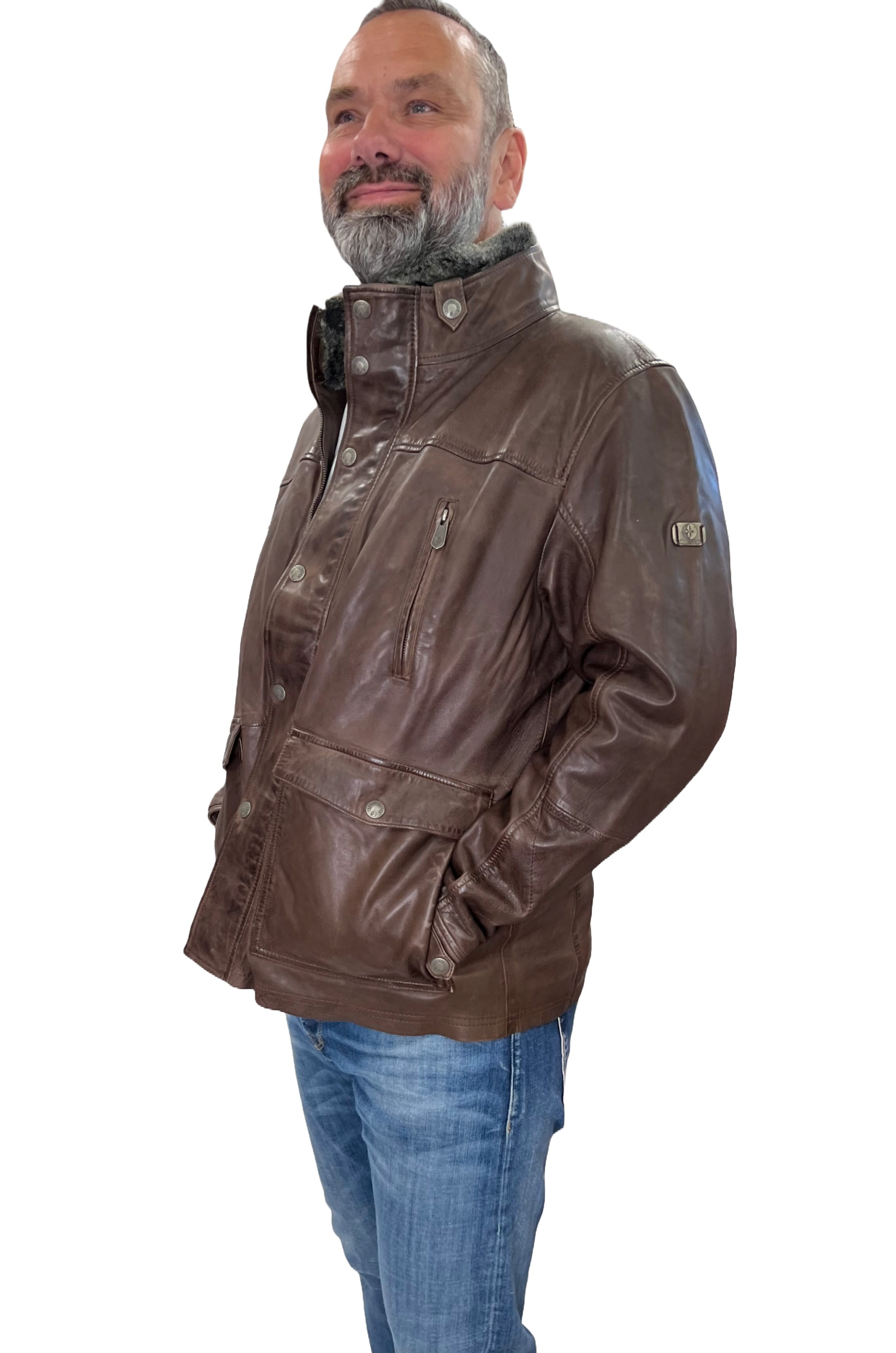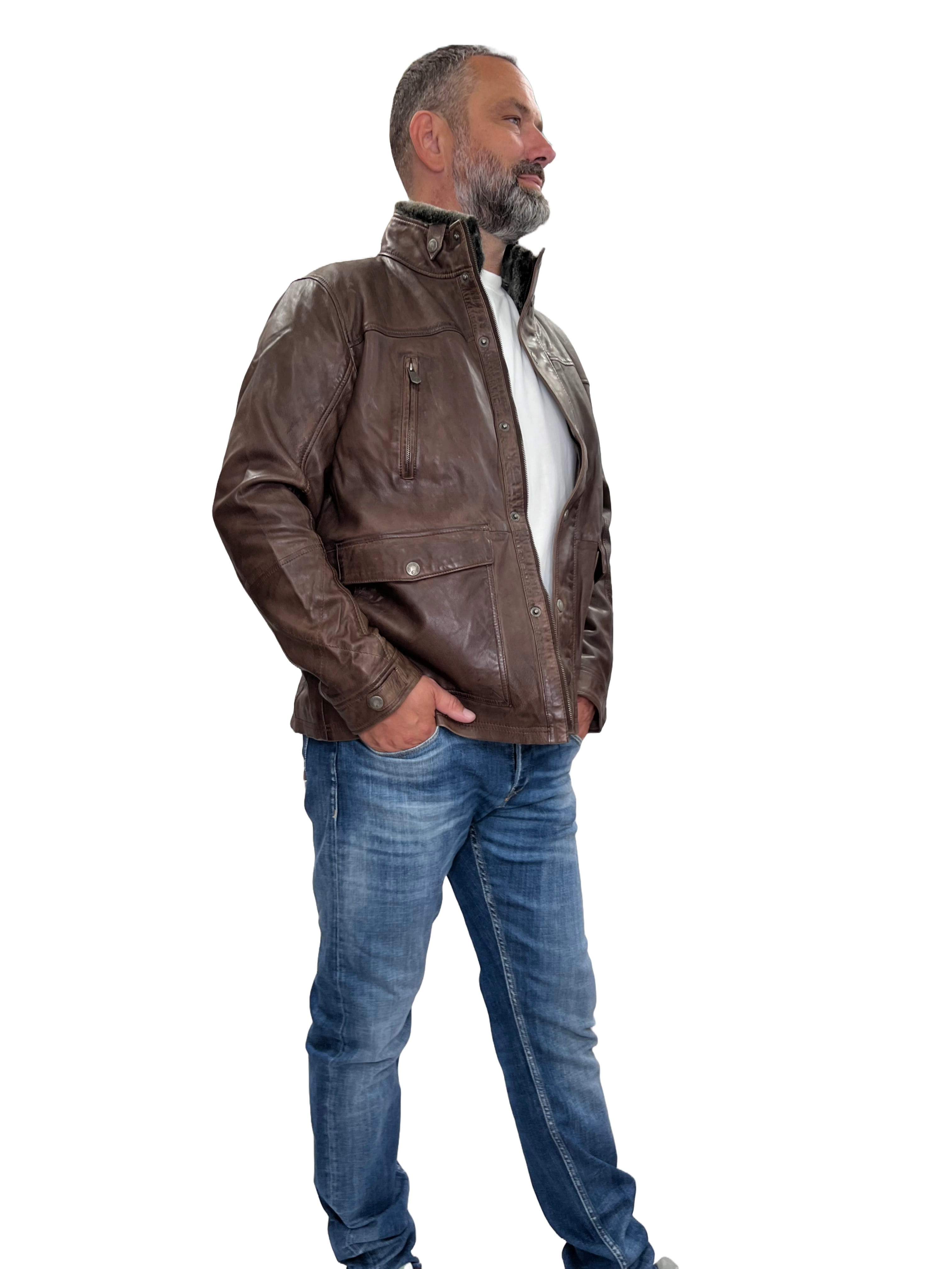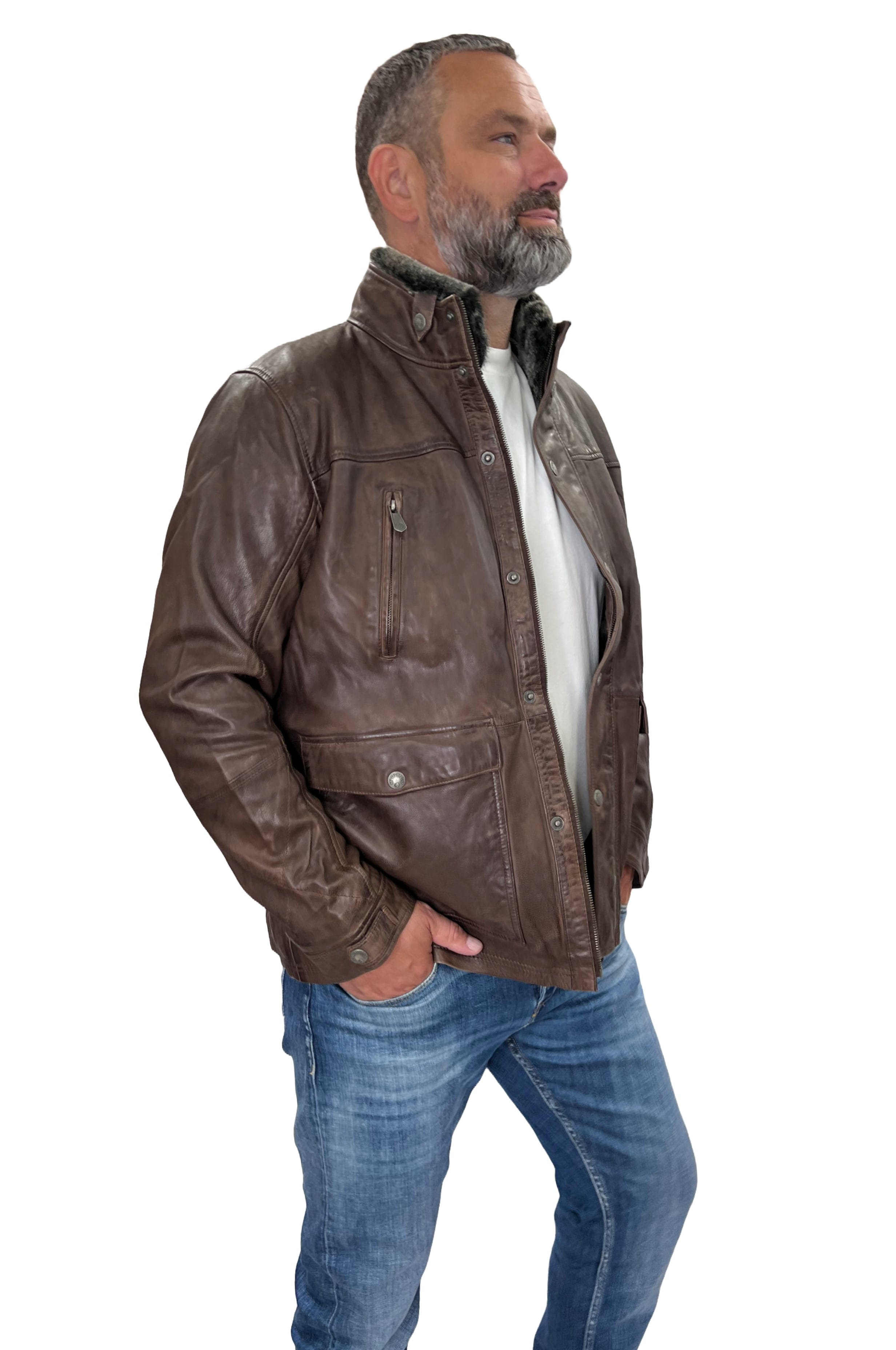 Coole Herren Lederjacke im Used-Look mit großen, aufgesetzten Taschen.