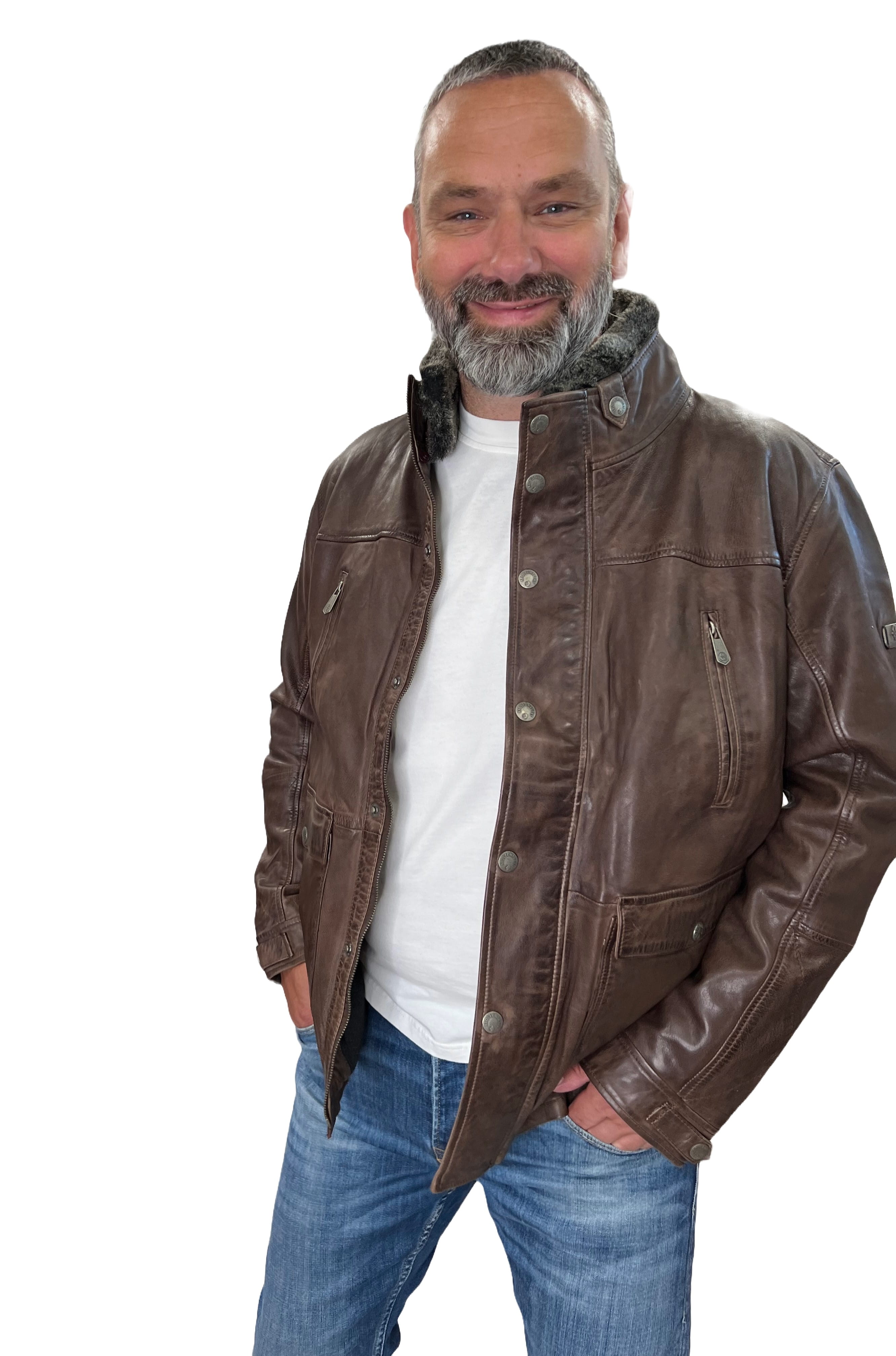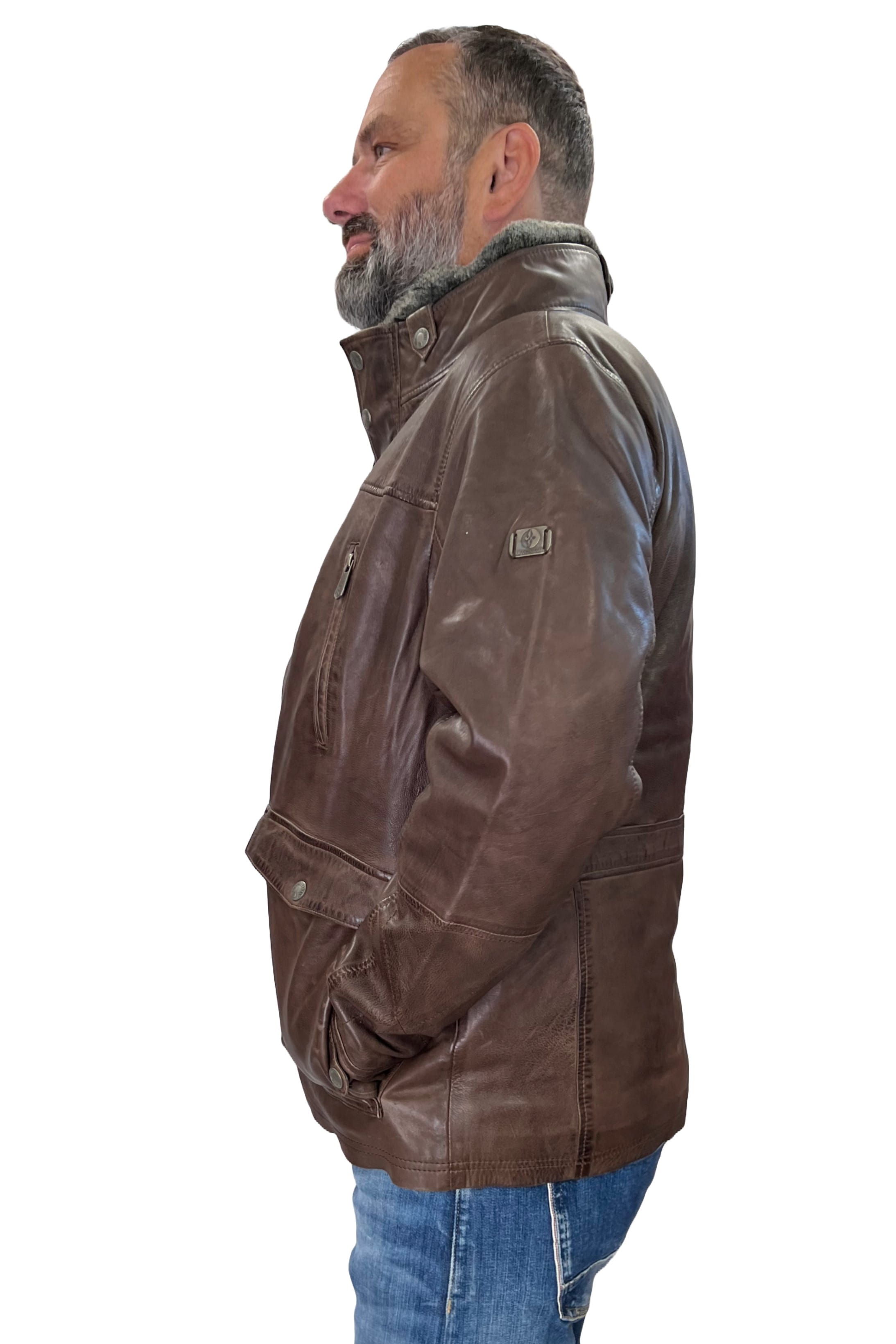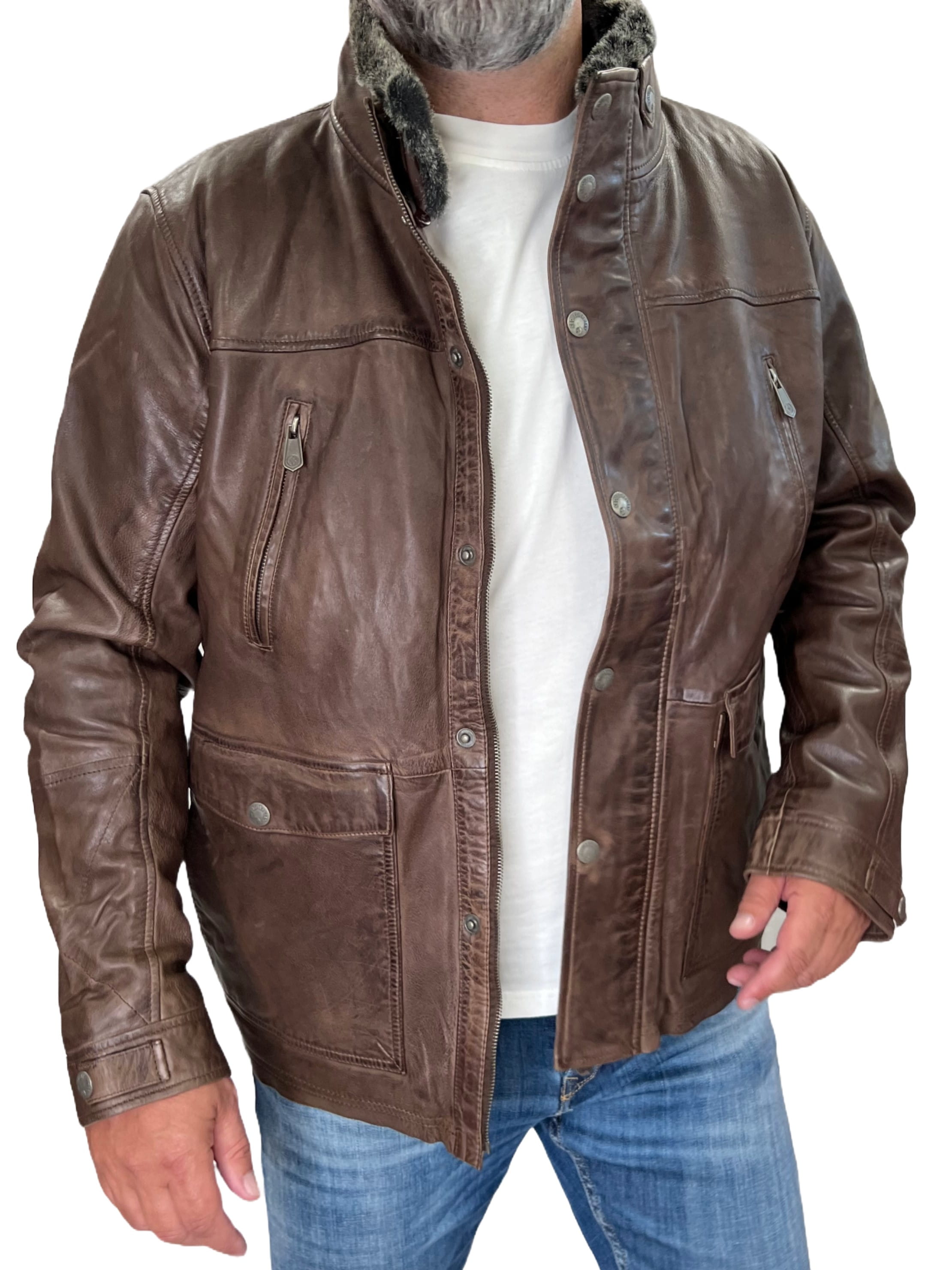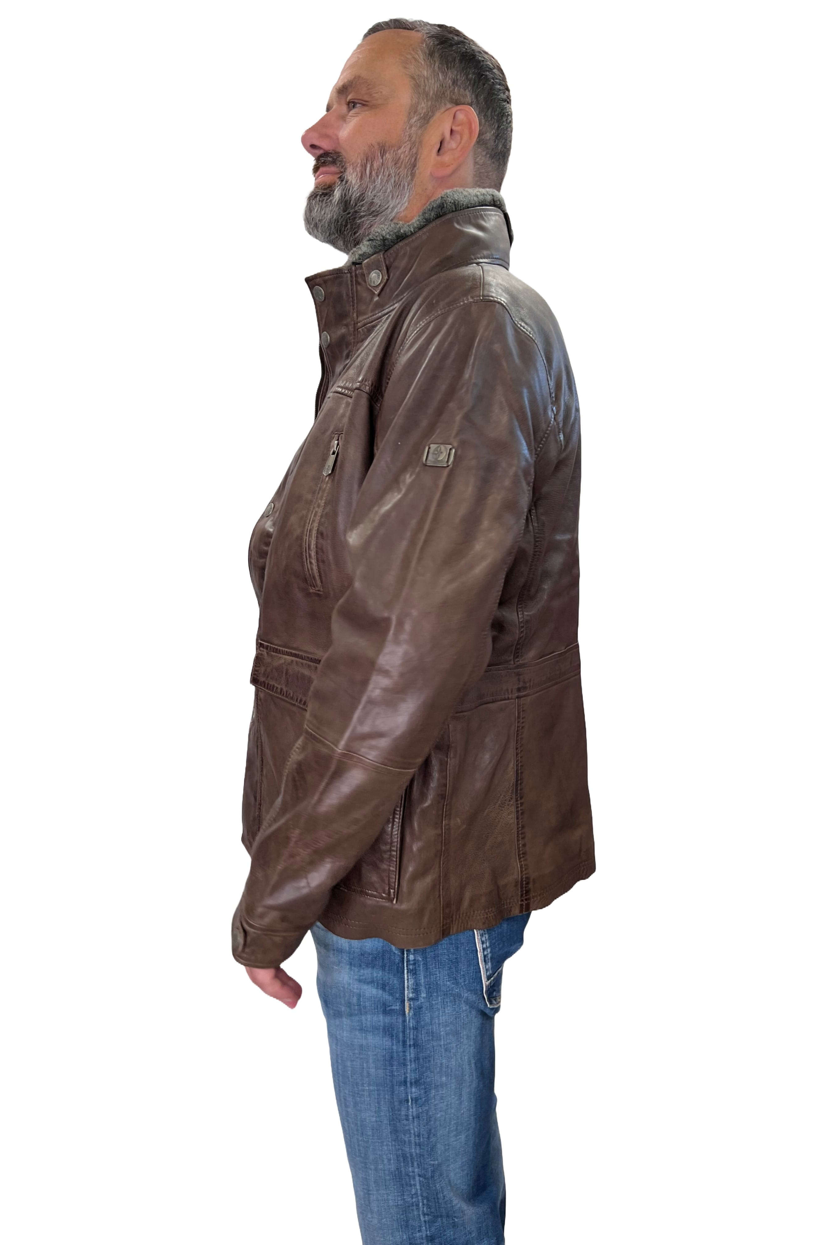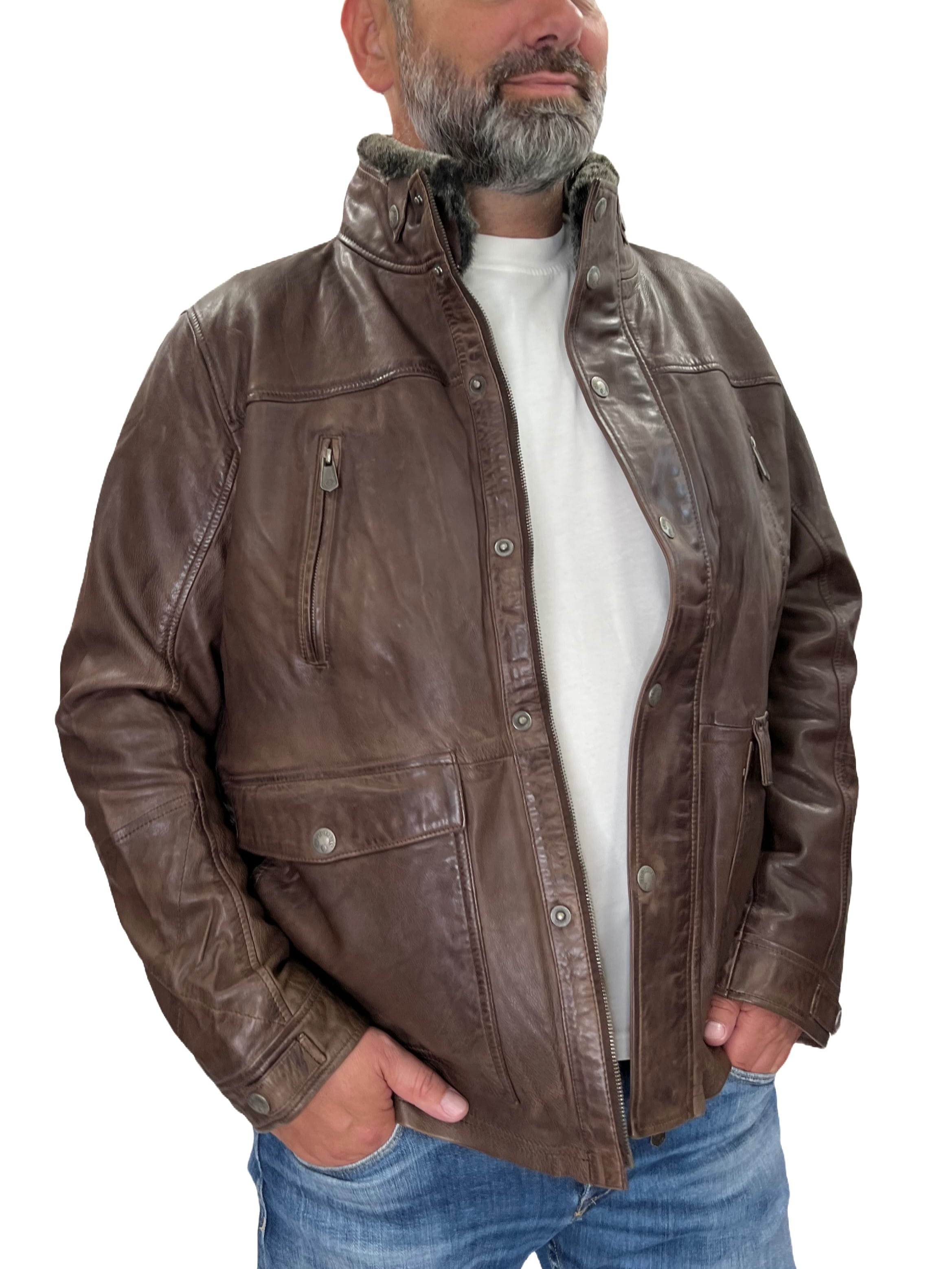Coole Herren Lederjacke im Used-Look mit großen, aufgesetzten Taschen.