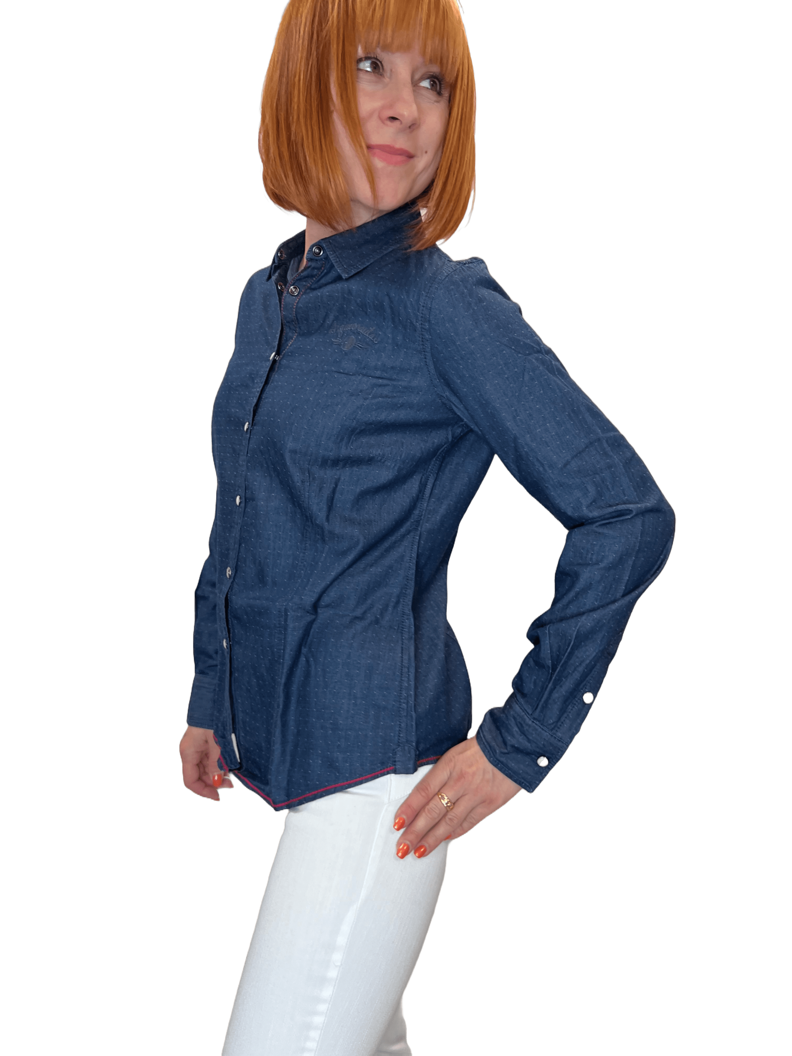 Schicke Damen Bluse von Arqueonautas in Jeansoptik.