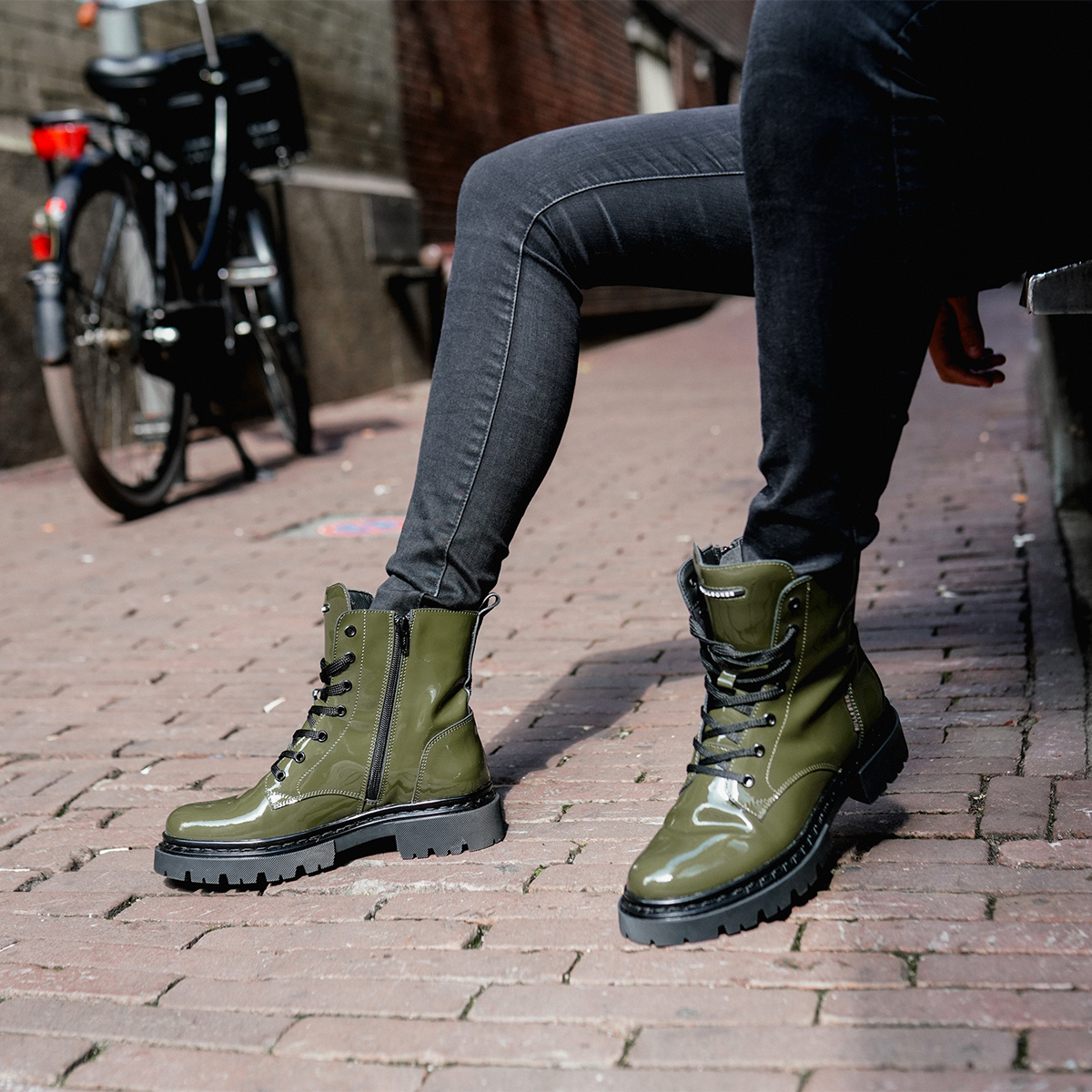 Mega Cool sind diese Bikerboots aus grünem Lack - Leder von BULLBOXER.