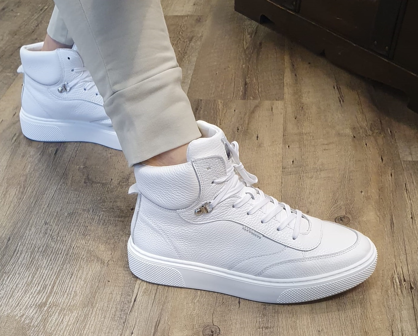 Was für tolle Leder Damen Sneaker von Bullboxer. Der Sneaker 783500E6L_WHIT ist aus feinem Leder gefertigt. Es ist knöchelhoch und hat ein leicht genarbtes Oberleder.