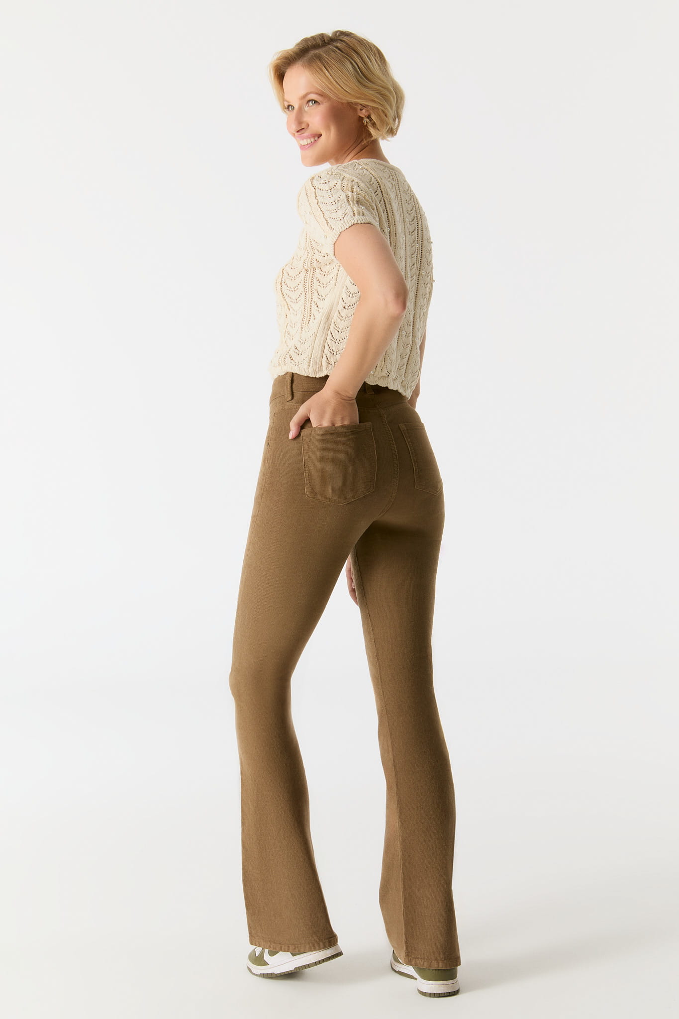Die Matilda flared Damen Cordhose mit hohem Bund von Cup of Joe ist eine wunderschöne Schlaghose mit hohem Tragekomfort durch den angenehmen Stoff.