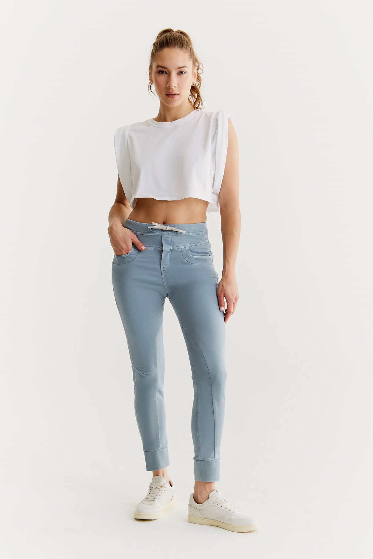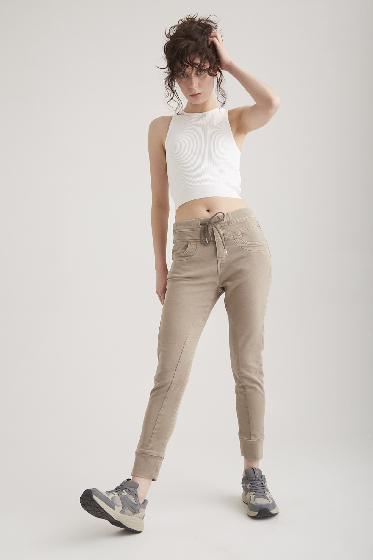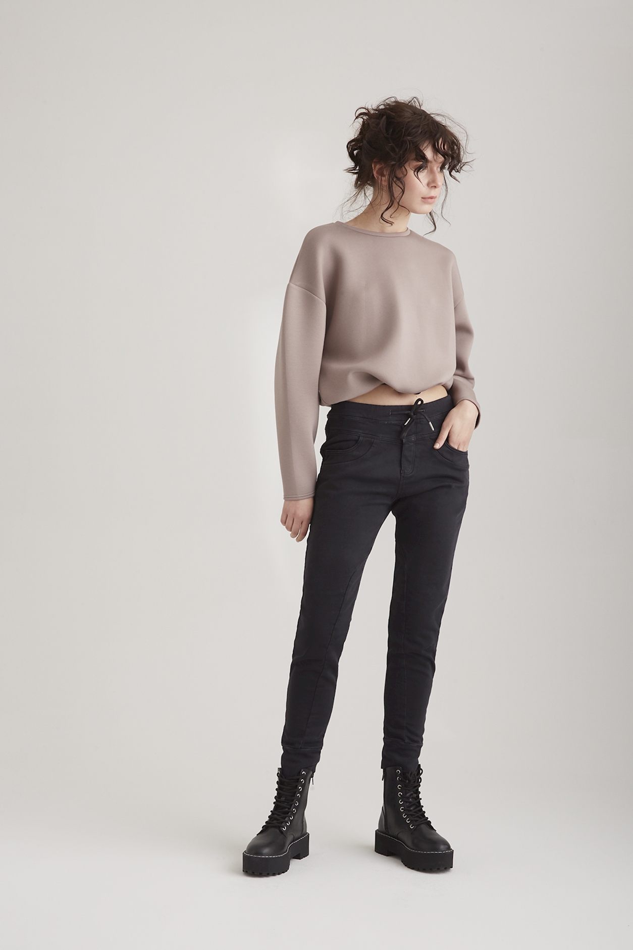 Mila ist eine tolle Hose von C.O.J. Denim. Sie ist Cargo, Jogg, Hose und Jeans in einem. Super geschnitten und angenehm zu tragen. Die Leute lieben sie und sind so begeistert, daß es nicht bei einer Farbe bleibt. Am Gesäß hat sie Taschen und ein Kordelzug als Gürtel. Im Schritt sitzt sie minimal locker und hat am Fußsaum ein Bündchen. In zwei Längen verfügbar.