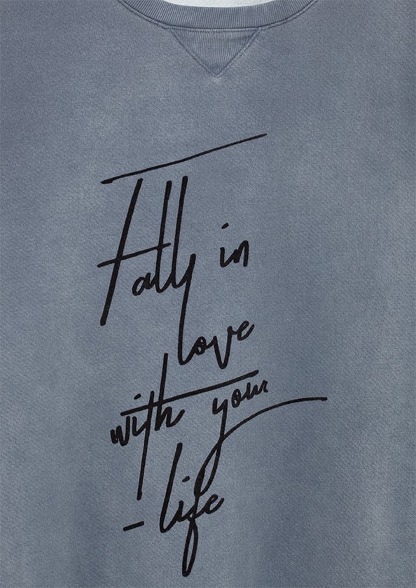Kuscheliger Damen Sweatpullover Aline von Circle of Trust aus reiner Baumwolle. Der Sweaty hat einen Rundhalsausschnitt, eine normale Passform und eine Aufschrift.