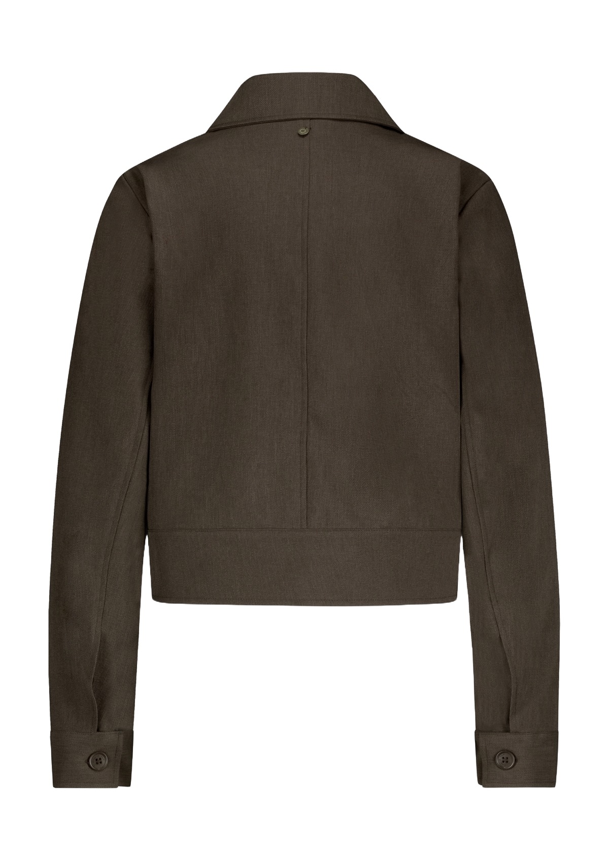 Die kastige Form und der Knopfverschluss verleihen eine moderne Note, während der Kentkragen den Look klassisch abrundet.