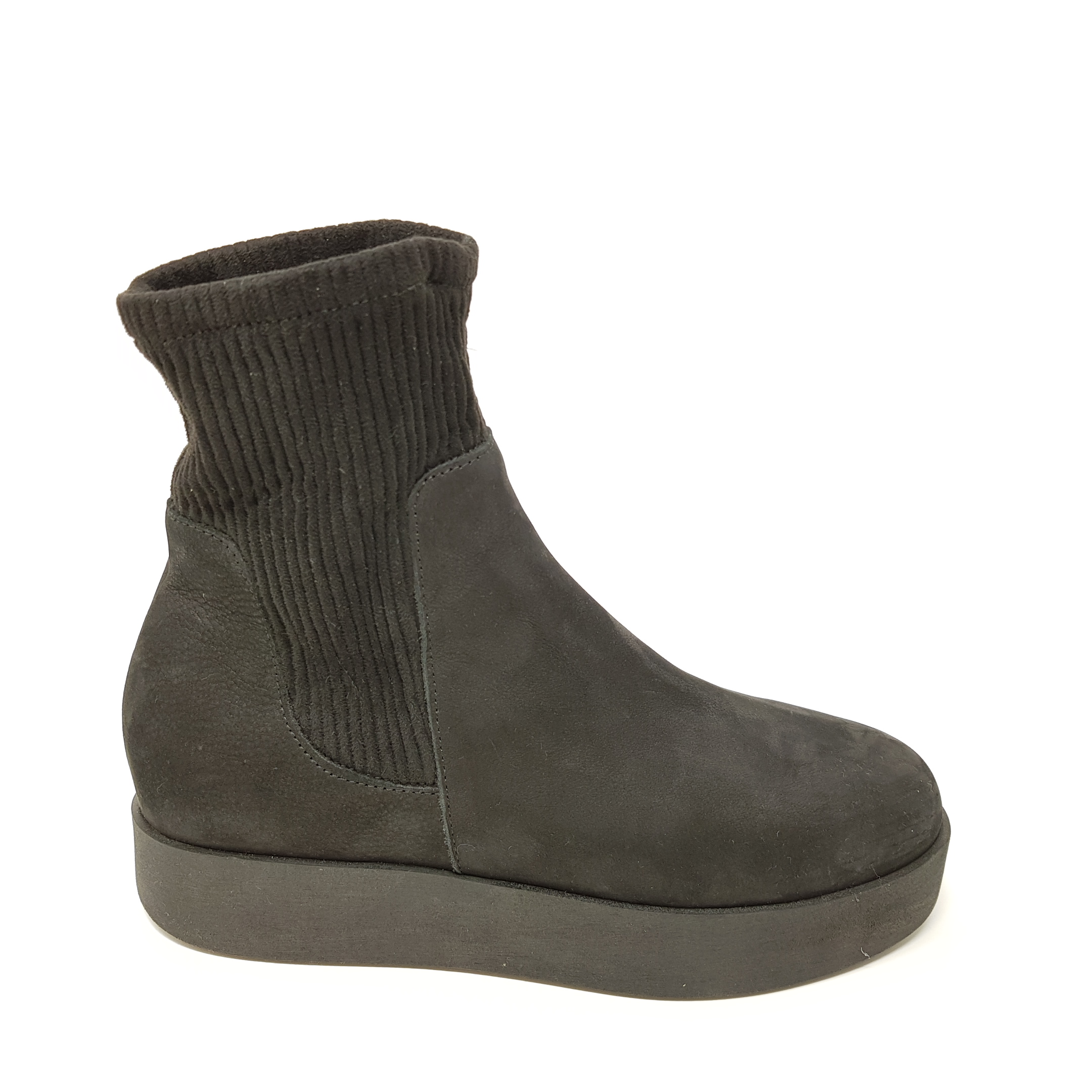 Dieser Plateau Schlupfstiefel ist aus hochwertigem Leder und strechhaltigem Strumpf hergestellt. Einfach einschlupfen - fertig. Sie sieht toll zu Leggins, Hosen und Jeans aus, aber durch die schmale Form aus ganz toll zu Kleider und Röcken.