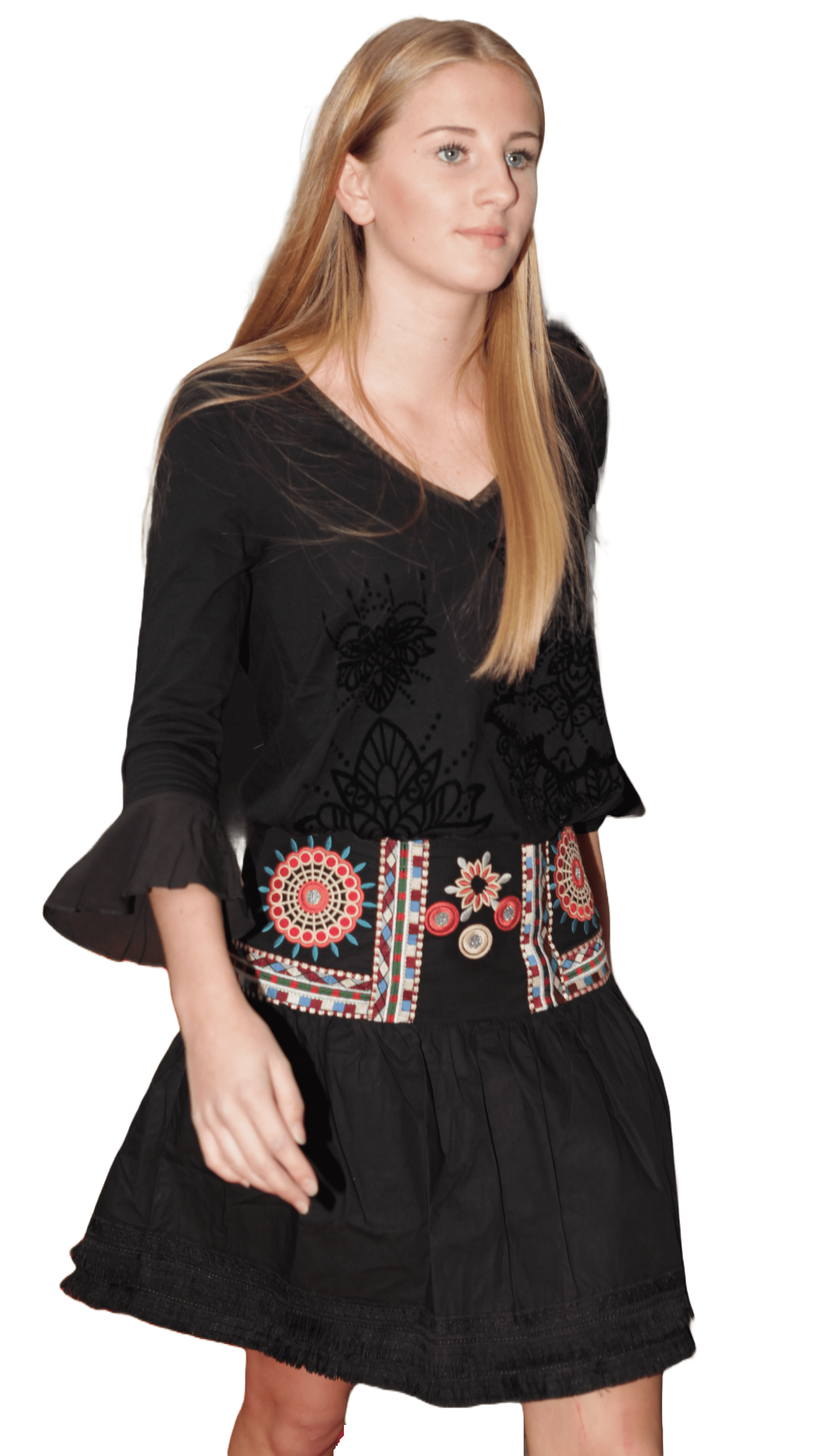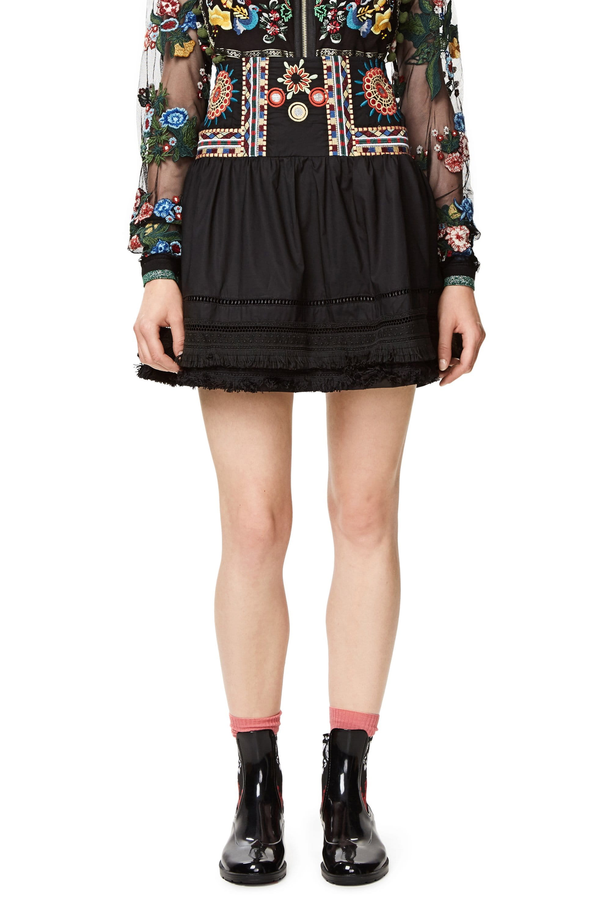 Süßer Damen Rock "Alegre" mit Fransen und halb durchsichtigem Muster.