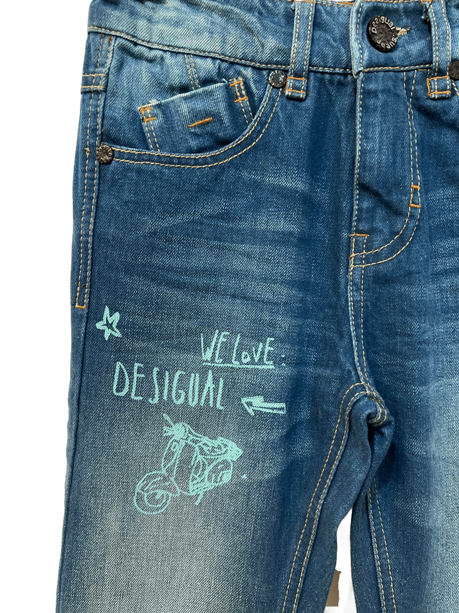 Jungen Jeans "Birmano" von Desigual mit verspieltem Logo Print auf der Vorderseite.