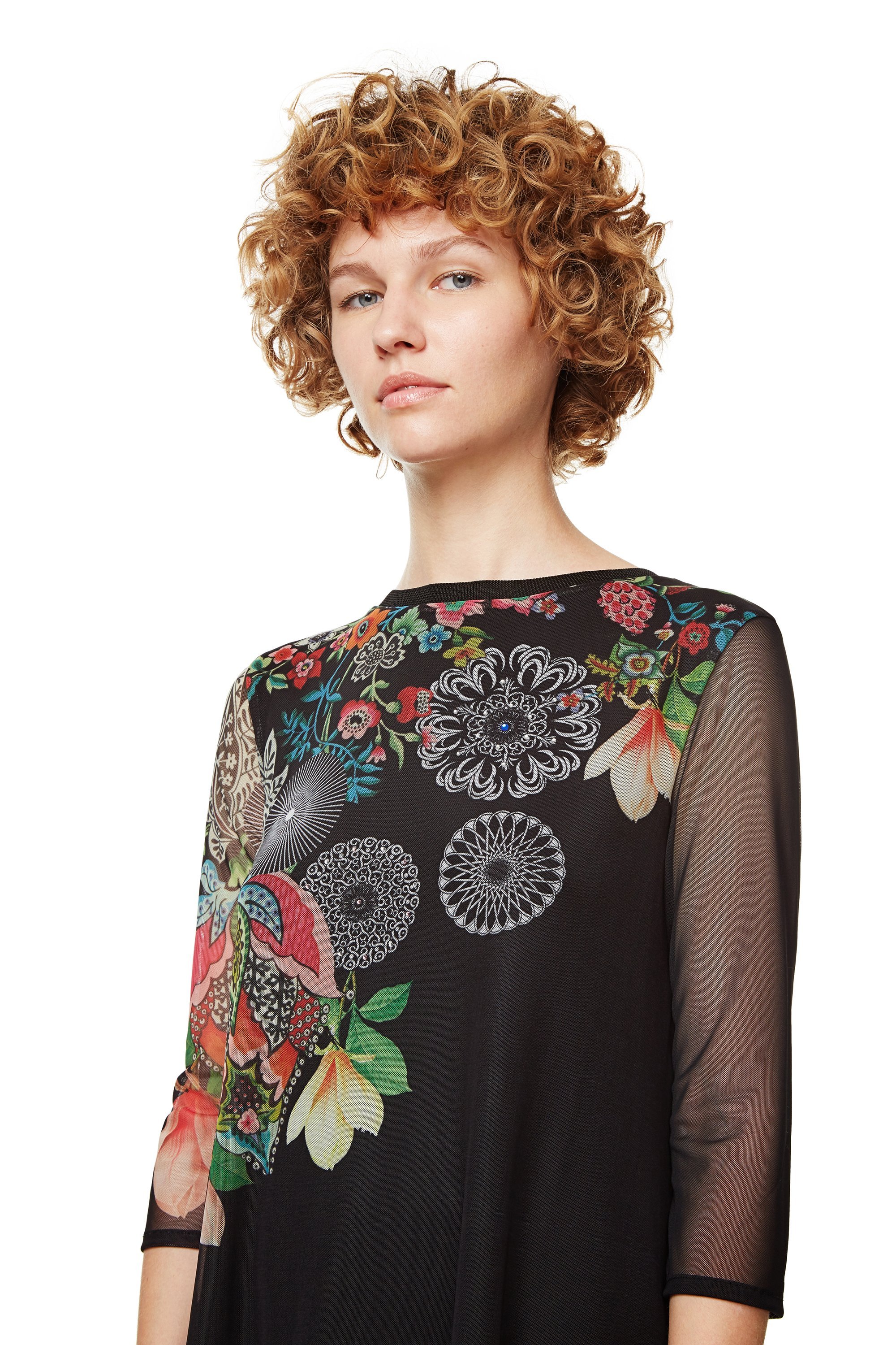 Halb durchsichtiges Damen Shirt "Valery" von Desigual mit Blumen Print.