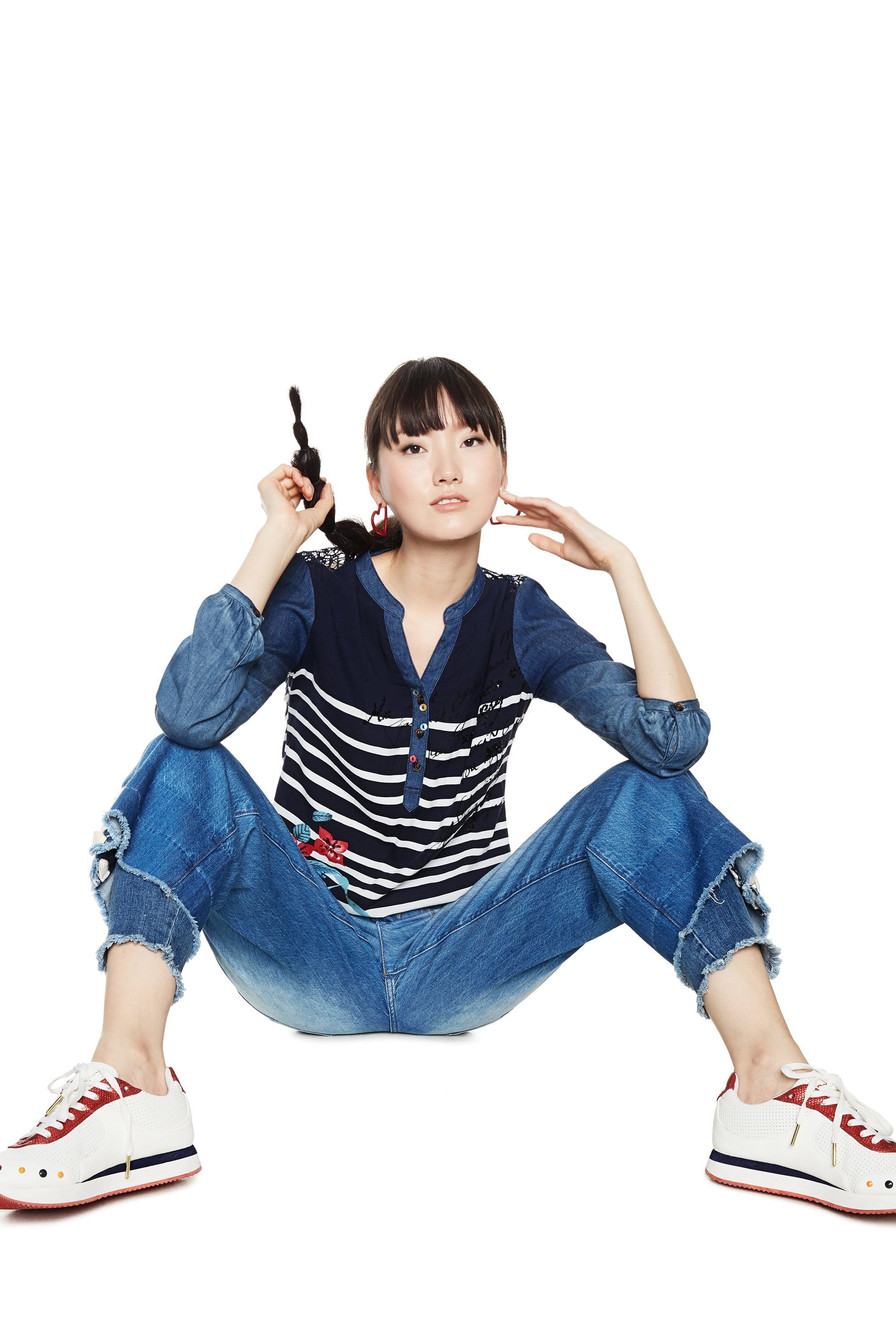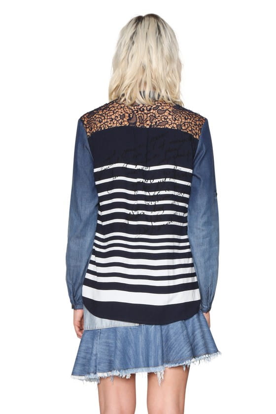 Desigual Damen Bluse "Judith" in Jeans Optik mit Streifen und Blumenprint.