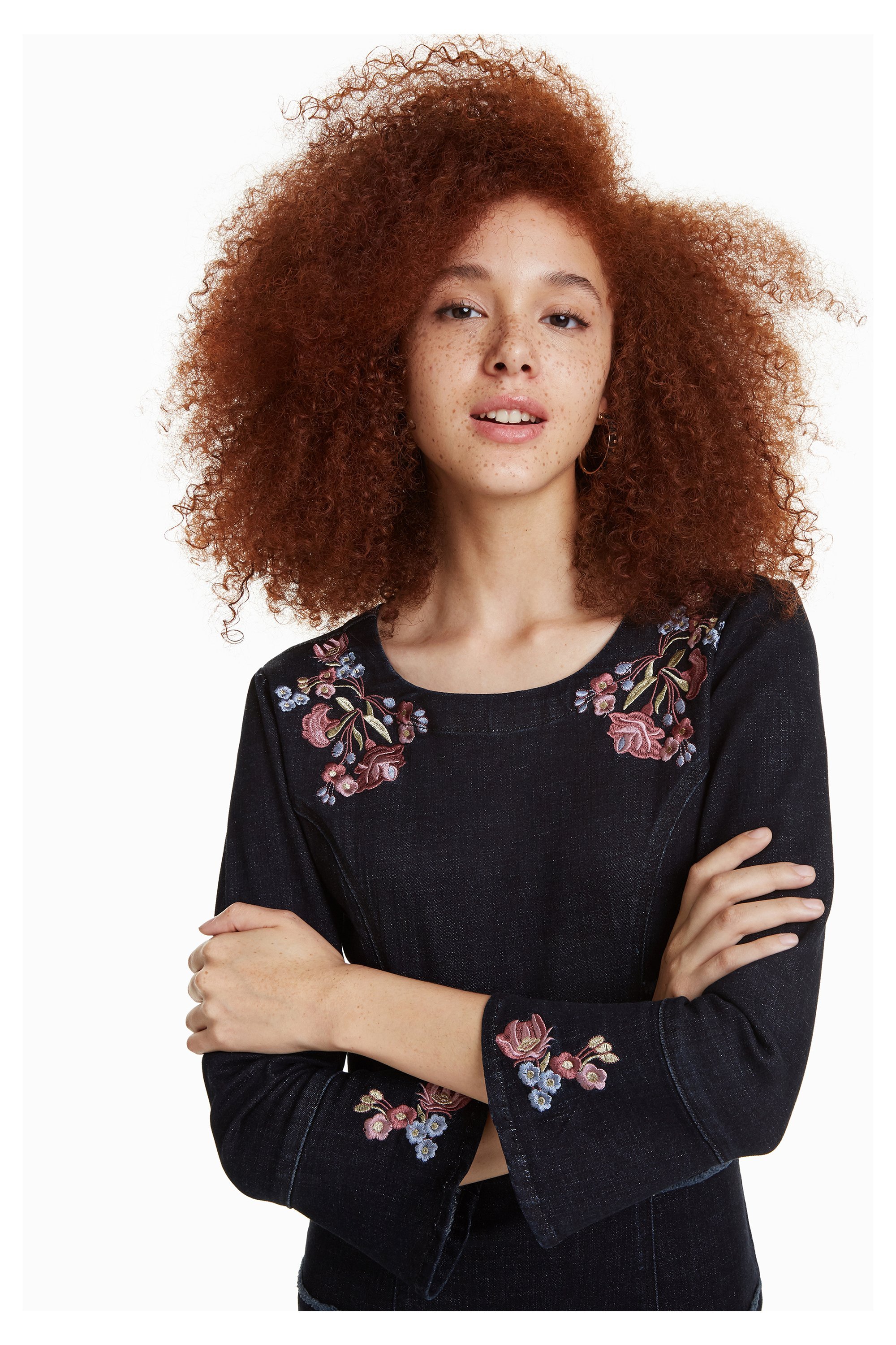 Laura ist ein absolutes Must Have! Mit der figurbetonten Silhouette und dem weichen ausgewaschenem Demin Stoff mit Farbverlauf, überzeugt das Jeans Kleid. Verziert mit rosa farbenen Stickereien an den Schultern und am Saum der 3/4 Ärmel. Es ist von hinten mit Reißverschluss zu verschließen.