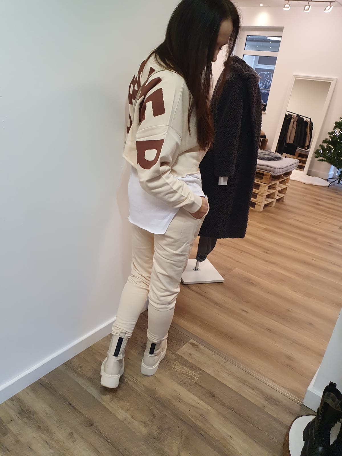 Es ist ein kurz geschnittener cropped Sweatpullover und passend dazu gibt es die Jogger Hose Essential. Auch in unserem Bootbay Online Shop zu finden.