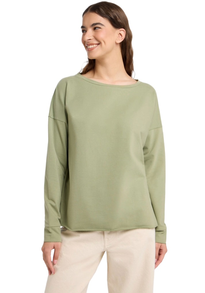 Das "Riane" Damen Sweatshirt von Elbsand begeistert mit einem lockeren Schnitt und angenehmen Material. Der feminine U-Bootausschnitt unterstreicht die entspannte Silhouette, während überschnittene Schultern einen lässigen Charakter verleihen.