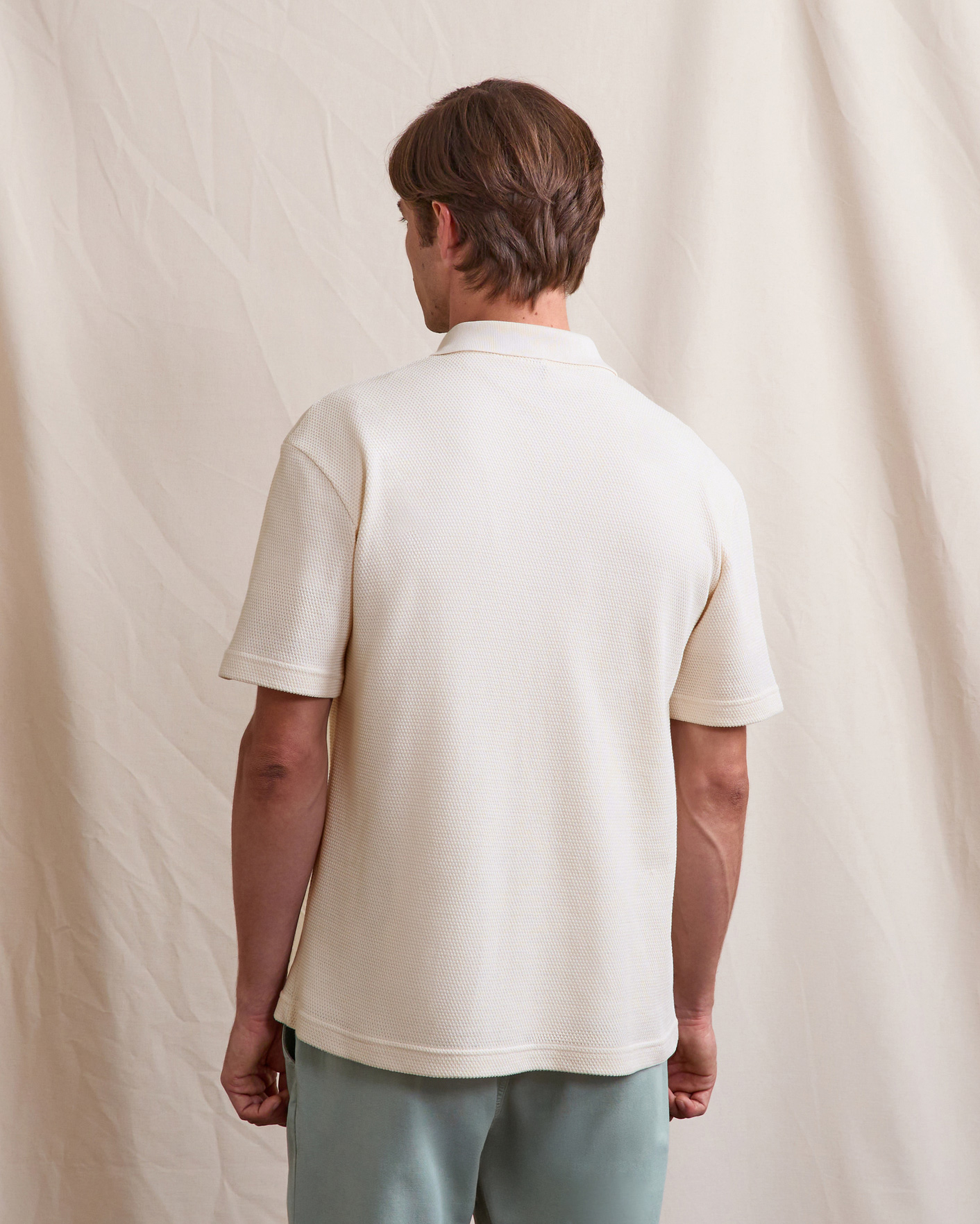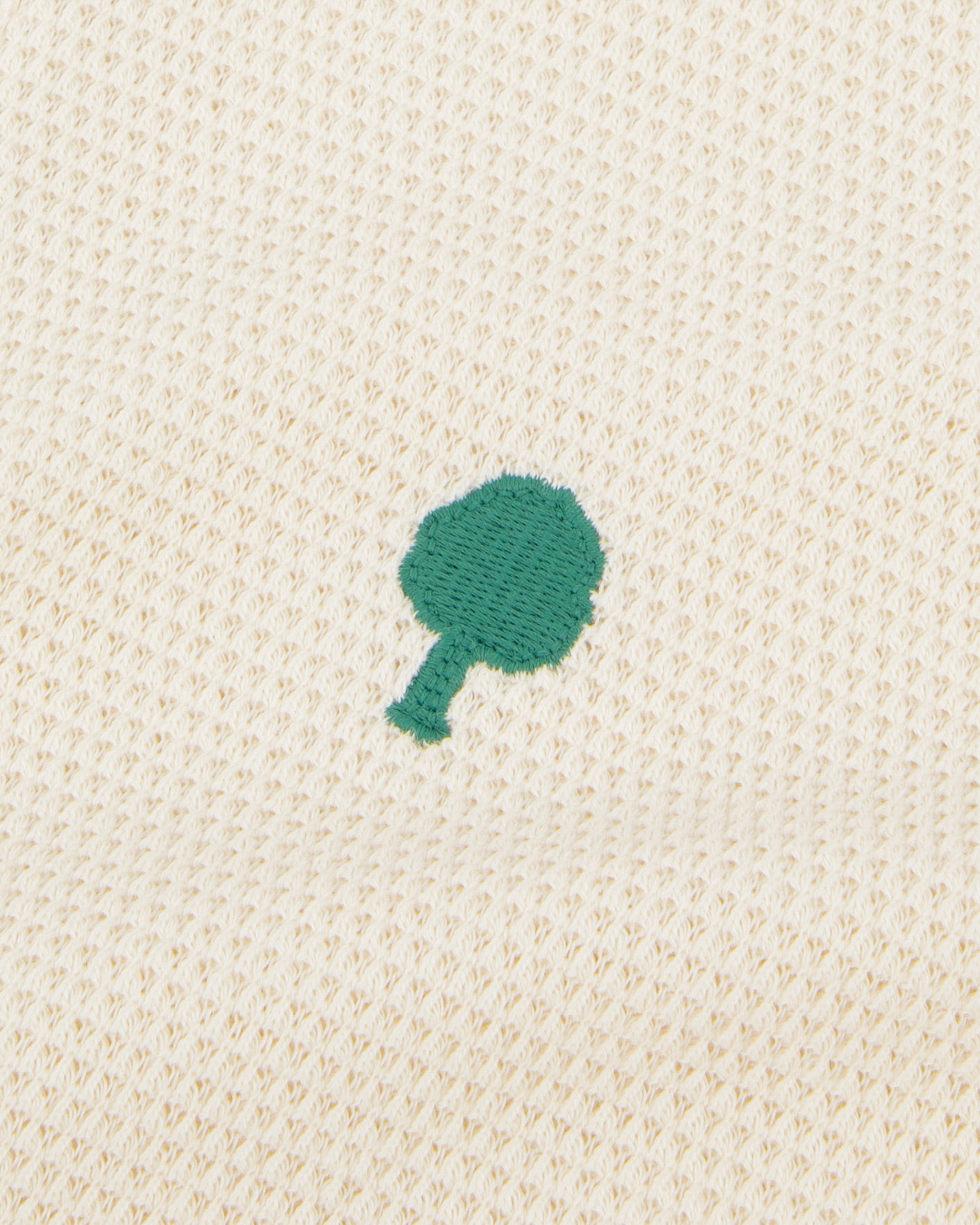 Zeitloser Polo-Charakter wird durch die Zwei-Knopf-Leiste unterstrichen, während das gestickte Baum-Logo einen hochwertigen Markenakzent setzt.