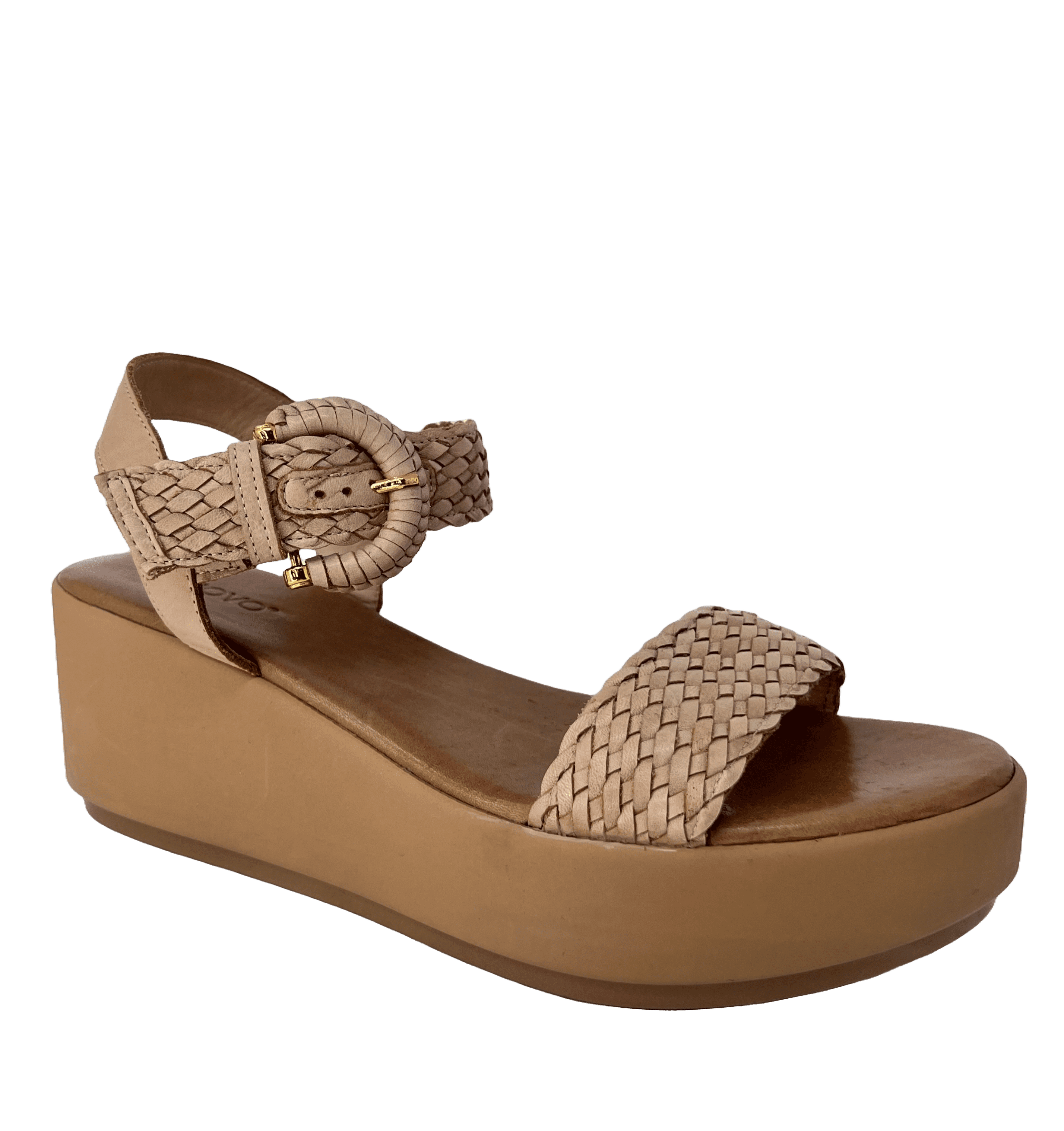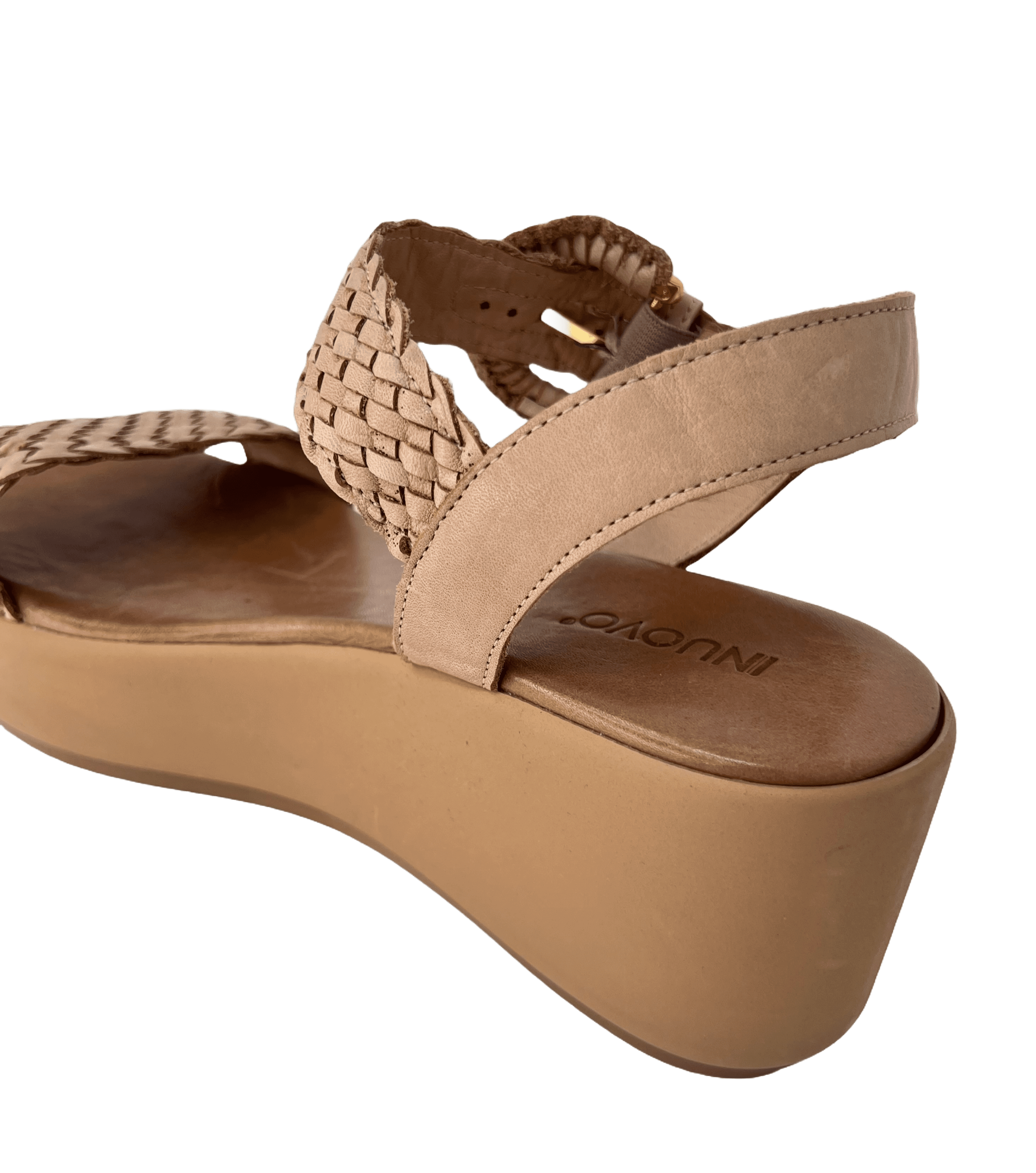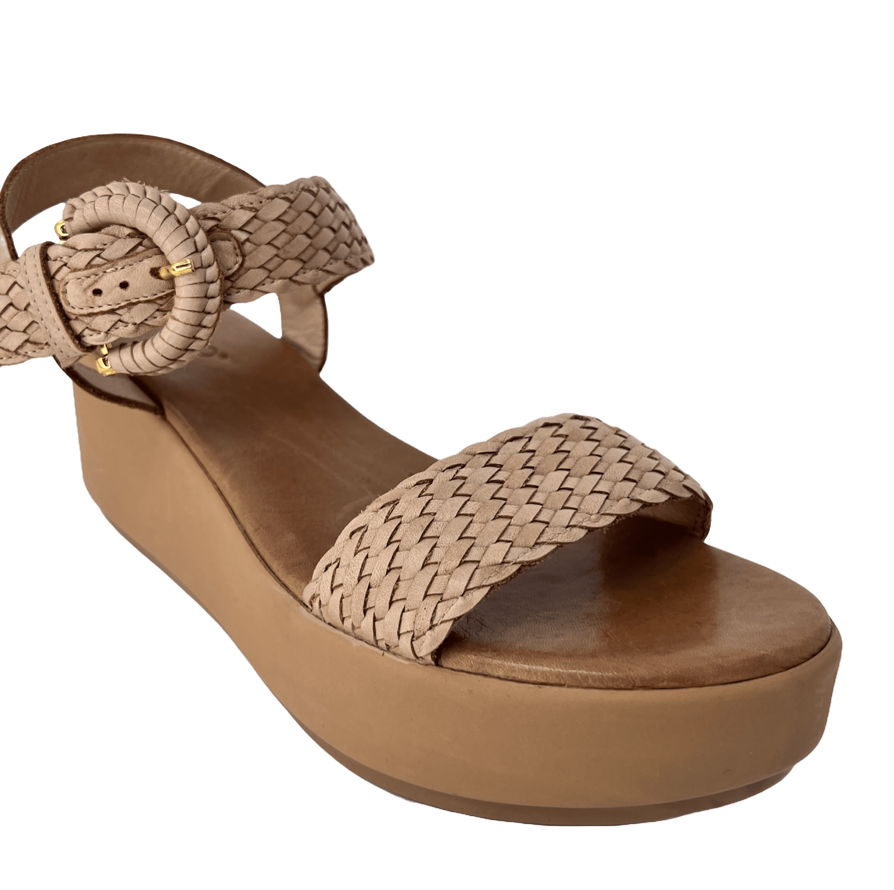 Plateau Damen Sandale von Inuovo mit geflochtenen Riemchen und großer Schnalle.