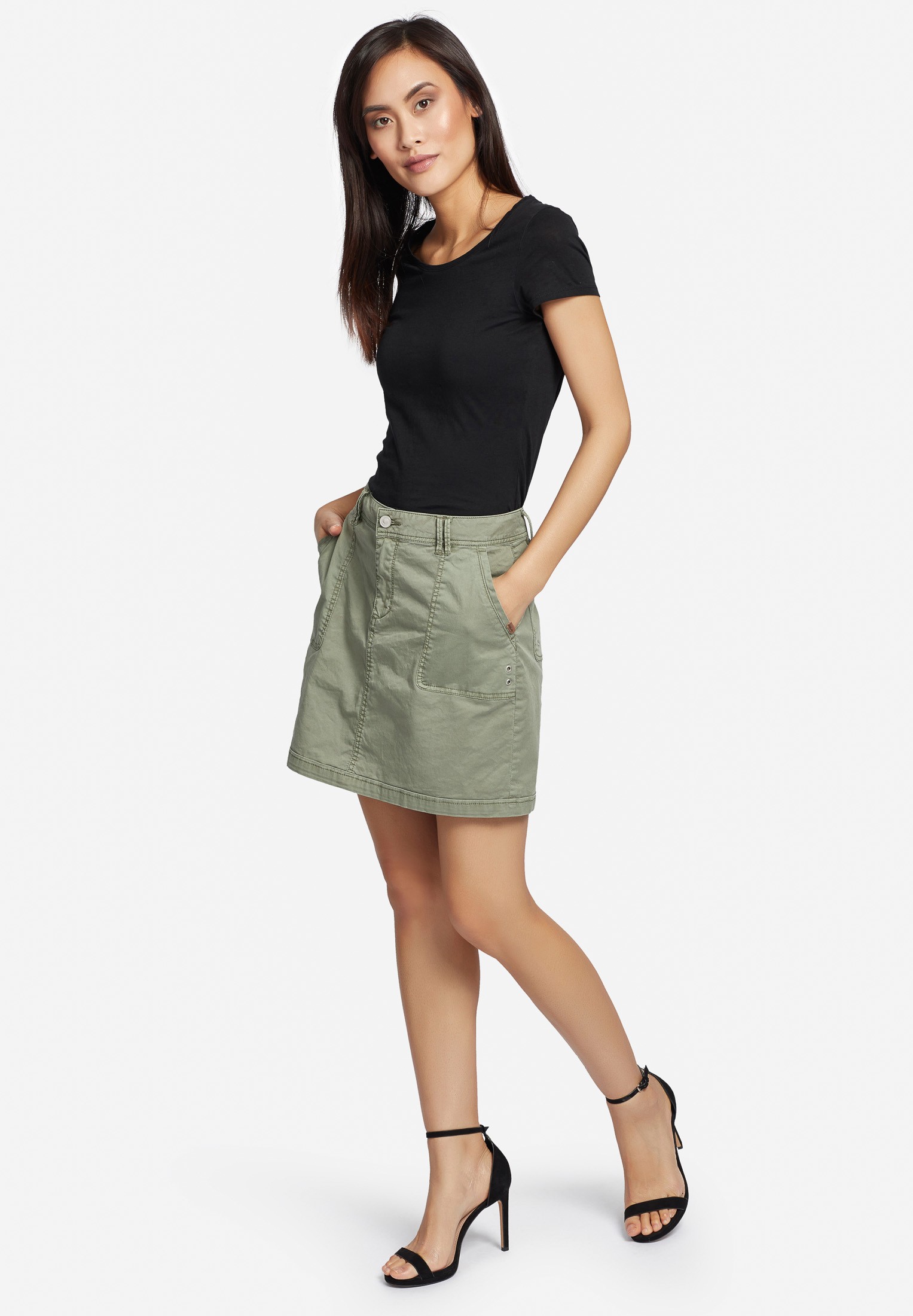 Der Rock Annegret ist ein Basic Rock der einfach immer passend ist. Zum Ausgehen oder als Casual Look. Im Büro oder am Strand. Er ist aus Baumwoll Strech, super bequem, toll geschnitten und leicht. Die Gürtelschlaufen und der großen Eingrifftaschen machen in komplett. Kombiniere Sneaker oder Sandalen, Shirts oder Blusen!