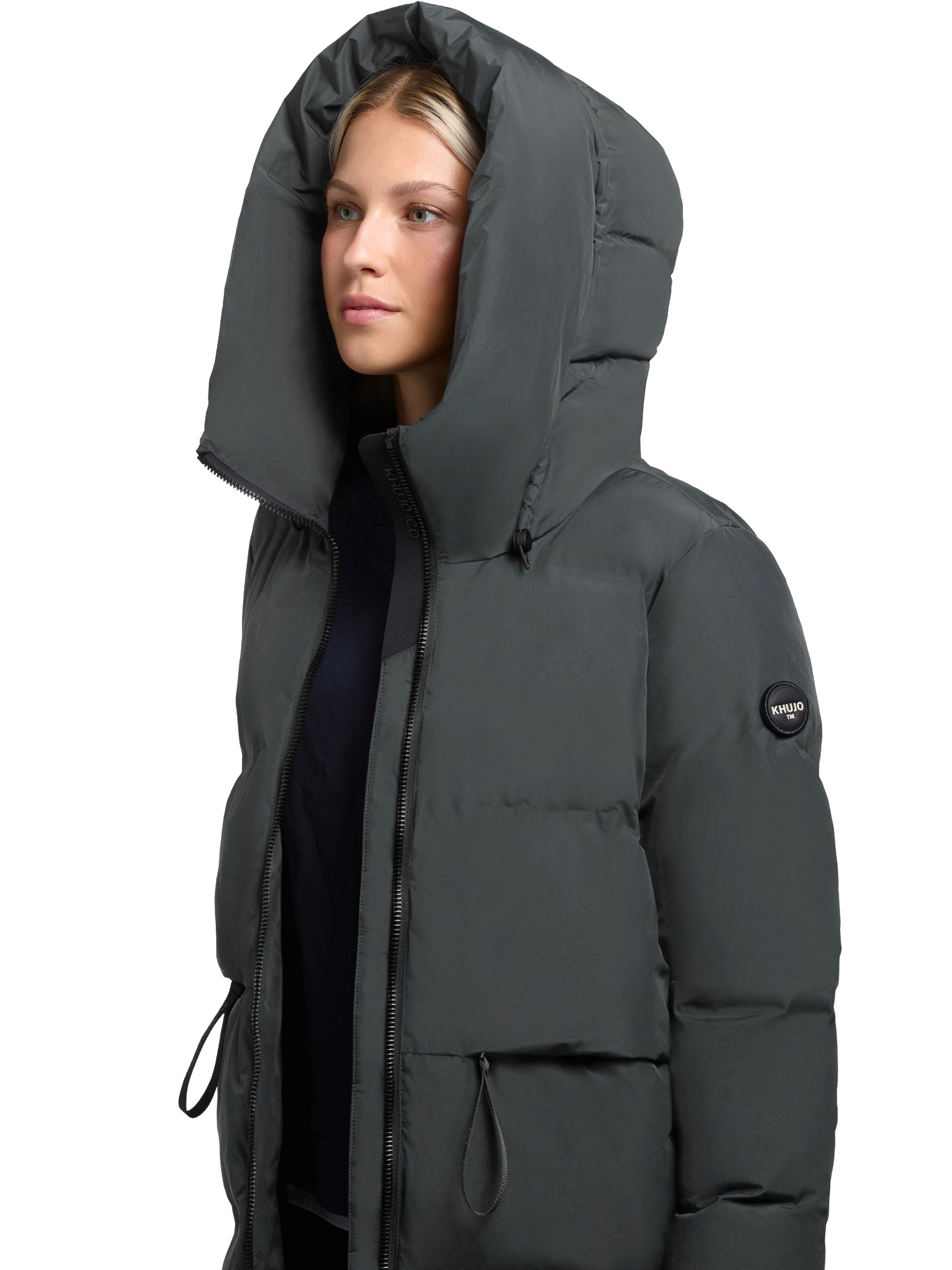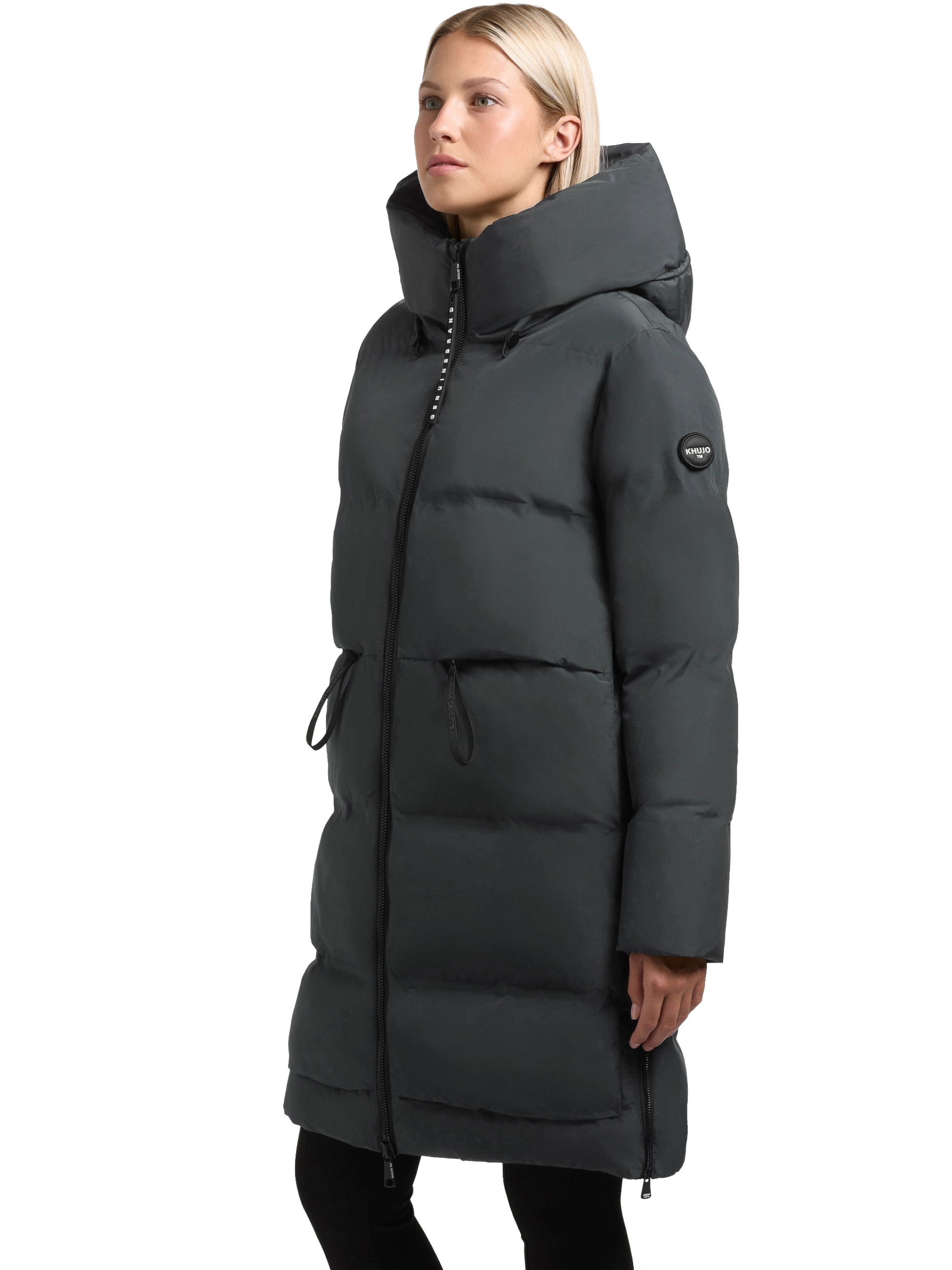 Der Mantel LAMERA von Khujo ist ein toller Mantel aus seidig schimmernden Material.Er hat wasserabweisende Eigenschaften und ist ein super Begleiter bei stürmischen und kalten Wintertagen.Du bist bis zur Mitte des Oberschenkels geschützt in einem warm wattierten Steppmantel, der wegen seines besonderen Material aber garnicht aufträgt und der Figur schmeichelt. Fällt Größengerecht aus! feste Kaputze warm wattiert leicht Zweiwegereißverschluß seidig schimmerndes Obermaterial