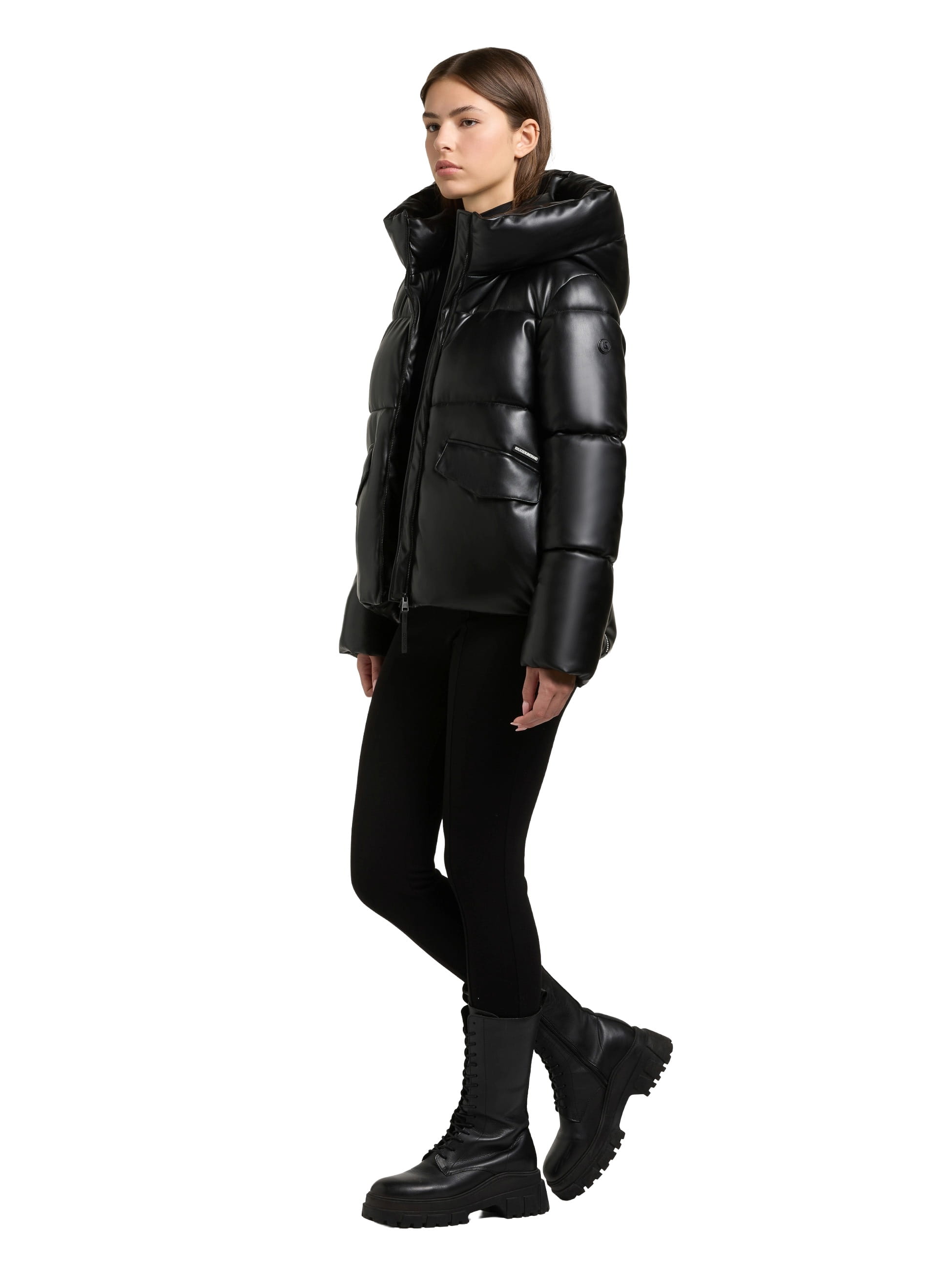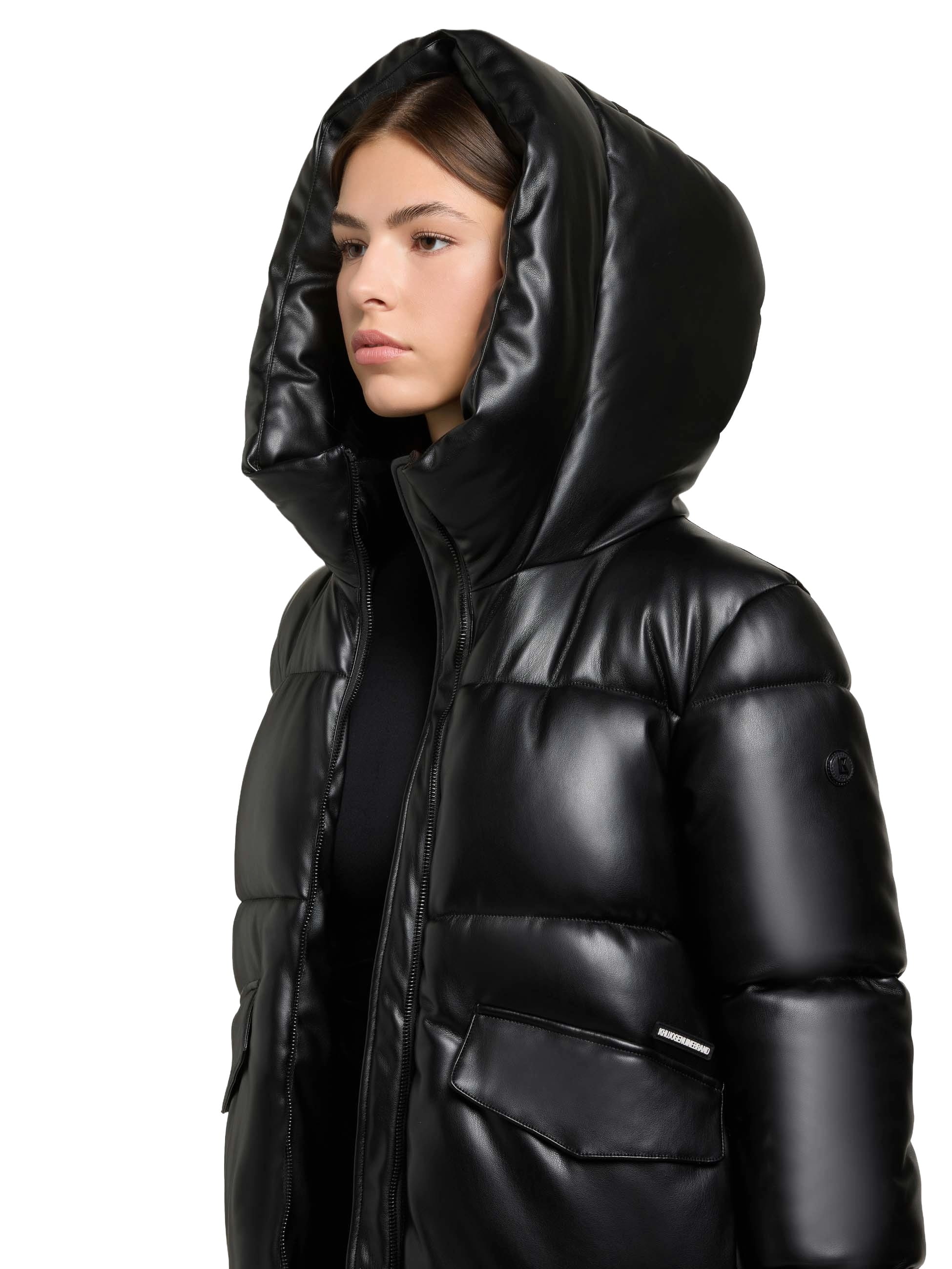 Mit einem wasserabweisenden Obermaterial in Lederoptik, großer Kapuze mit abgesteppter Krempe und verlängertem Rückenteil.