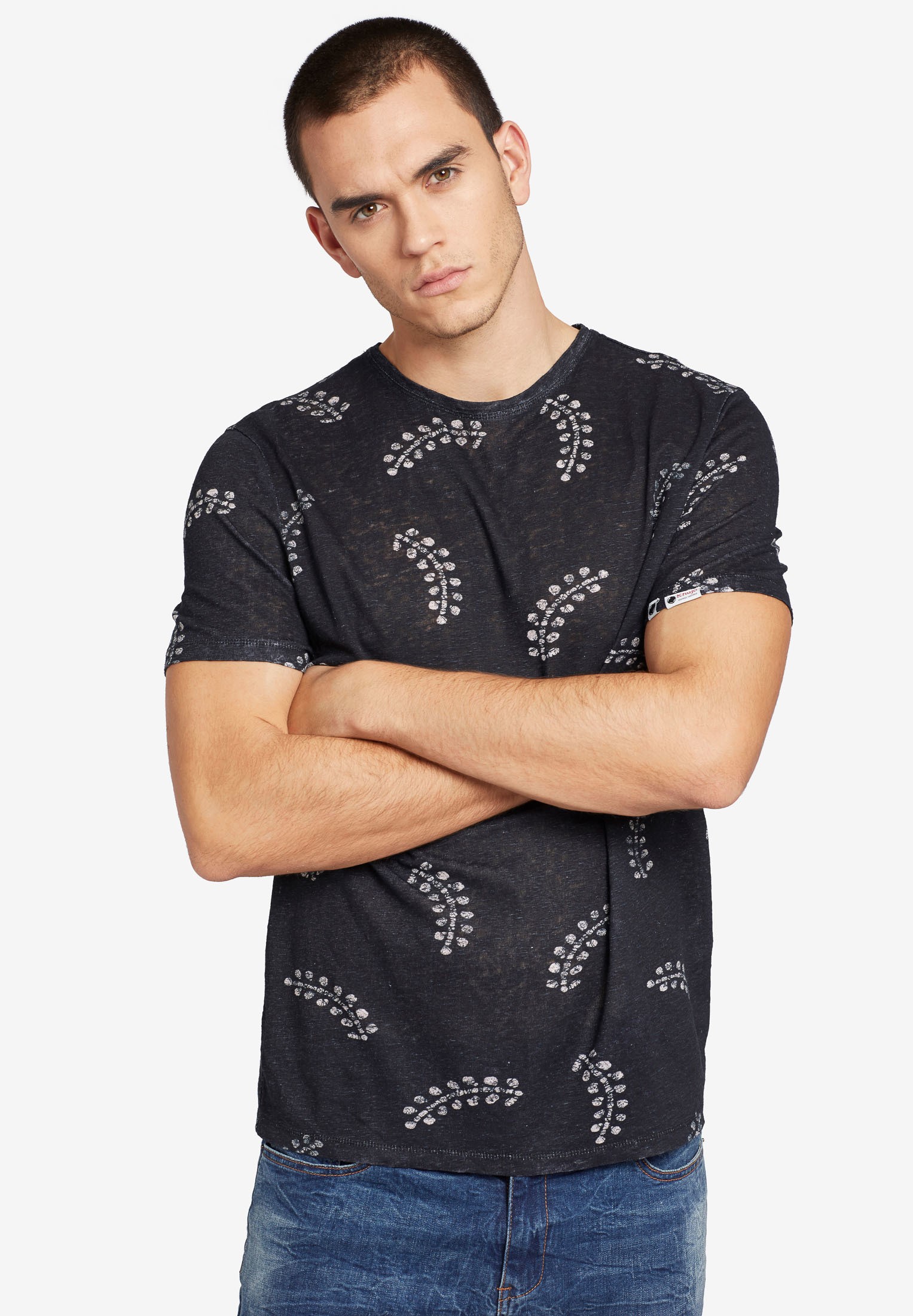 Duck Aop ist ein Herren Shirt von Khujo und besteht auf einem angenehmen Jersey aus Leinen. Es ist mit einem Allover Print versehen und peppt zu 100% dein Summer Look auf!