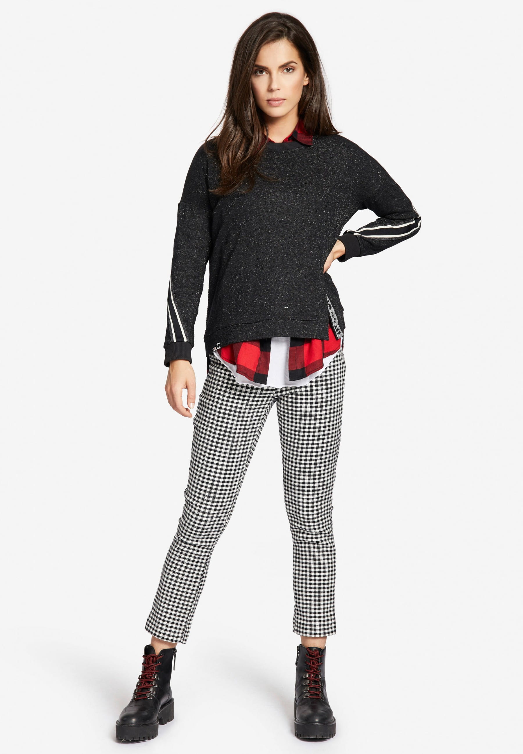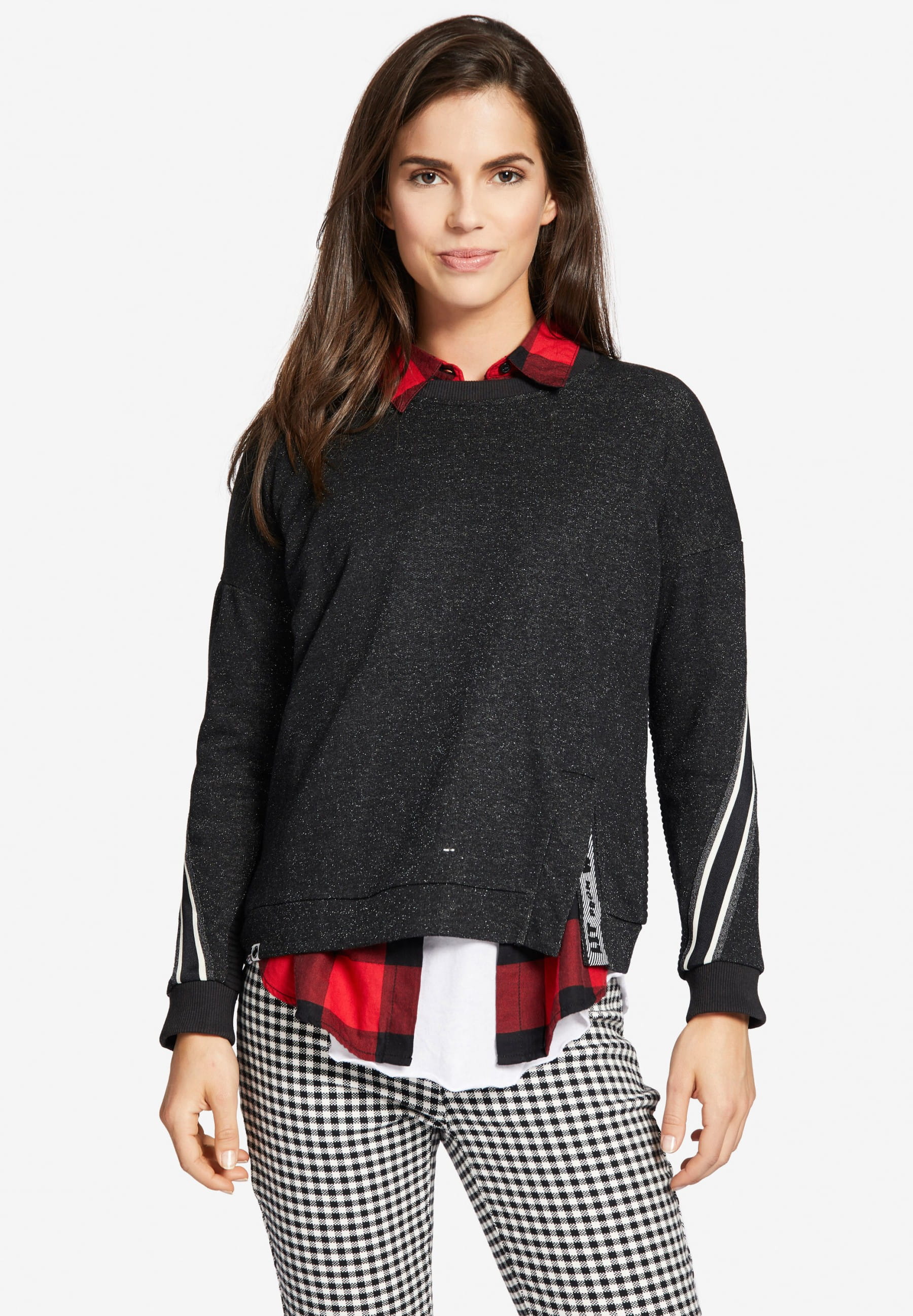 Ein absoluter Eye-Catcher ist der Damen Pullover "Hilda" von Khujo. Die glitzernde Oberfläche in Verbindung mit den seitlichen Streifen auf den Ärmeln und den Schlitzen an der Hüfte machen Hilda zum Hingucker!
