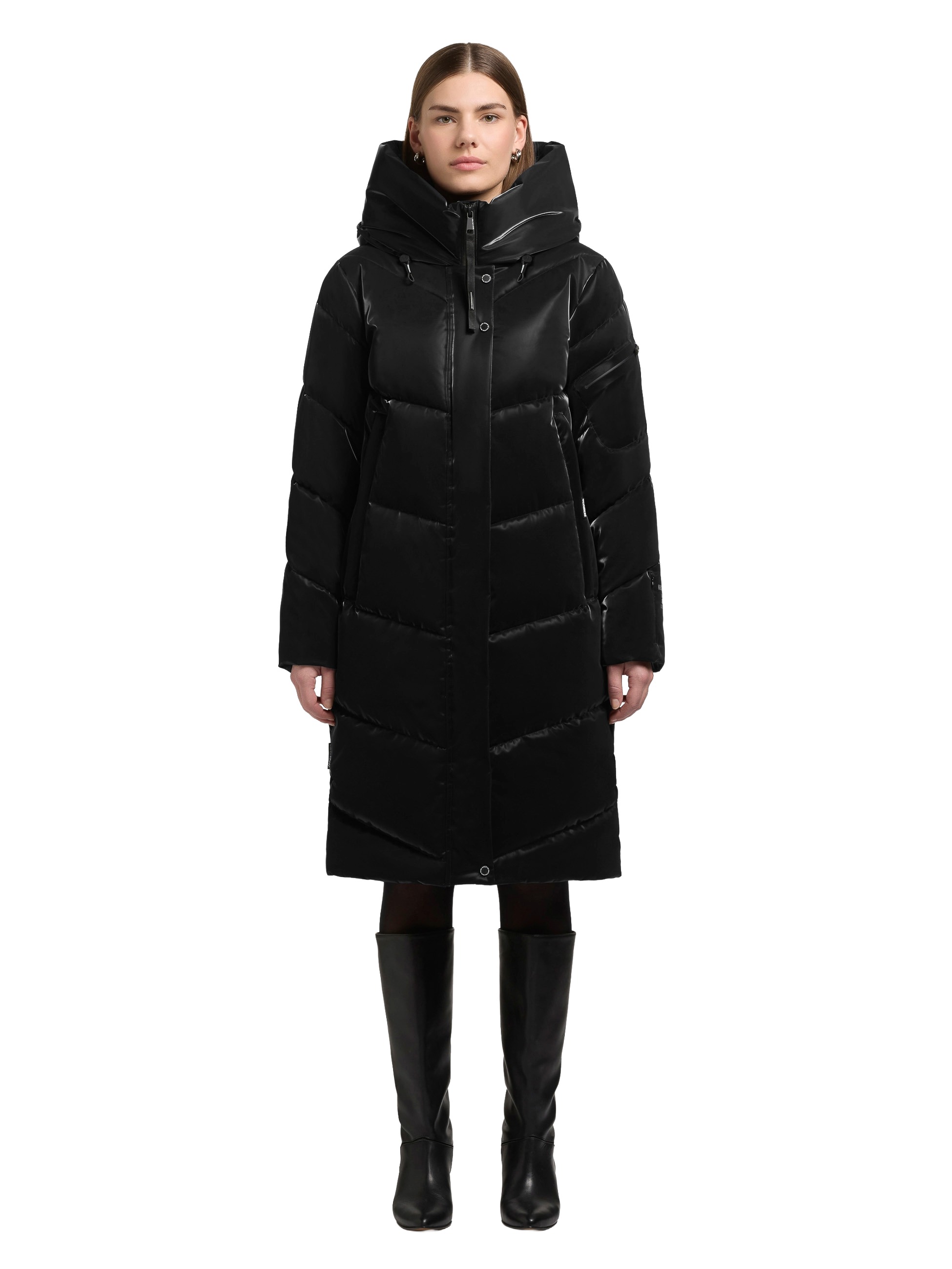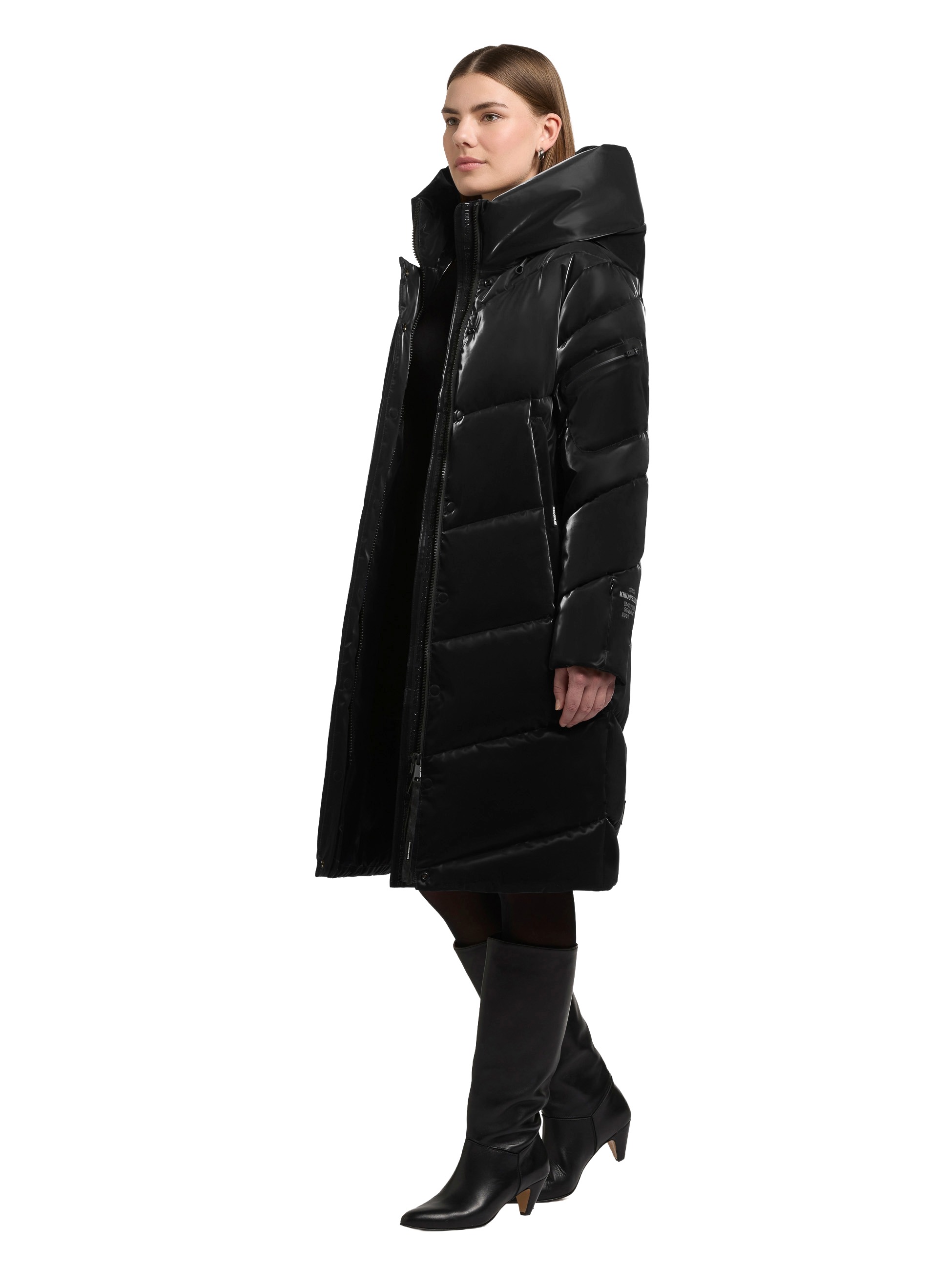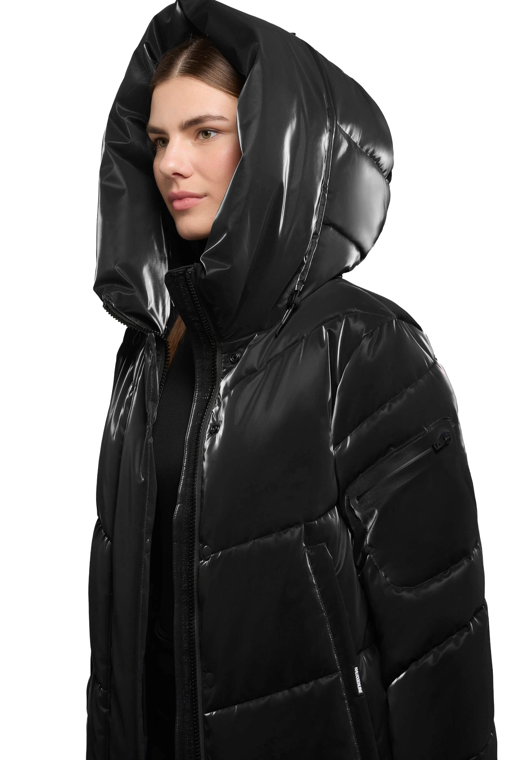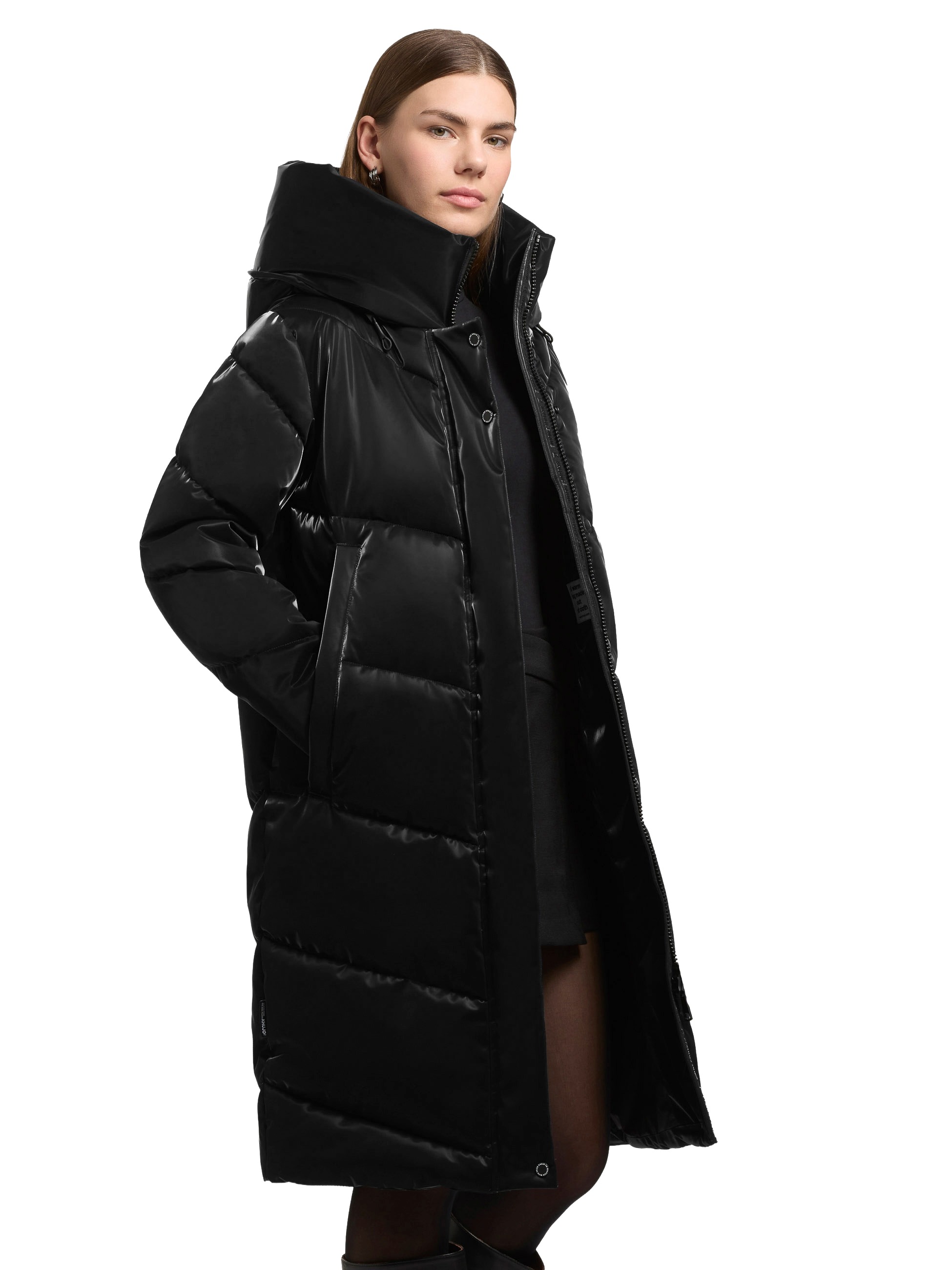 Der "Jange 2 Shiny" Mantel von Khujo überzeugt mit seinem edlen, seidigen Glanz und einer soften Haptik. Dank elastischer Bündchen am Ärmelfutter und dem regulierbaren Saum bleibt die Wärme zuverlässig im Inneren.