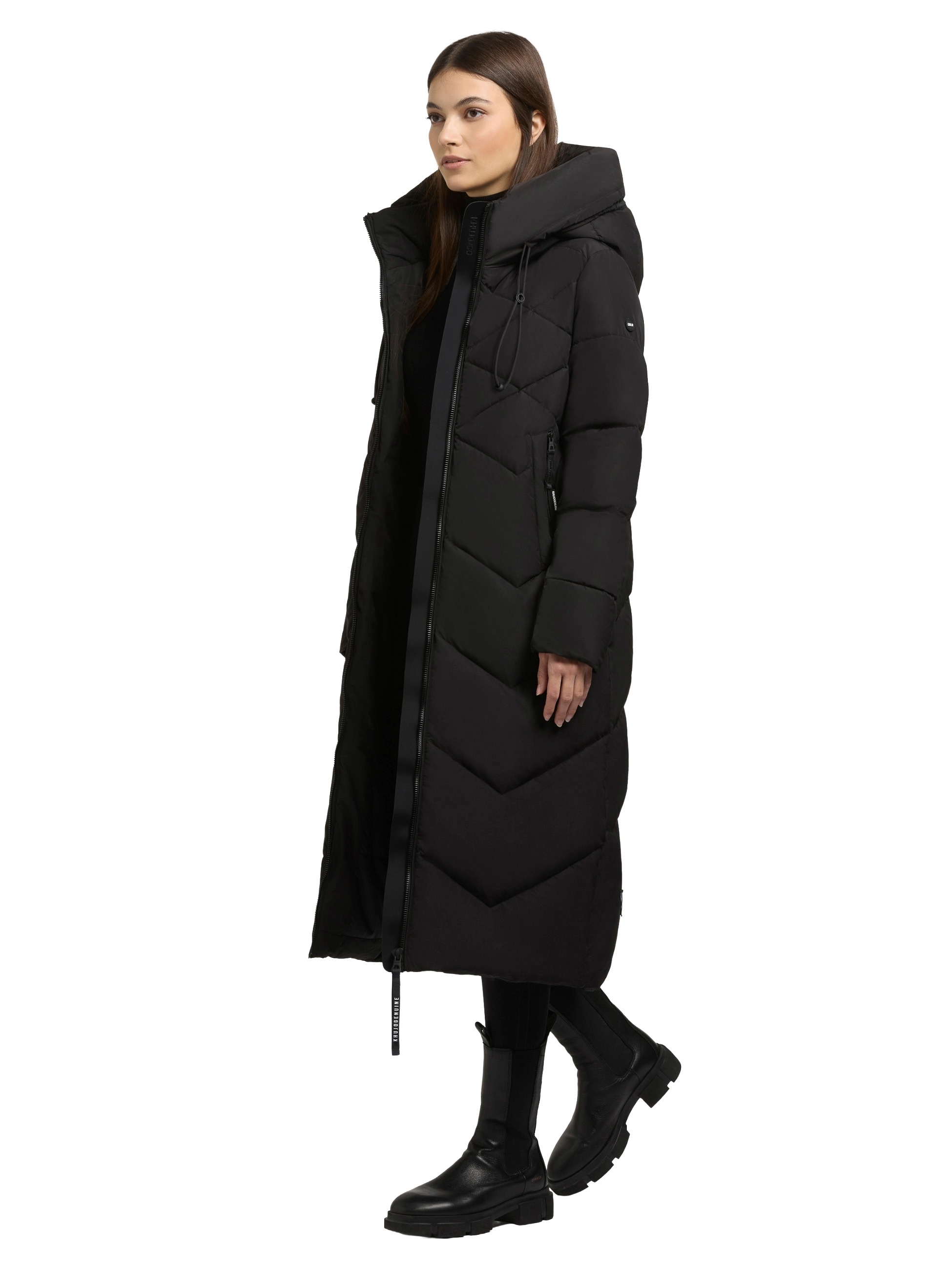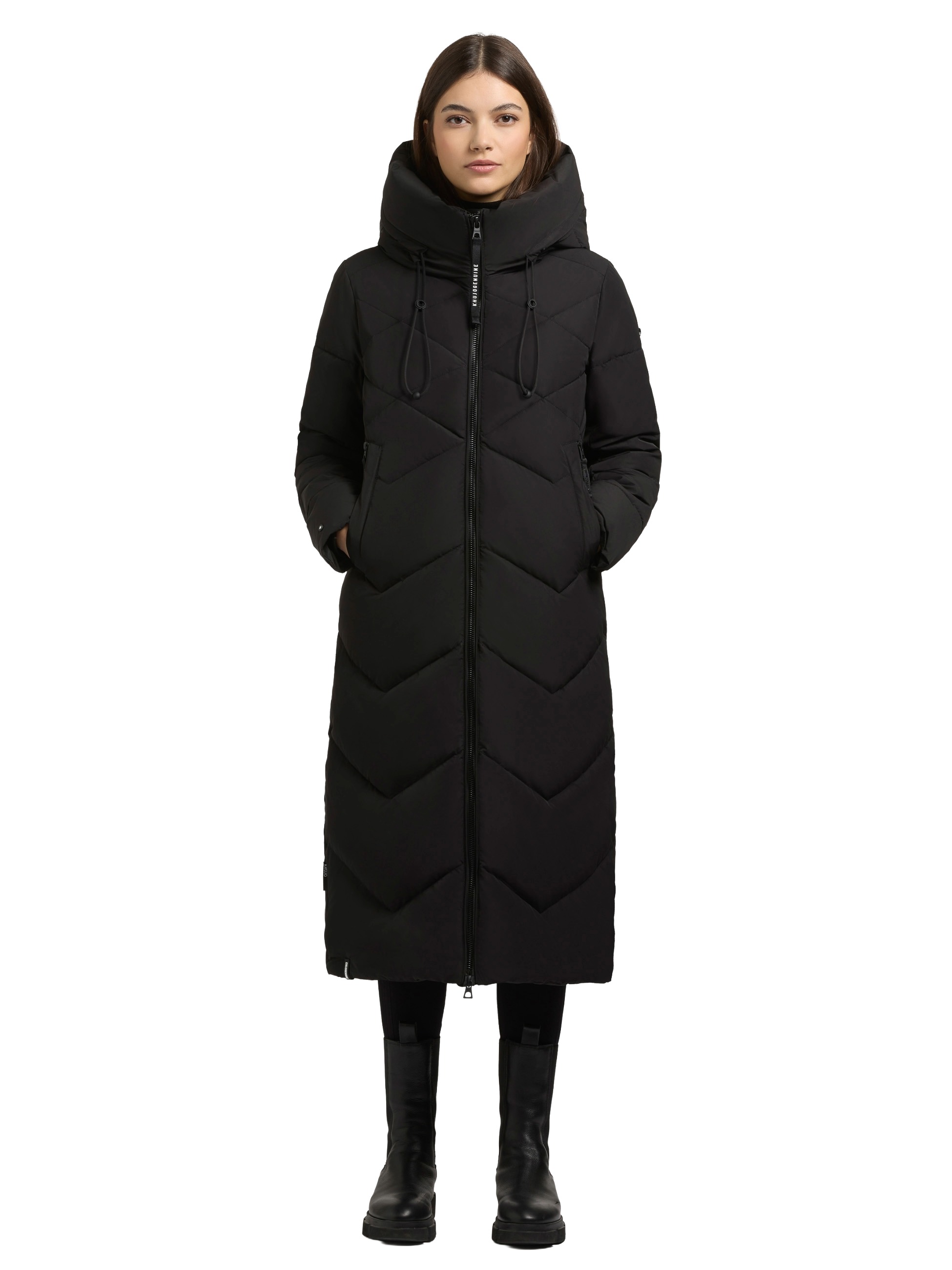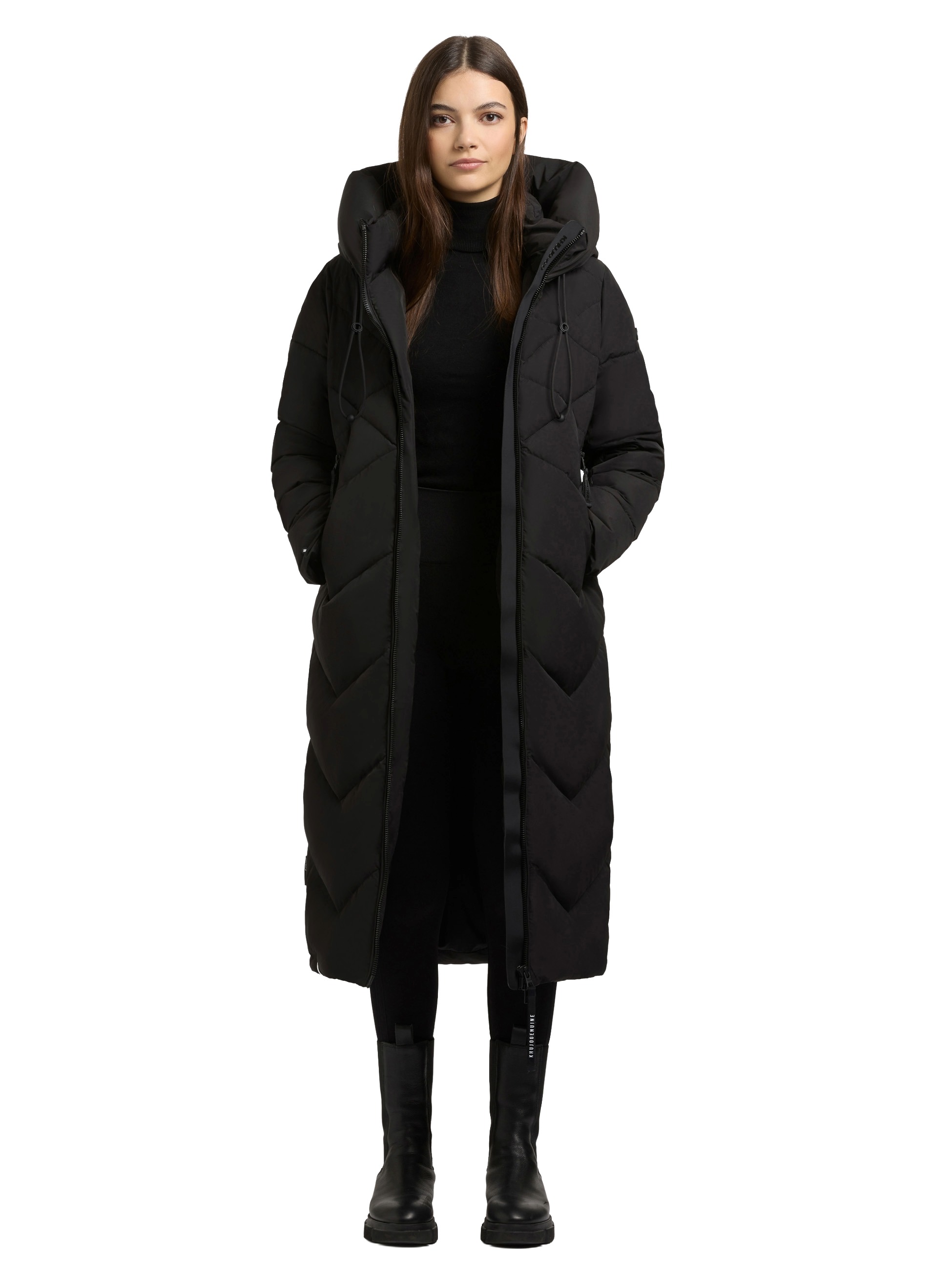 Mit dem "Linari" Damen Wintermantel bringt Khujo Wärme und Design in Einklang. Die feine Zackensteppung setzt einen modischen Akzent, während die wattierte Fütterung und wadenlange Form für wohlige Wärme sorgen!