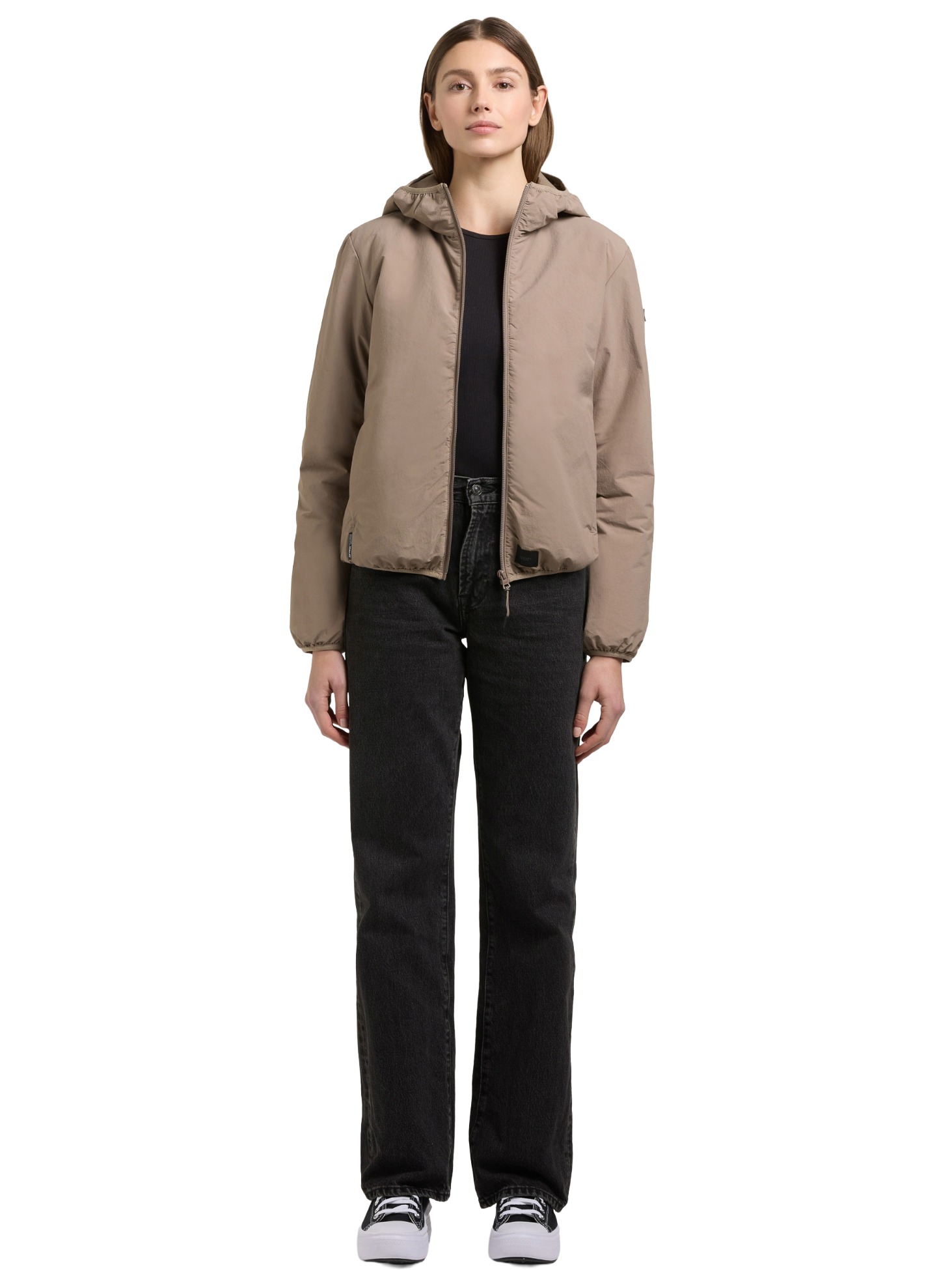 - hoch schließende Kapuze