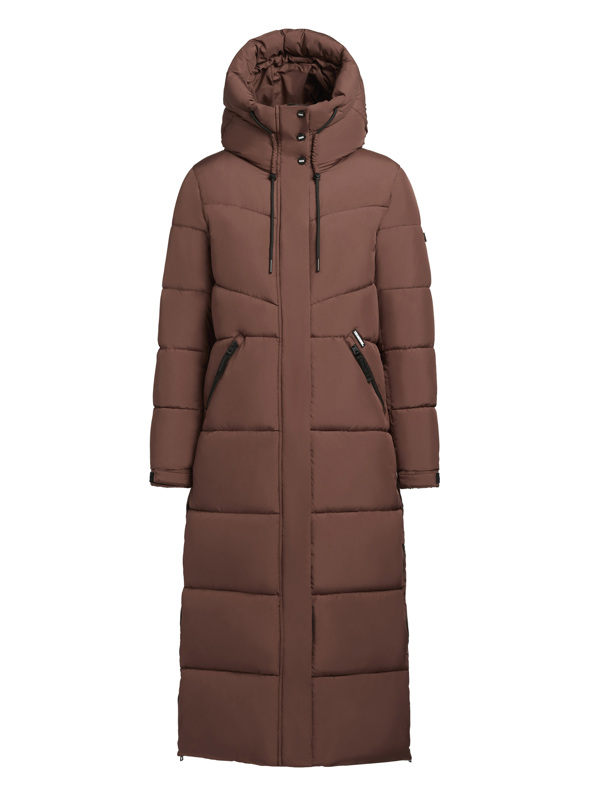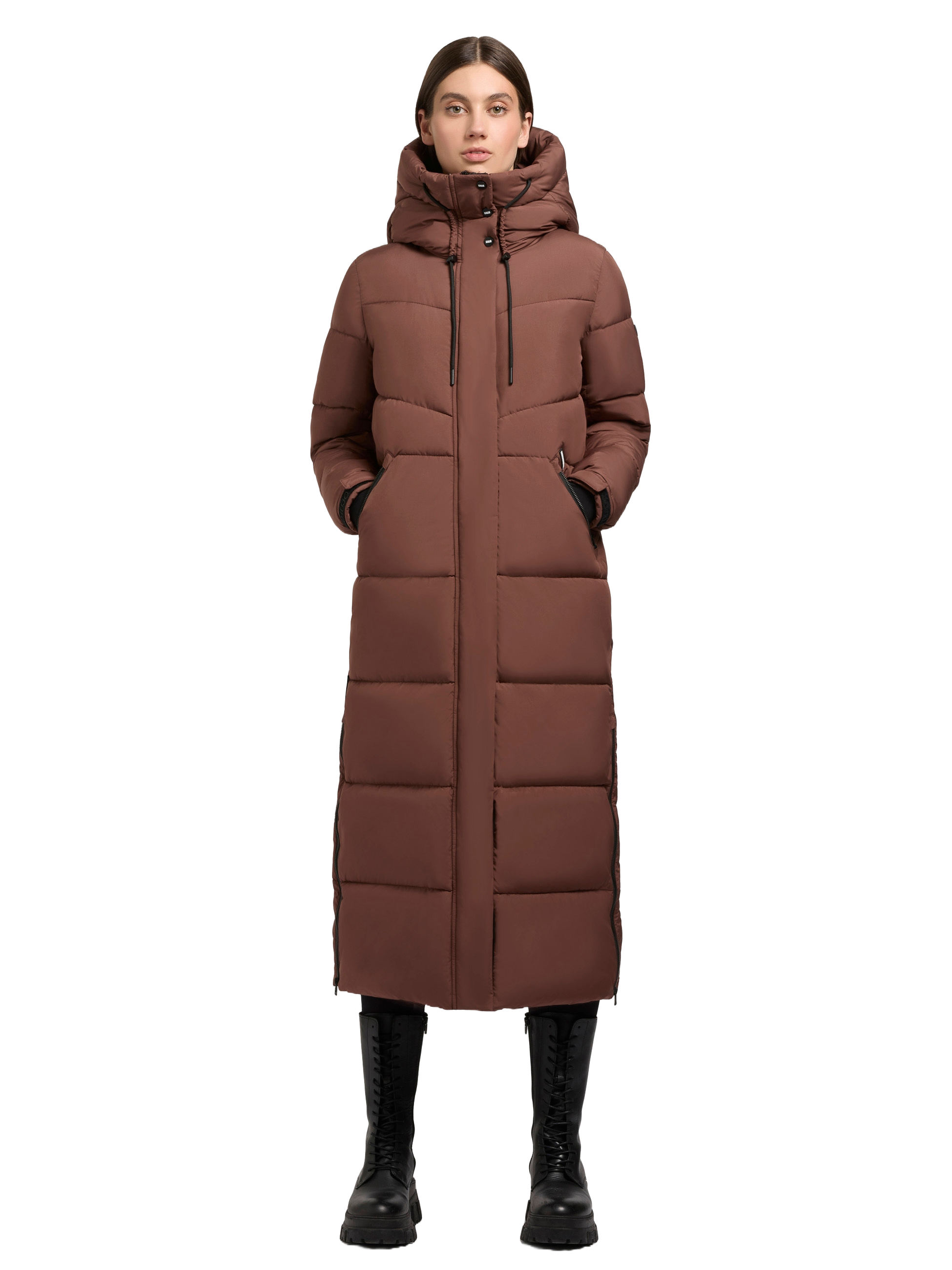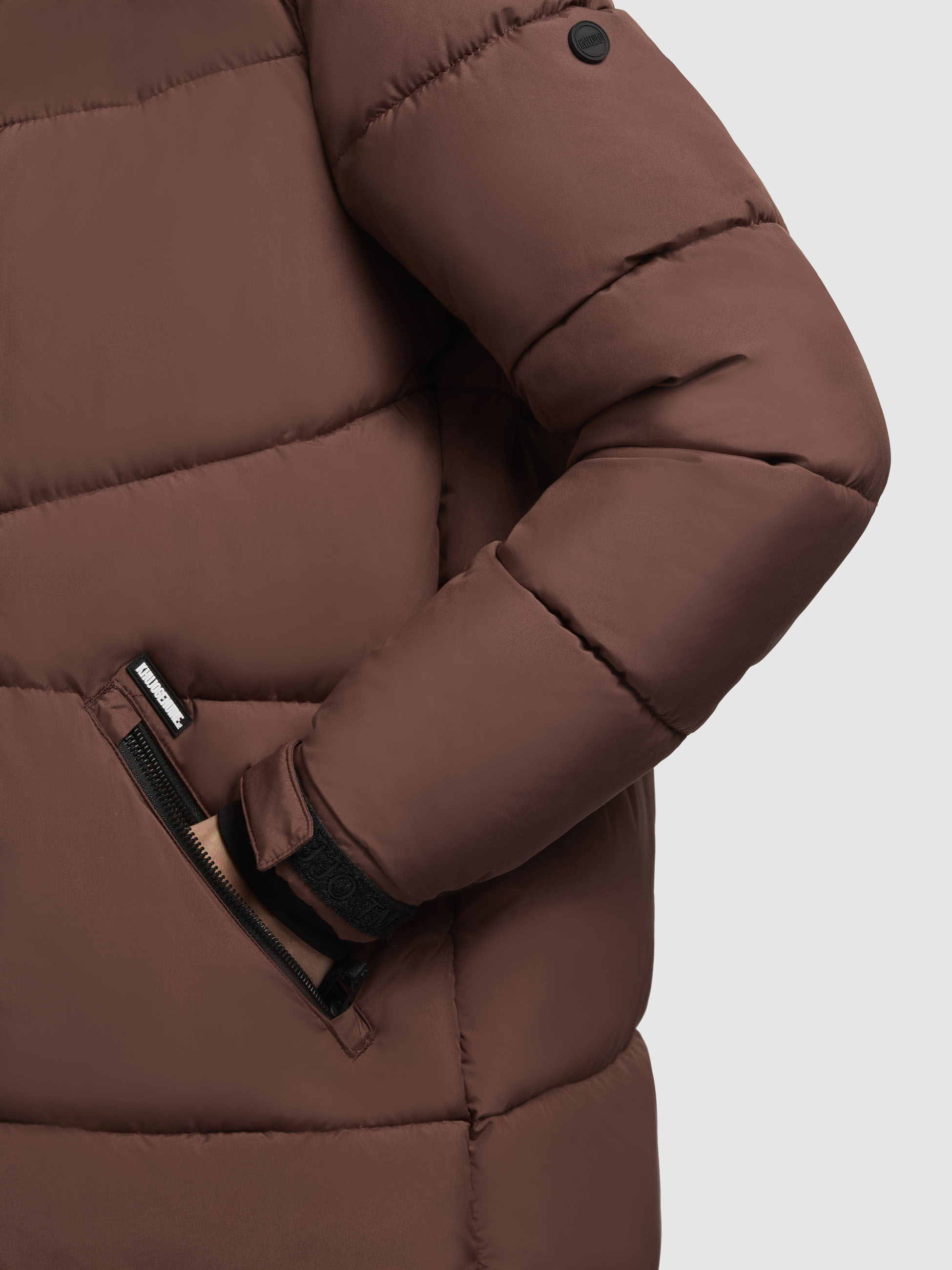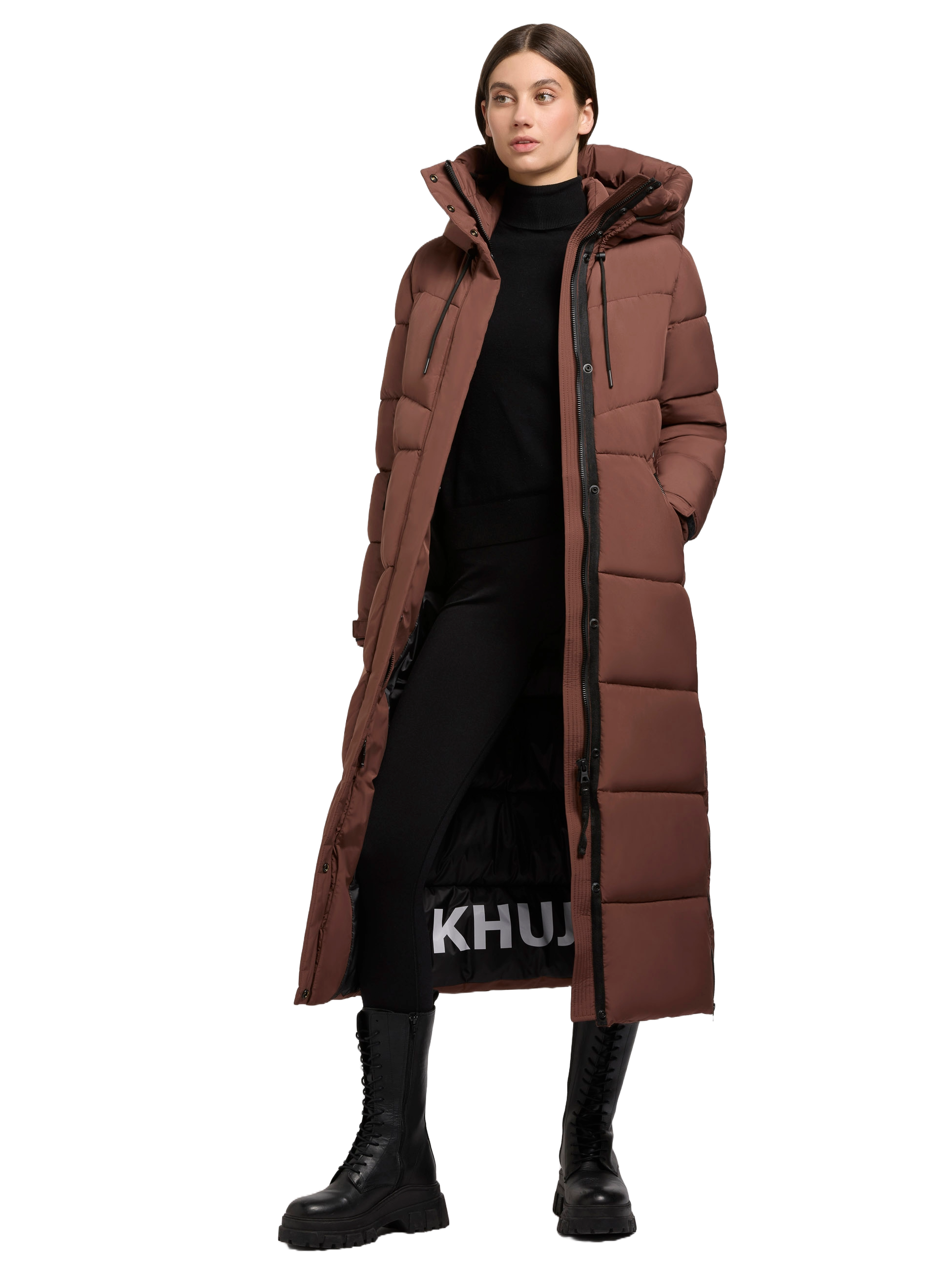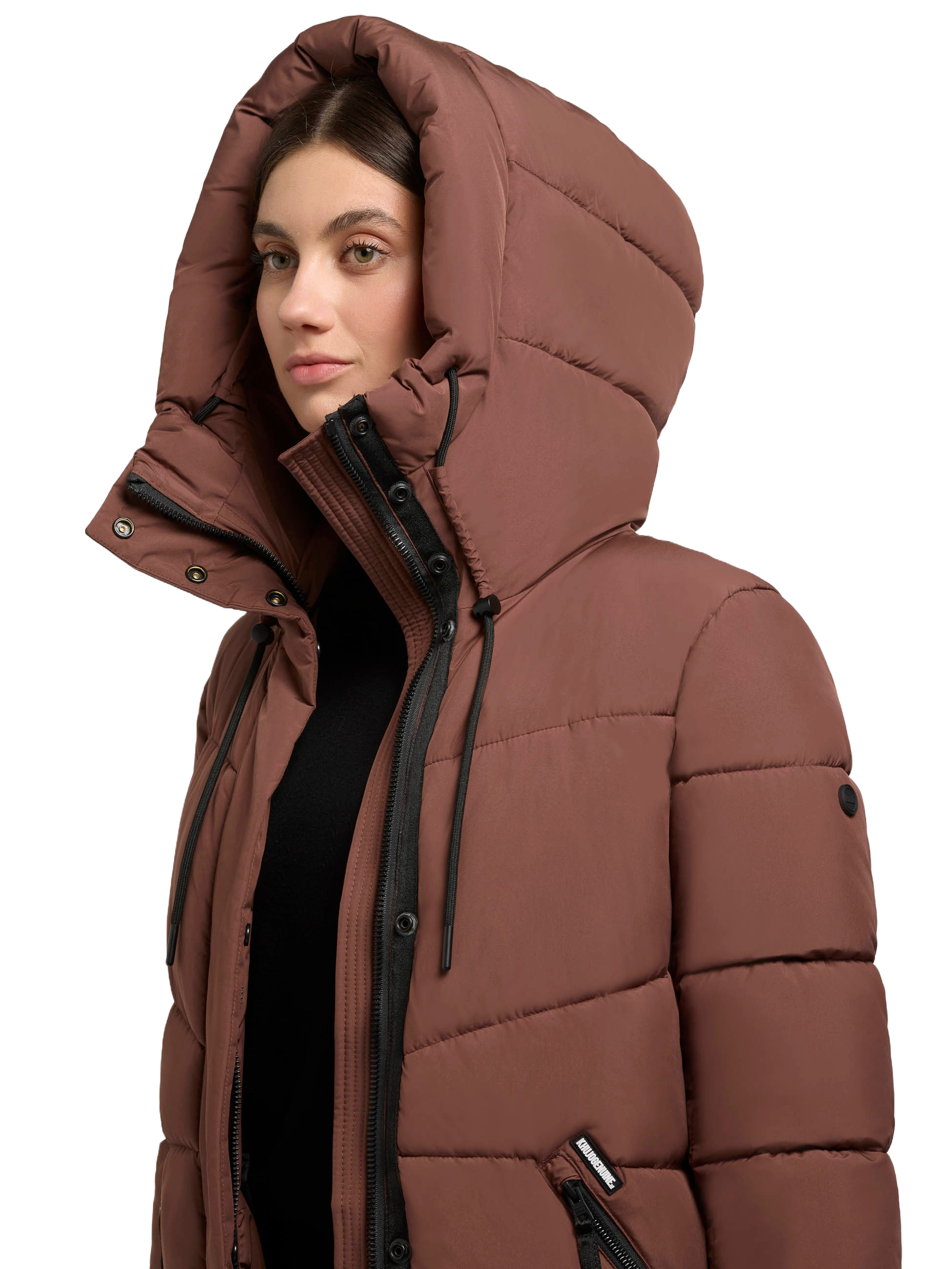 Shimanta von Khujo ist eine mega schöne Winterjacke für Damen. Der Mantel hat warme mit Fleece gefütterte Seitentaschen, eine große Kaputze und ist wattiert.
