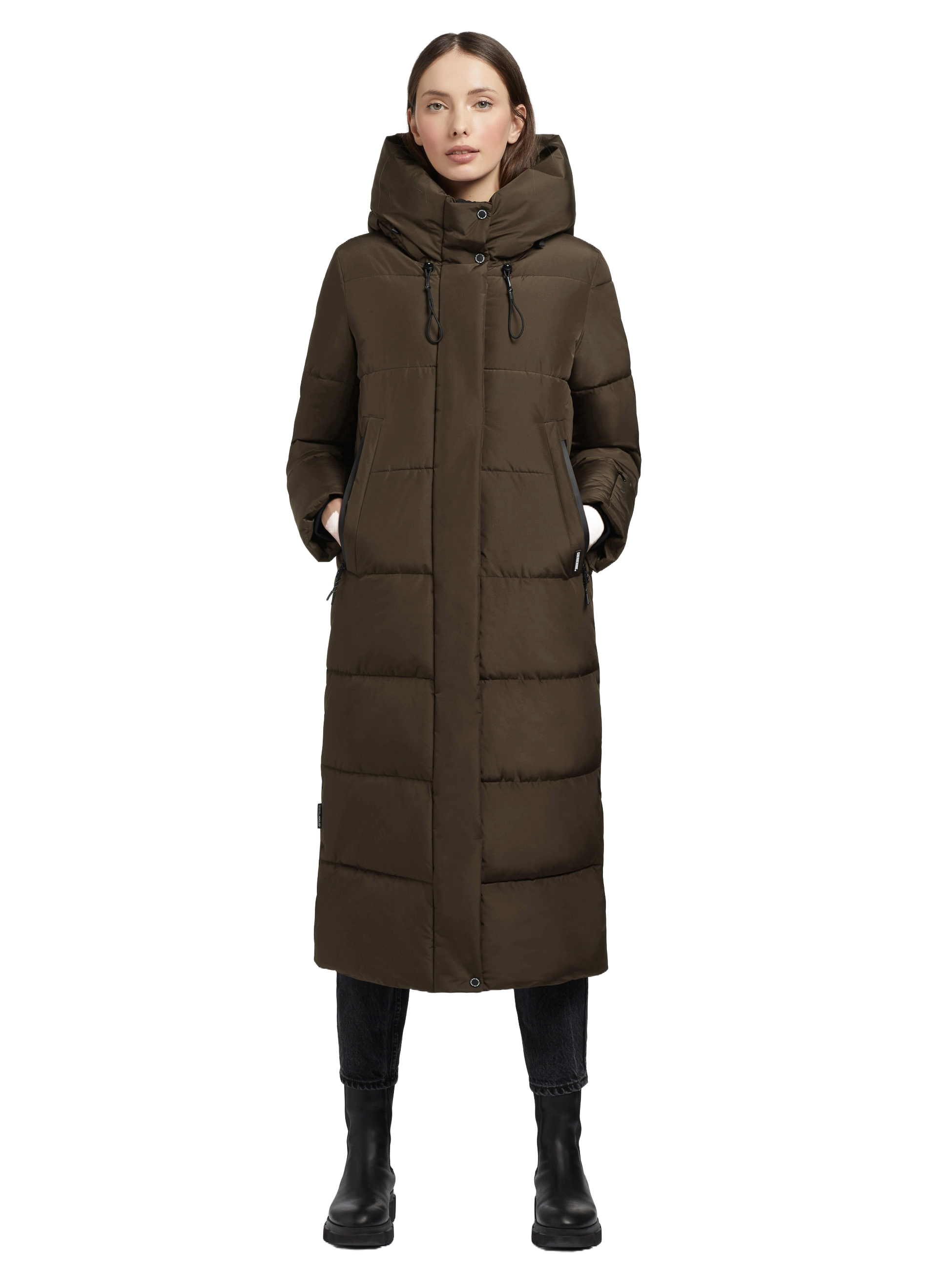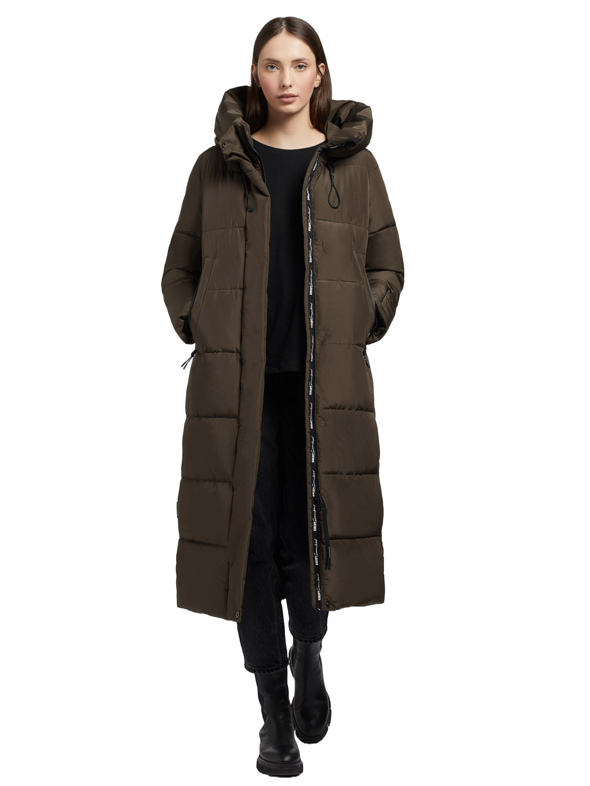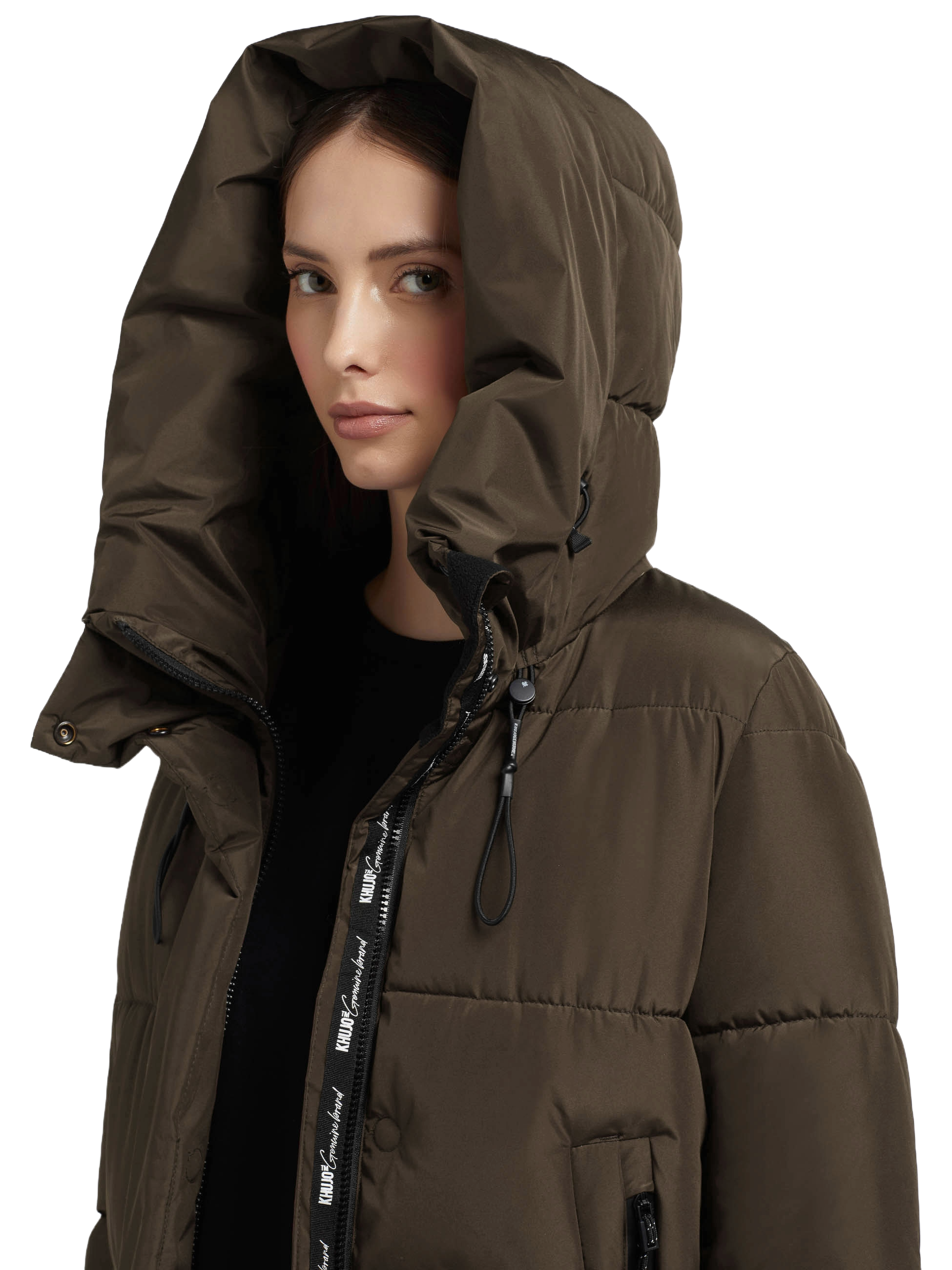 Soulani, der warm, wattierte Damen Mantel von KHUJO ist ein toller Wintermantel - einer der Bestseller unter den vielen beliebten Winterjacken! Die Länge geht bis kurz unter dem Knie, je nachdem wie groß man ist.