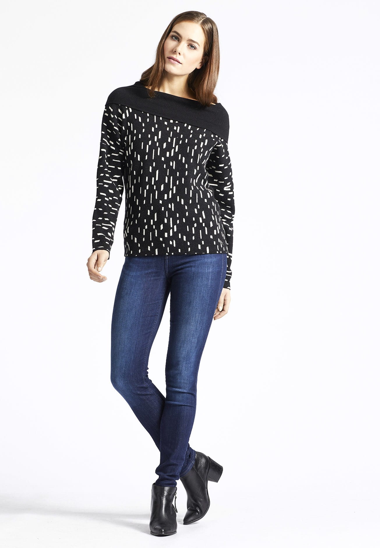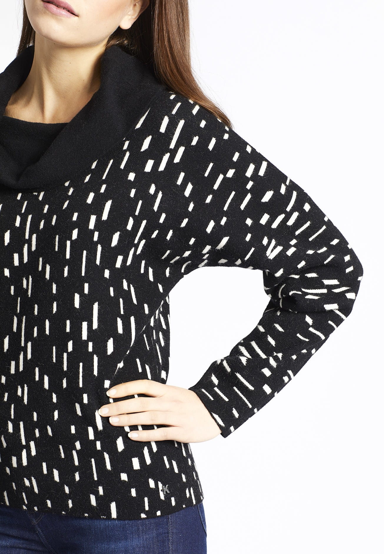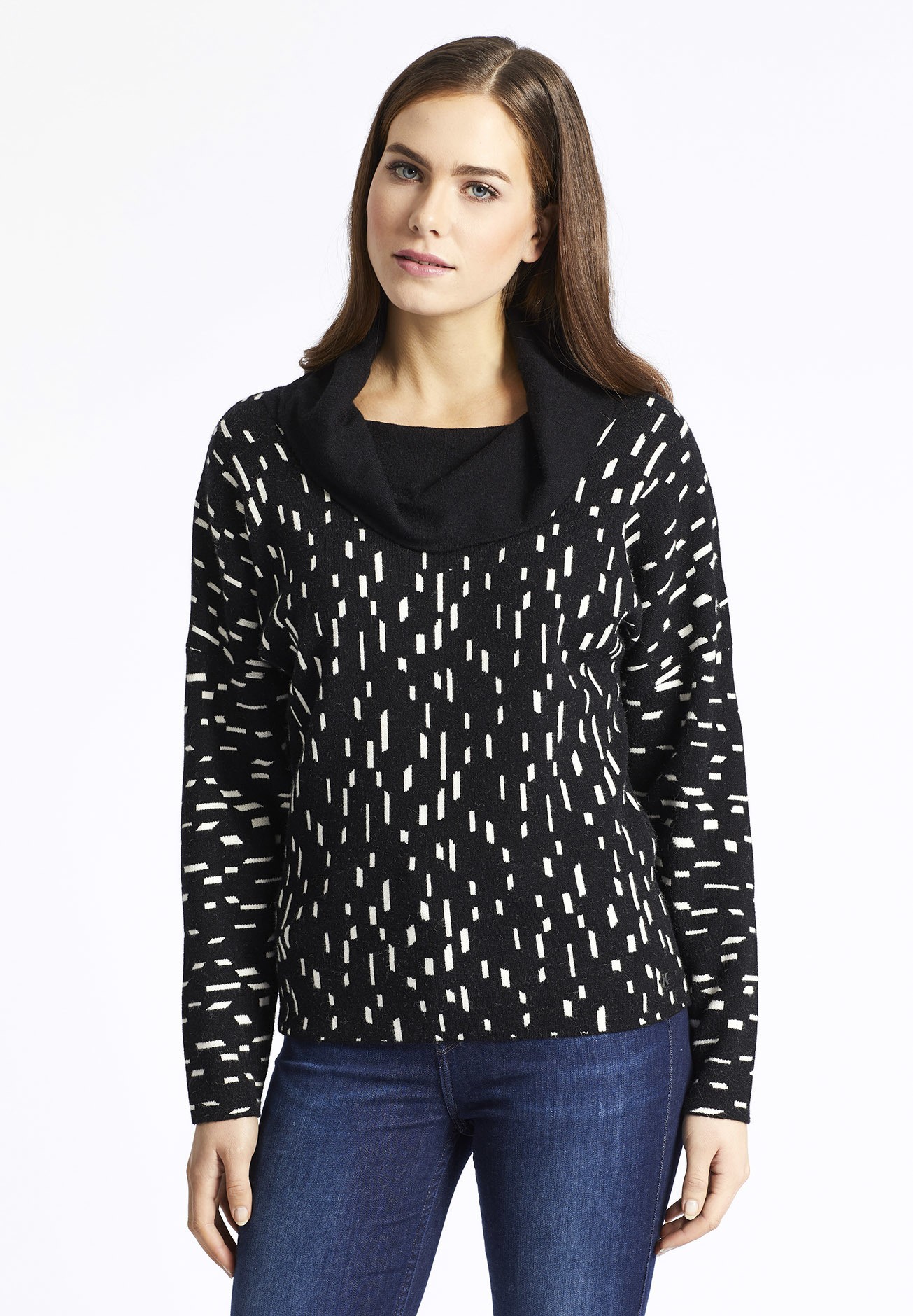 Den Khujo Damen Pullover "Vilasa" kann man sowohl mit lockerem Kragen, oder über die Schultern gestülpt tragen.
