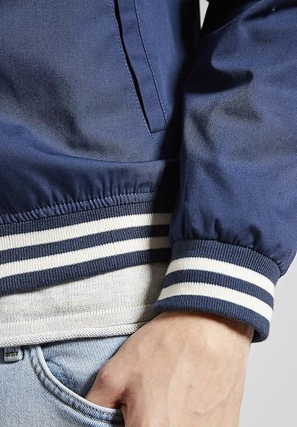 • Gestreifte Bündchen an den Abschlüssen