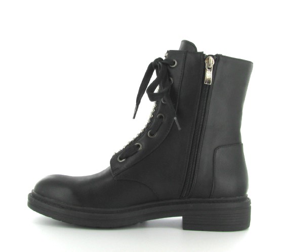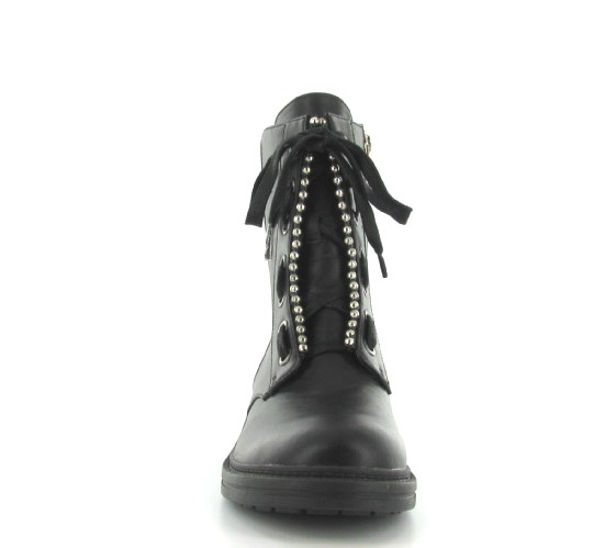 Der Rolo ist eine Stiefelette mit Nieten Saum. Vorn zum Schnürren und seitlich mit Reißverschluß zu verschließen.