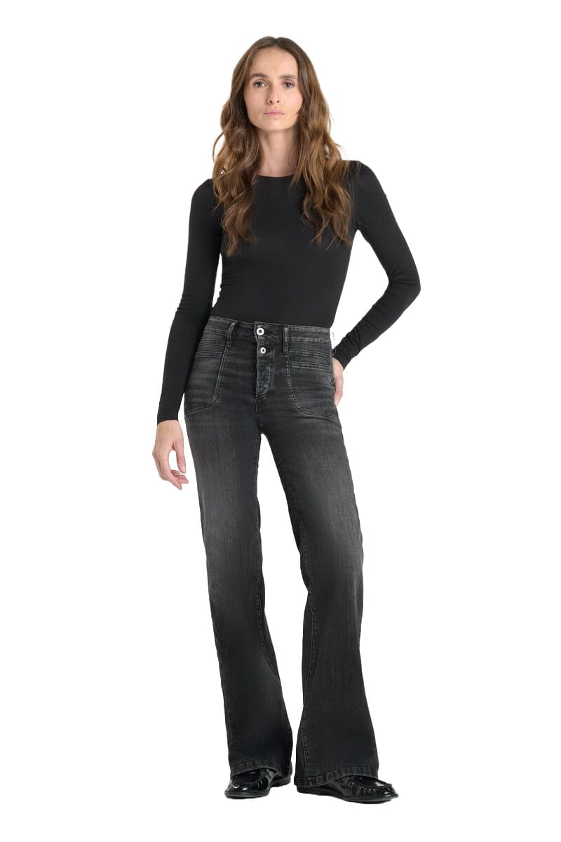 Die "Hooks" Damen Jeans von Le Temps des Cerises überzeugt mit einem trendig ausgestellten Bein, dass die Figur streckt und optisch verschlankt.