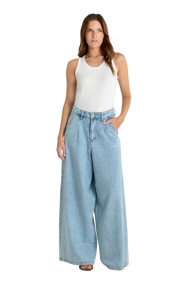 Die "Louvy" Damen Jeans von Le Temps des Cerises überzeugt mit einem Super-Wide-Leg Fit und einer hohen Taillenhöhe, mit eingenähten Falten, die eine moderne Silhouette verleihen!