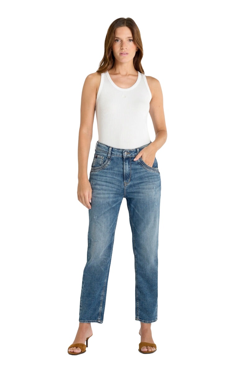 Die "Mignet" Damen Jeans von Le Temps des Cerises vereint Trendbewusstsein mit hohem Tragekomfort. Das dehnungsarme Material unterstreicht die hochwertige Verarbeitung, während das locker geschnittene Bein der Hose eine entspannte Ausstrahlung verleiht.