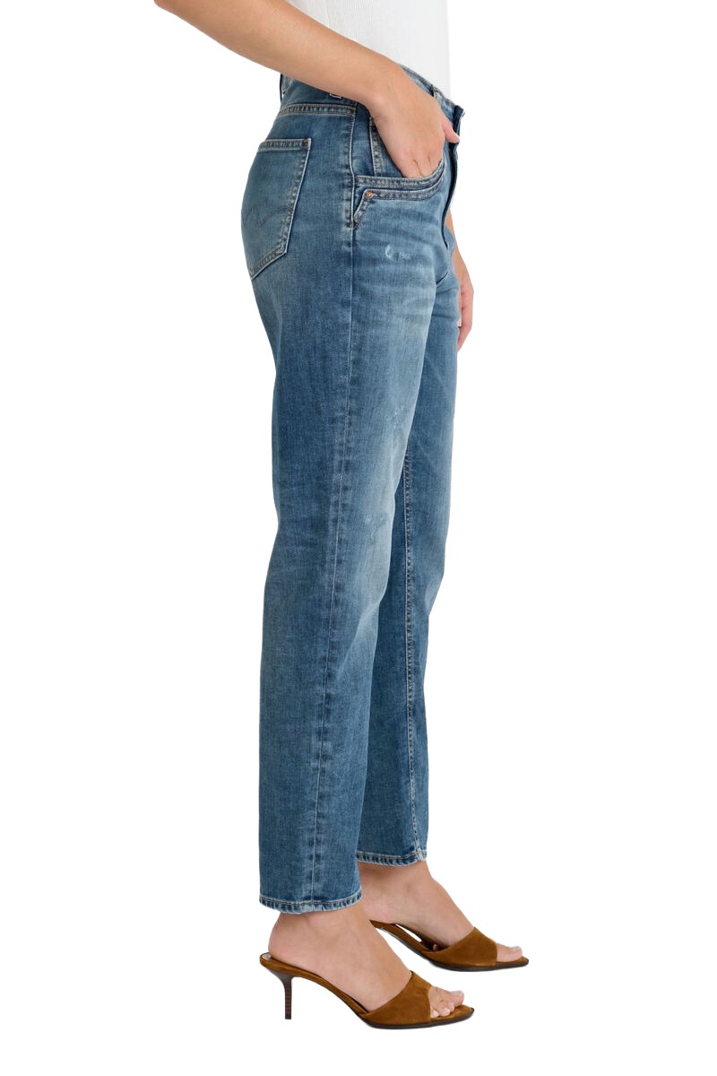 Dezente Abschürfungen setzen stilvolle Akzente und runden den Look ab.