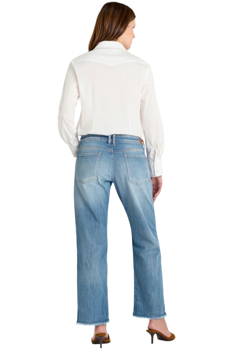 Im lässigen Vintage Look begeistert die "Pihla" Damen Jeans von Le Temps des Cerises. Besonders die hohe Taille formt eine feminine Silhouette, während die offene Saumkante dem Design einen Retro-Look verleiht.