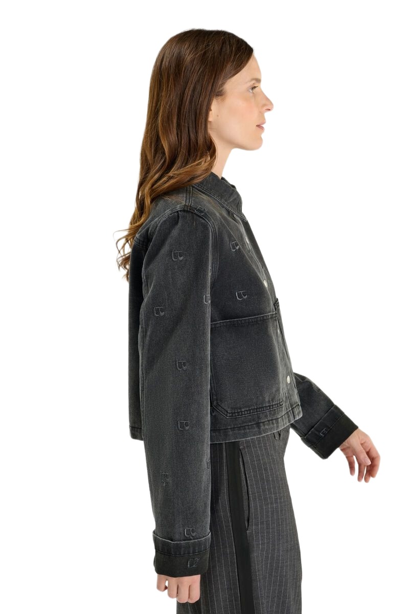 Die "Polus" Jeansjacke von Le Temps de Cerises präsentiert sich als stylisches Piece mit charakteristischer Monogramm-Stickerei.