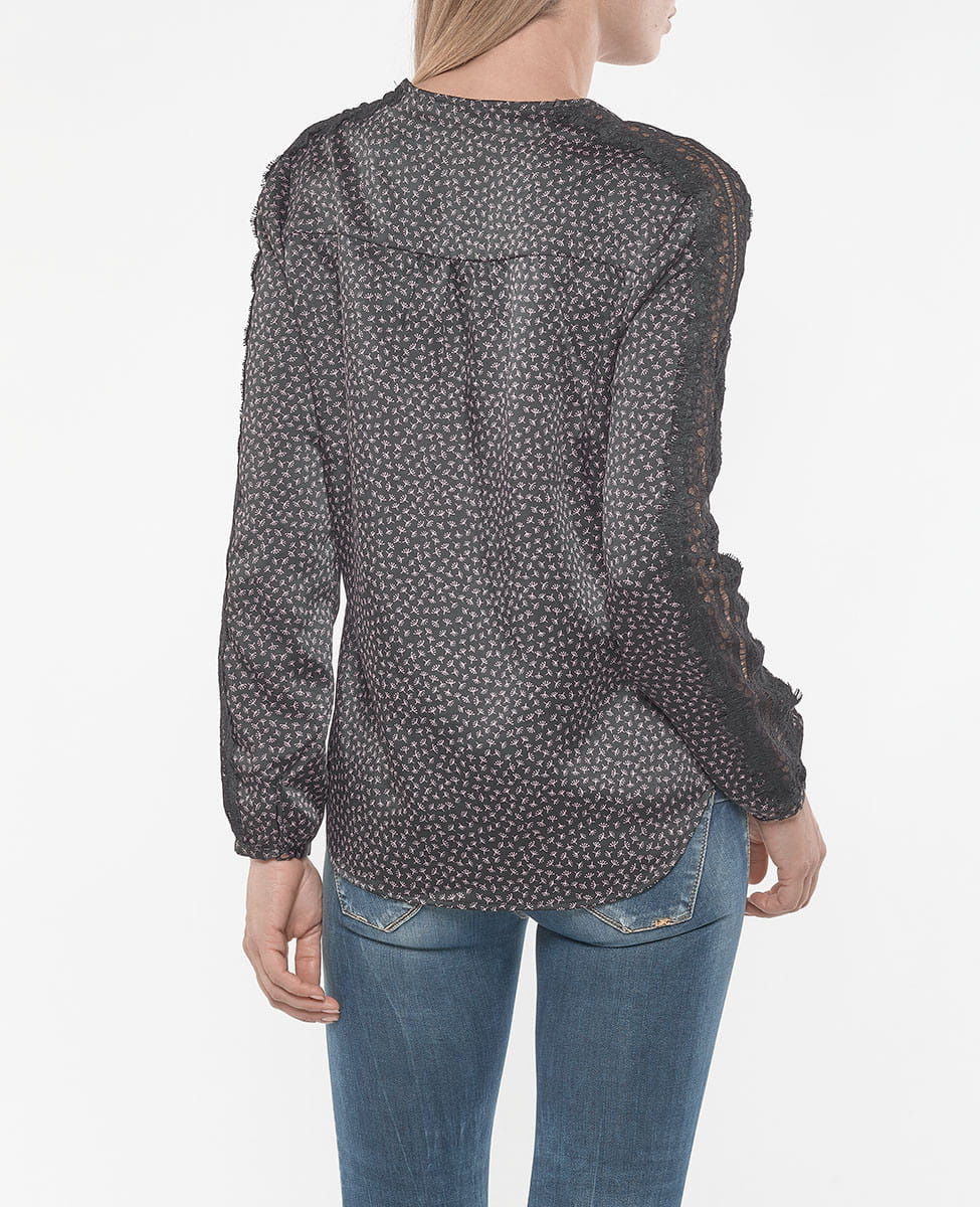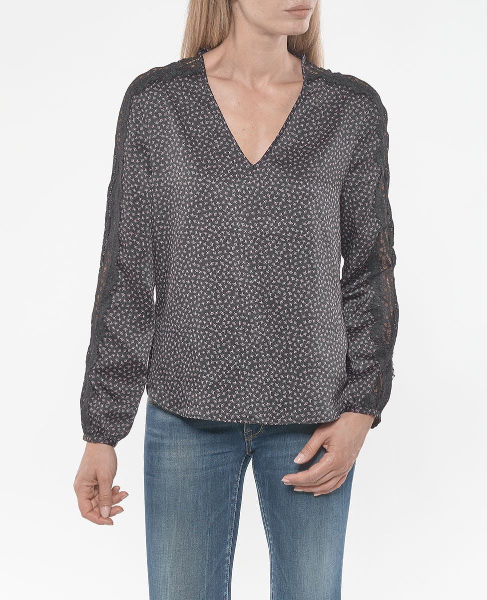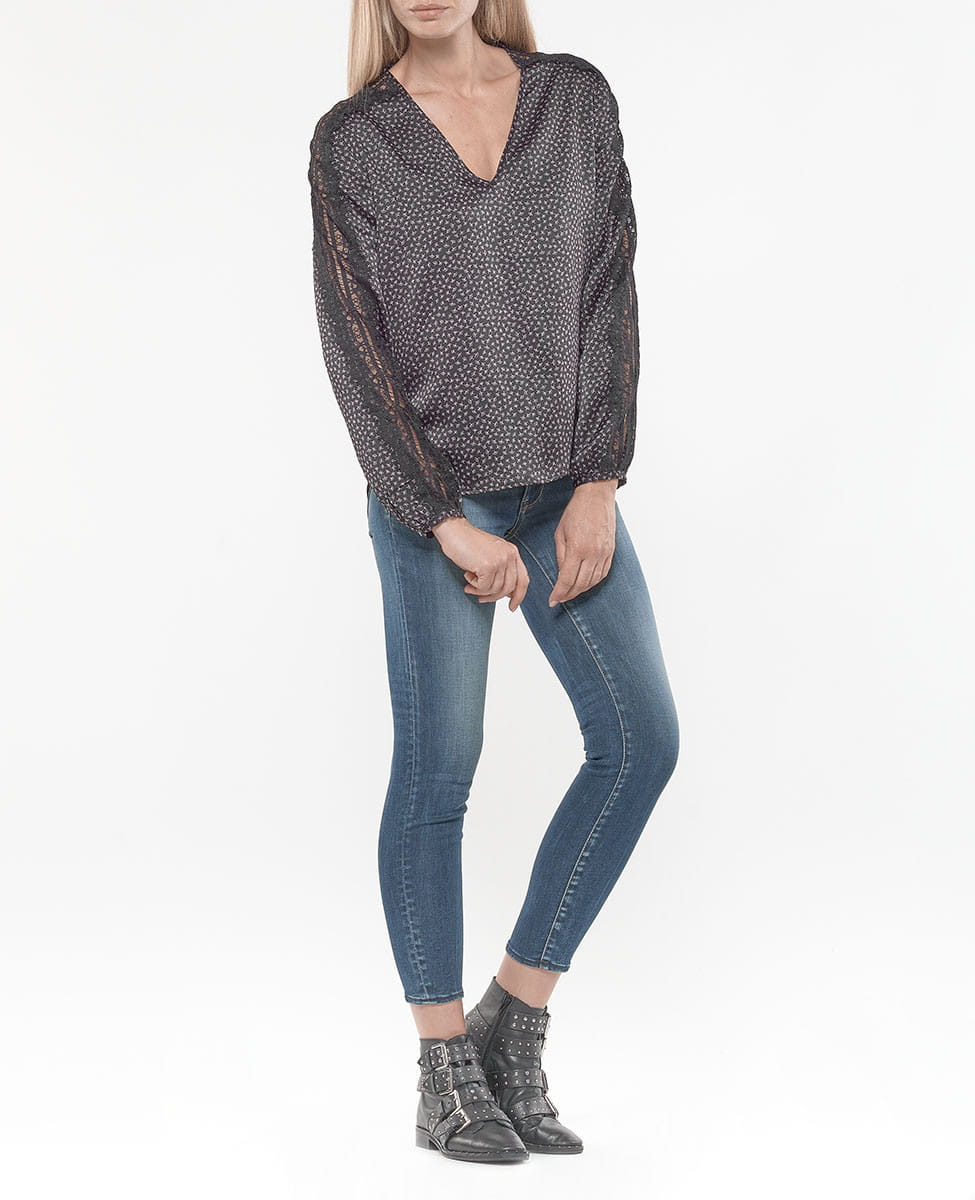 Damen Top "Sandra" von Le Temps des Cerises mit süßer Musterung, Spitzeneinsätzen und V-Ausschnitt!